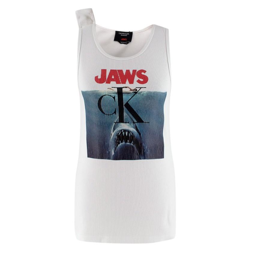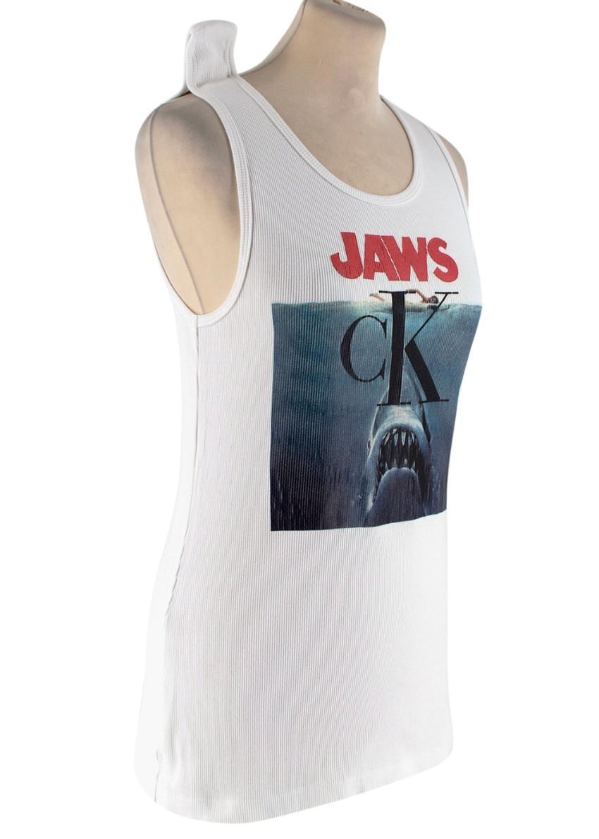 Calvin Klein White Ribbed Jaws Print Jersey Vest