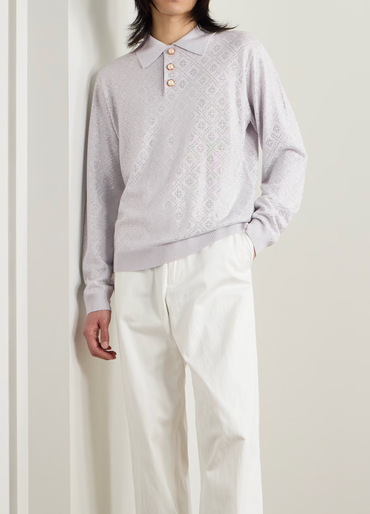 Casablanca Grey Merino Wool Polo Shirt