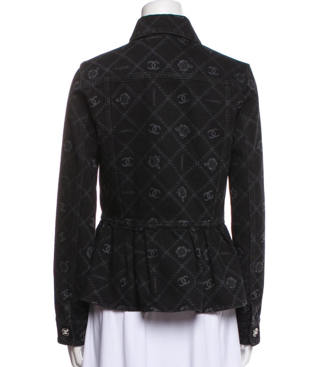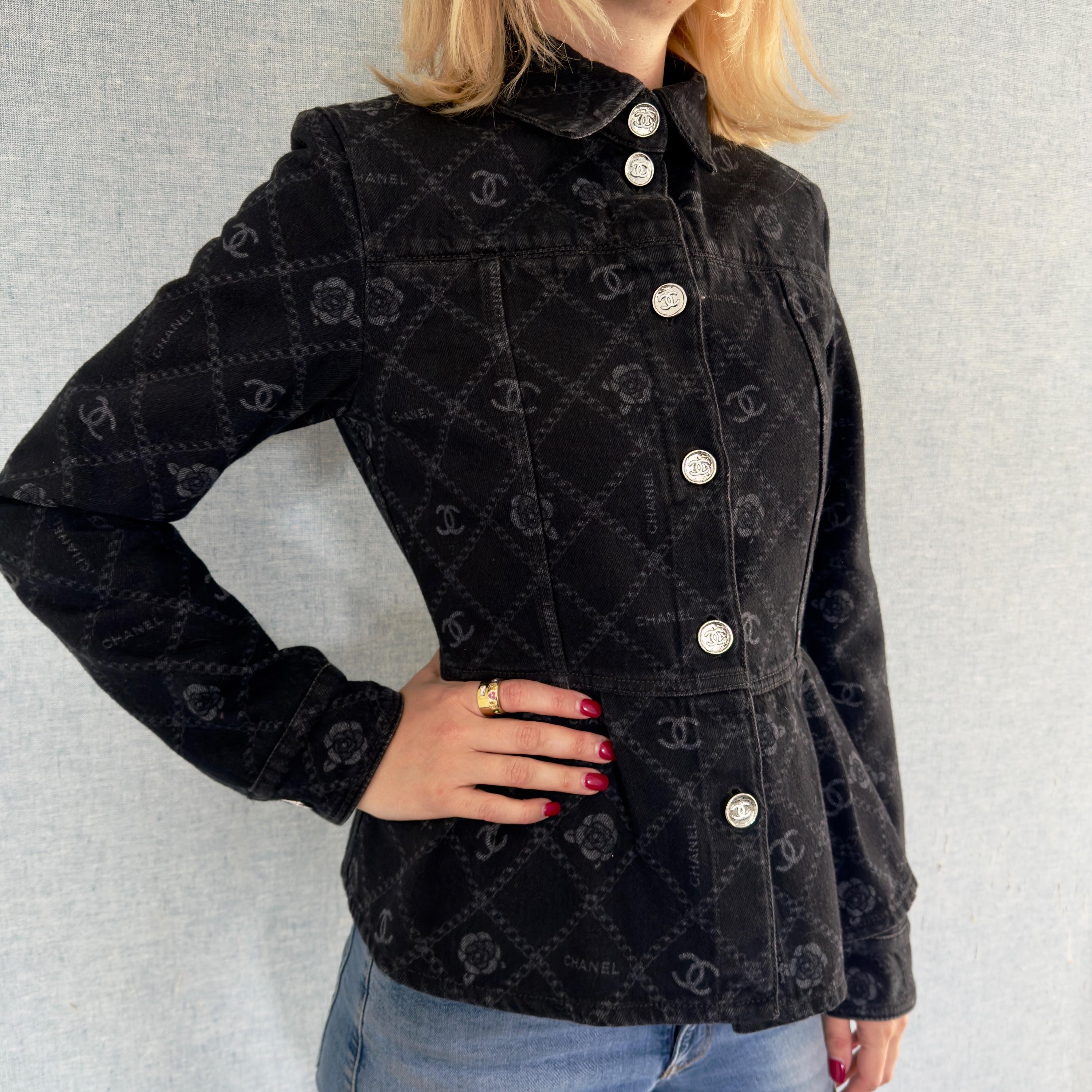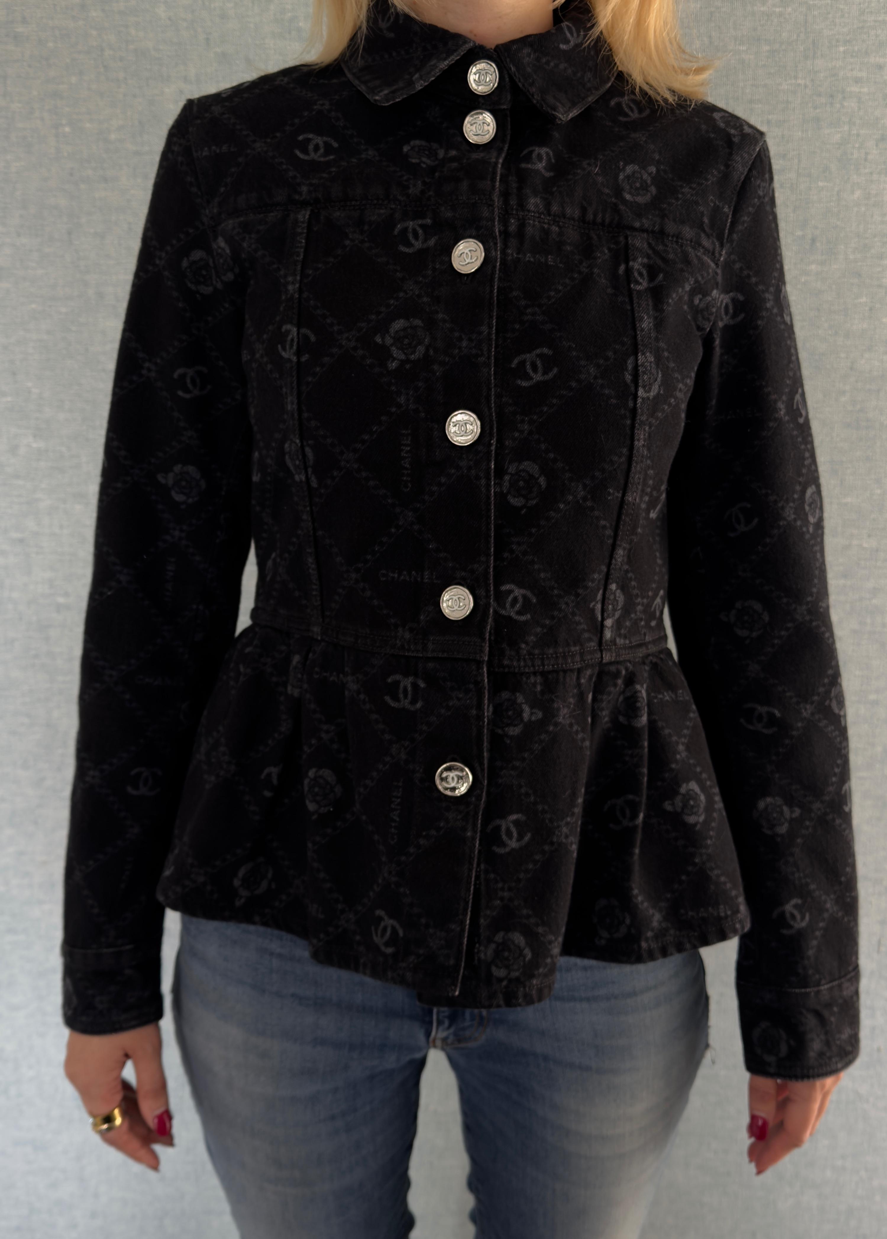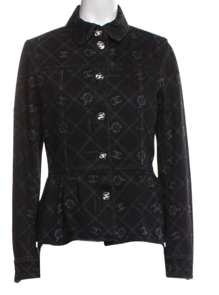 Chanel Black Camelia Denim Button Front Jacket