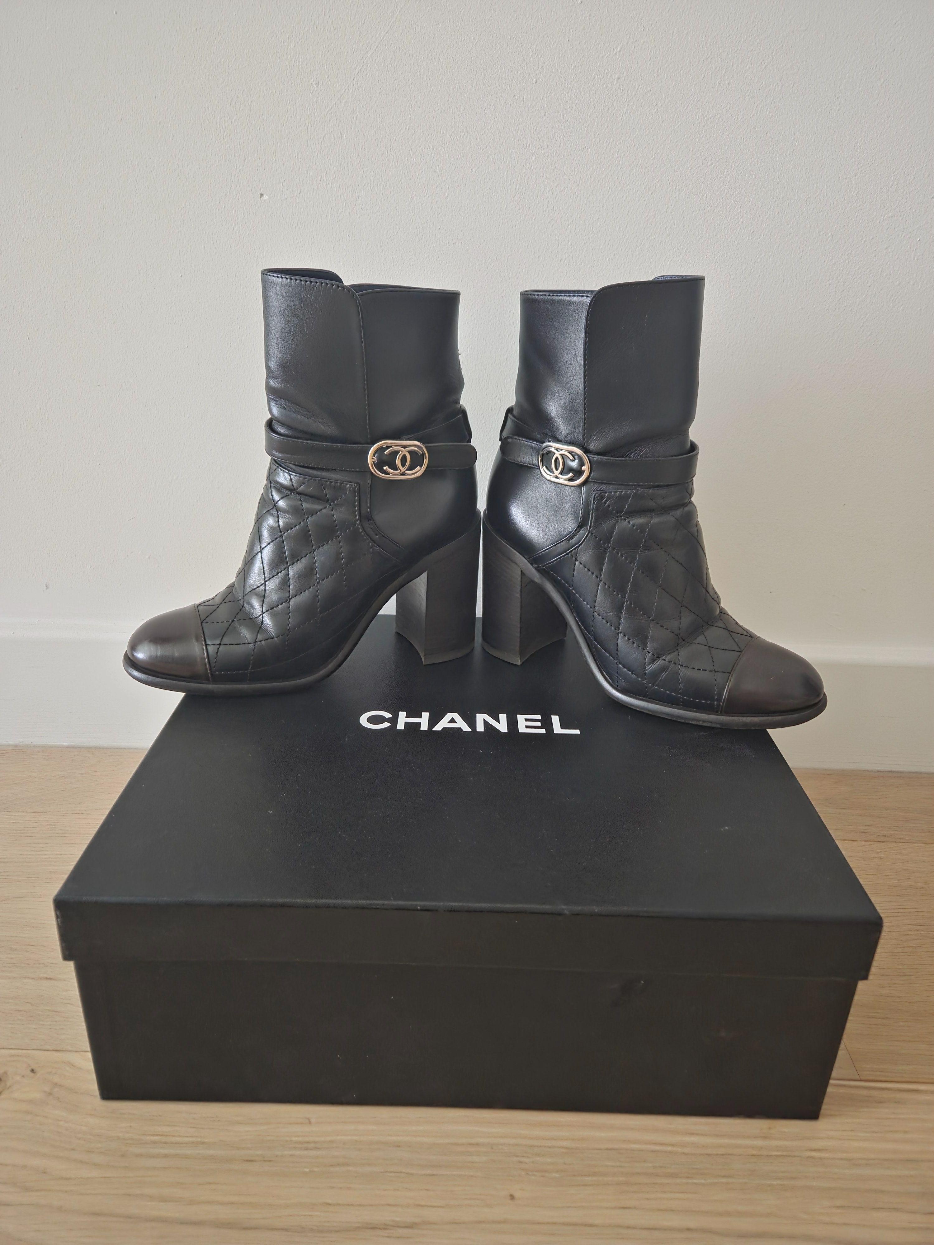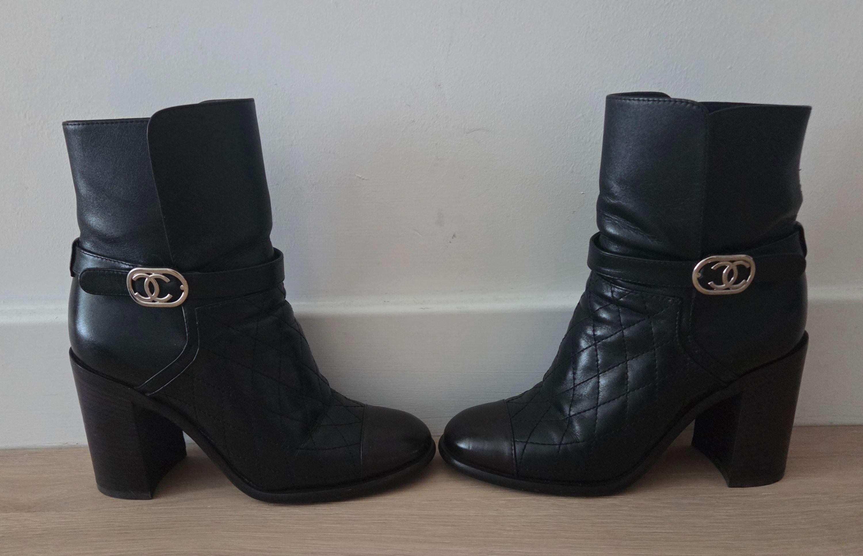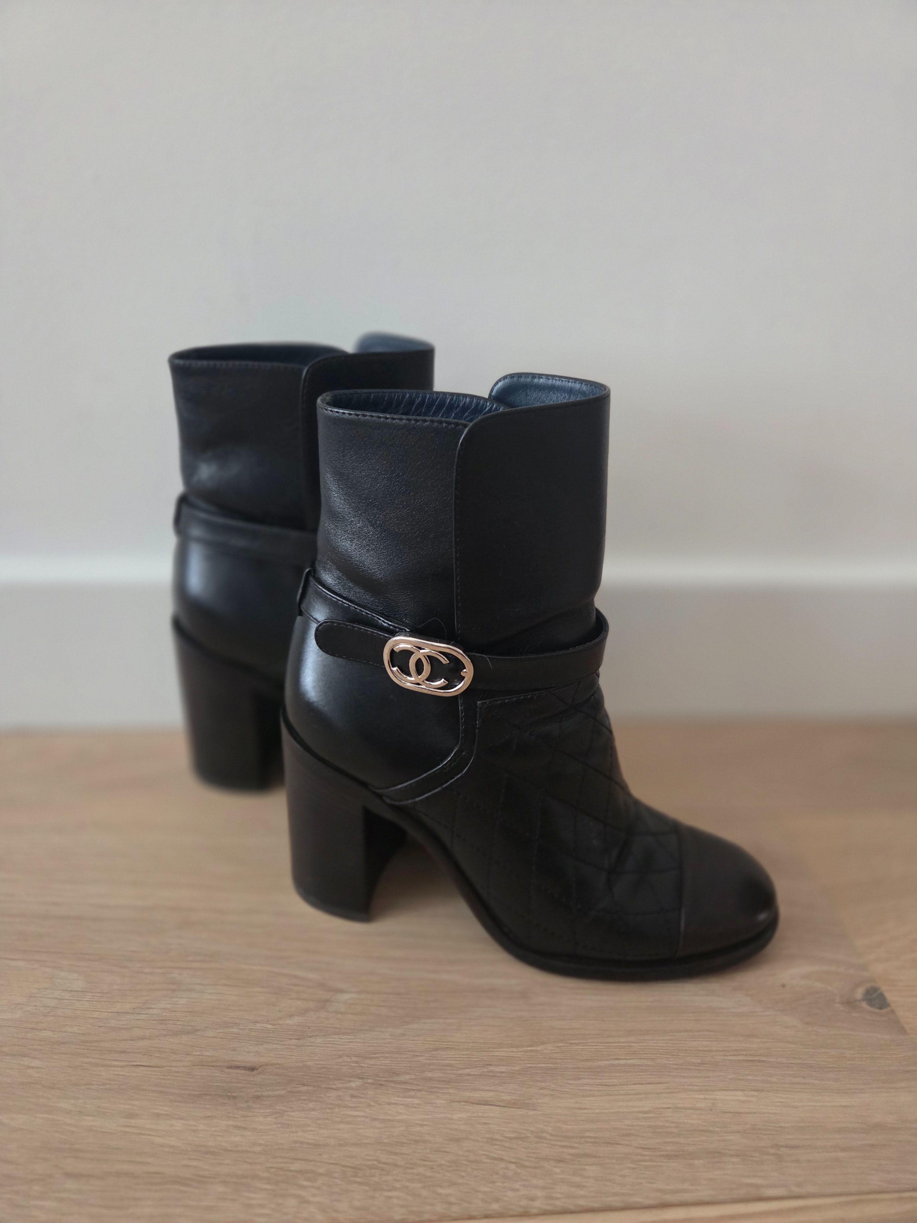 Chanel Black Leather Ankle Boots