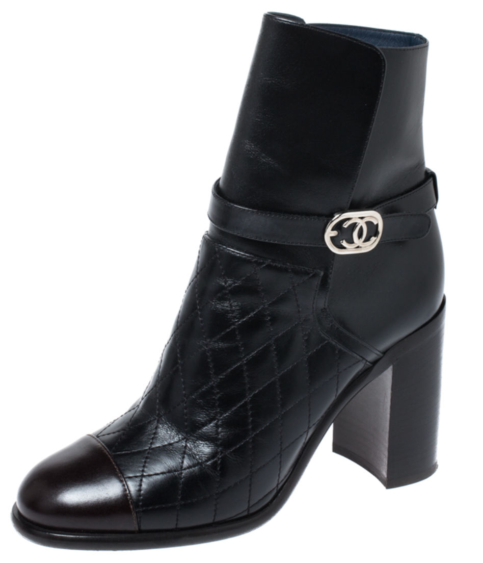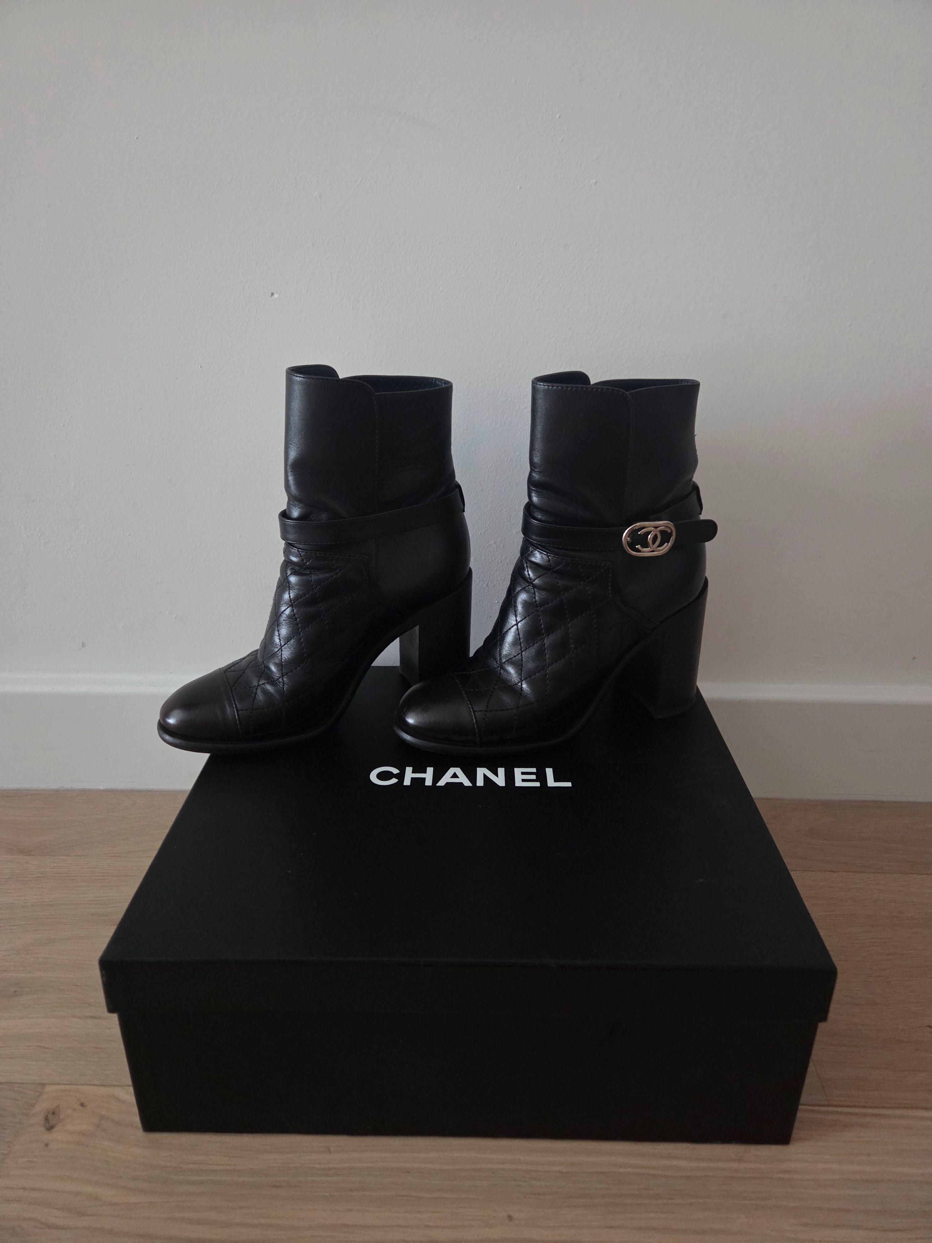 Very good condition, as you can see in the pictures. Stunning Chanel Short Boots. Calf leather. Brown / Black. Quilted. Size 36 EU. Size 3 UK. Comes with all the original packaging. Box, certificates, dust bags and so on.