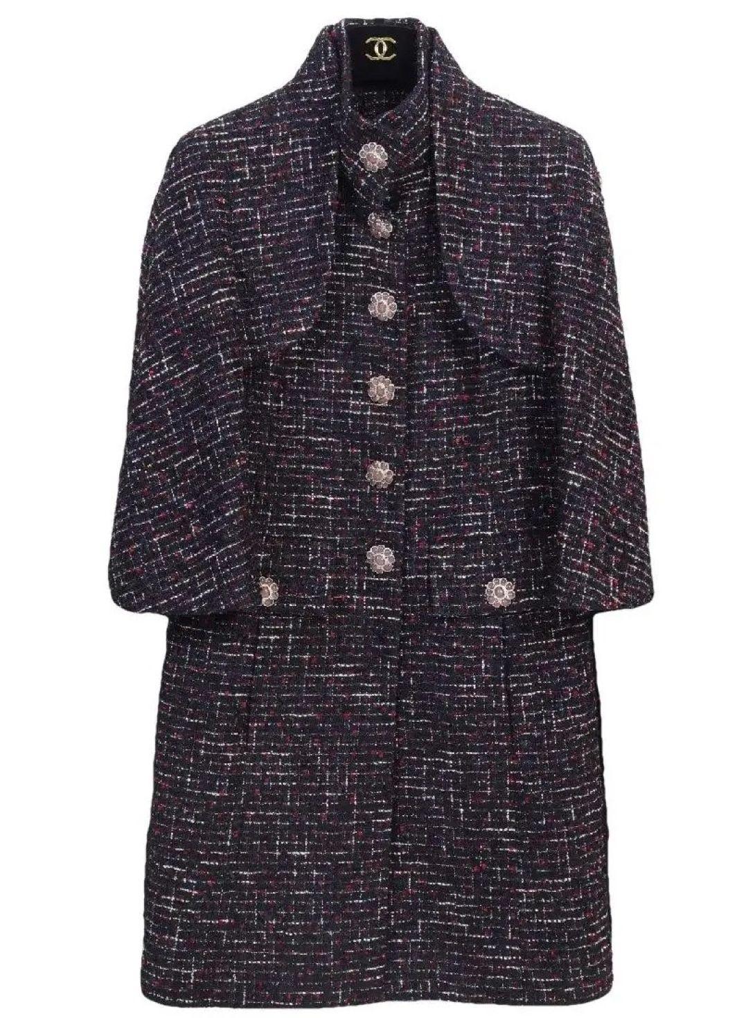 CHANEL 15C 2015 MOST WANTED RUNWAY TWEED GRIPOIX CC COAT JACKET, LABEL FRENCH SIZE 36.
