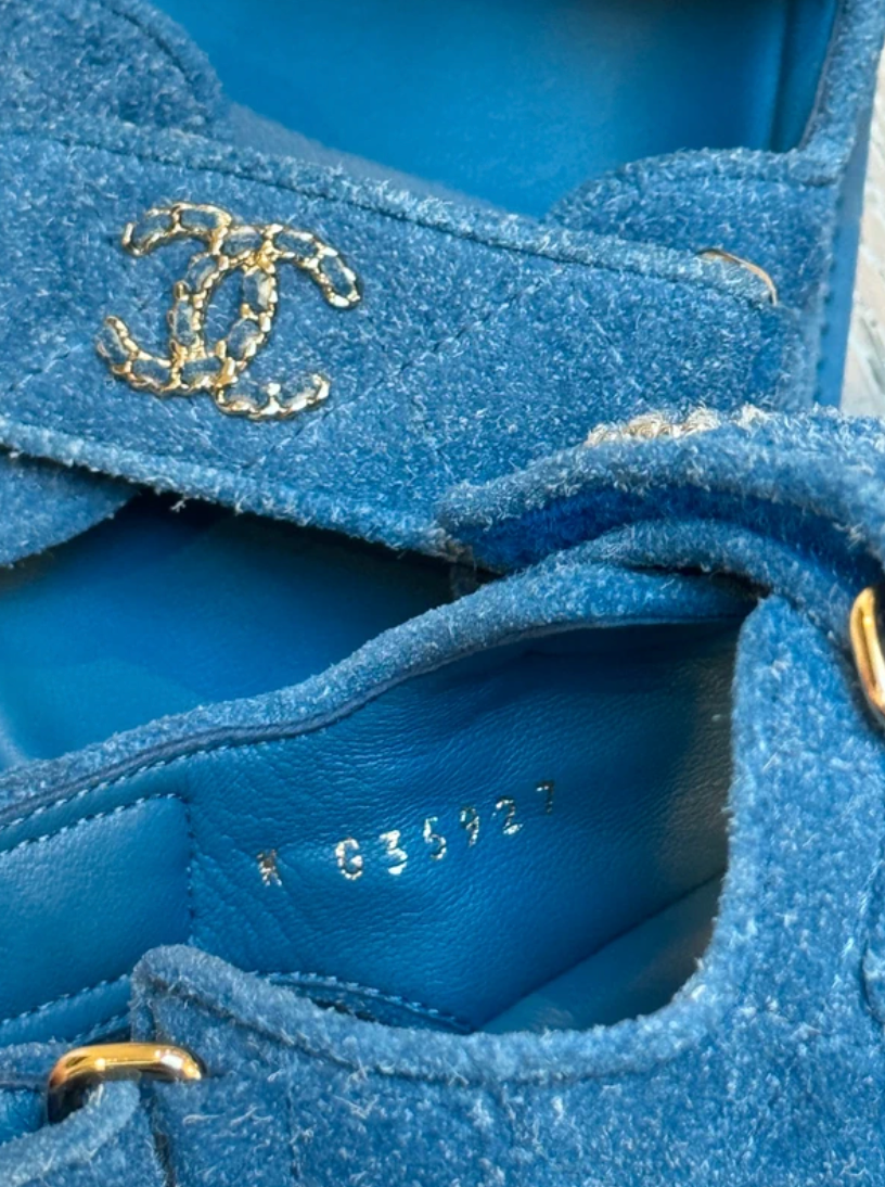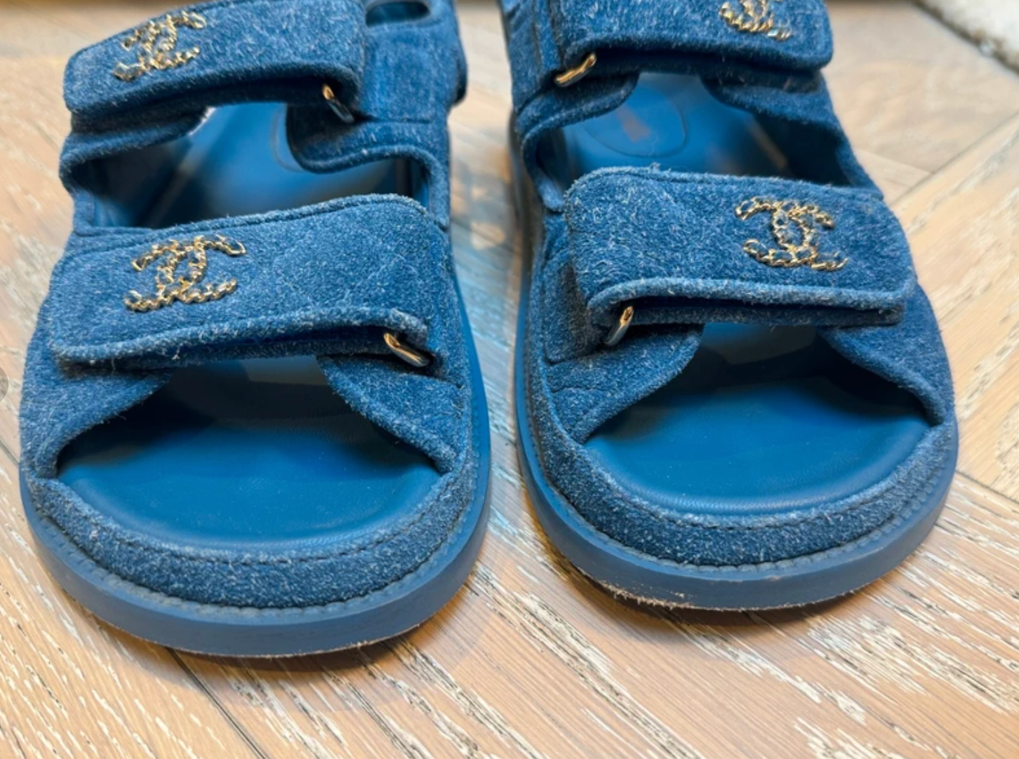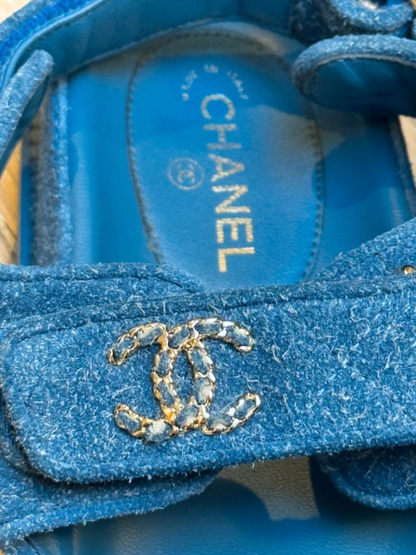 Stunning Denim chanel dad sandals in very good condition with gold hardware details. Size 34.5 will fit 35.