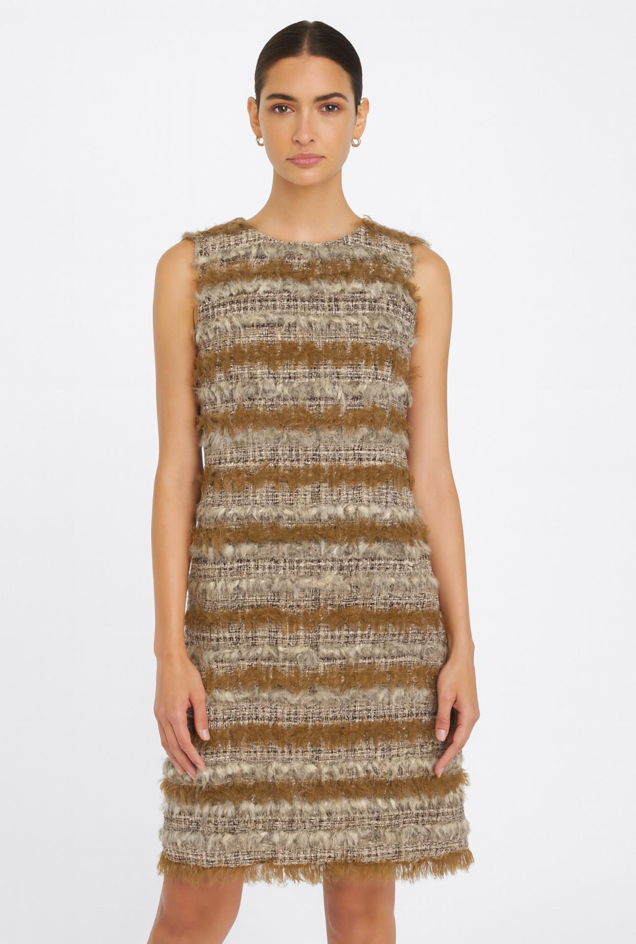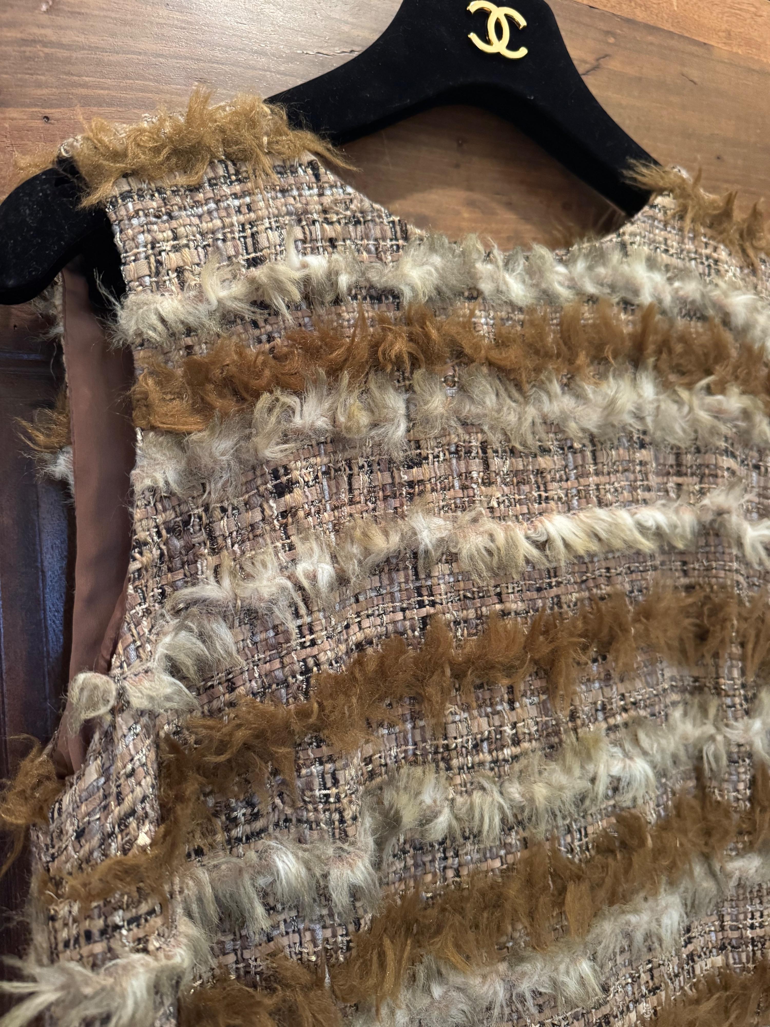 Chanel Fantasy Brown Fur Tweed Mini Dress (100% silk lining)