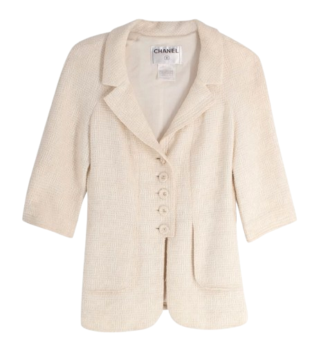 Chanel Cream 3/4 Length Sleeves Button Up Tweed Jacket