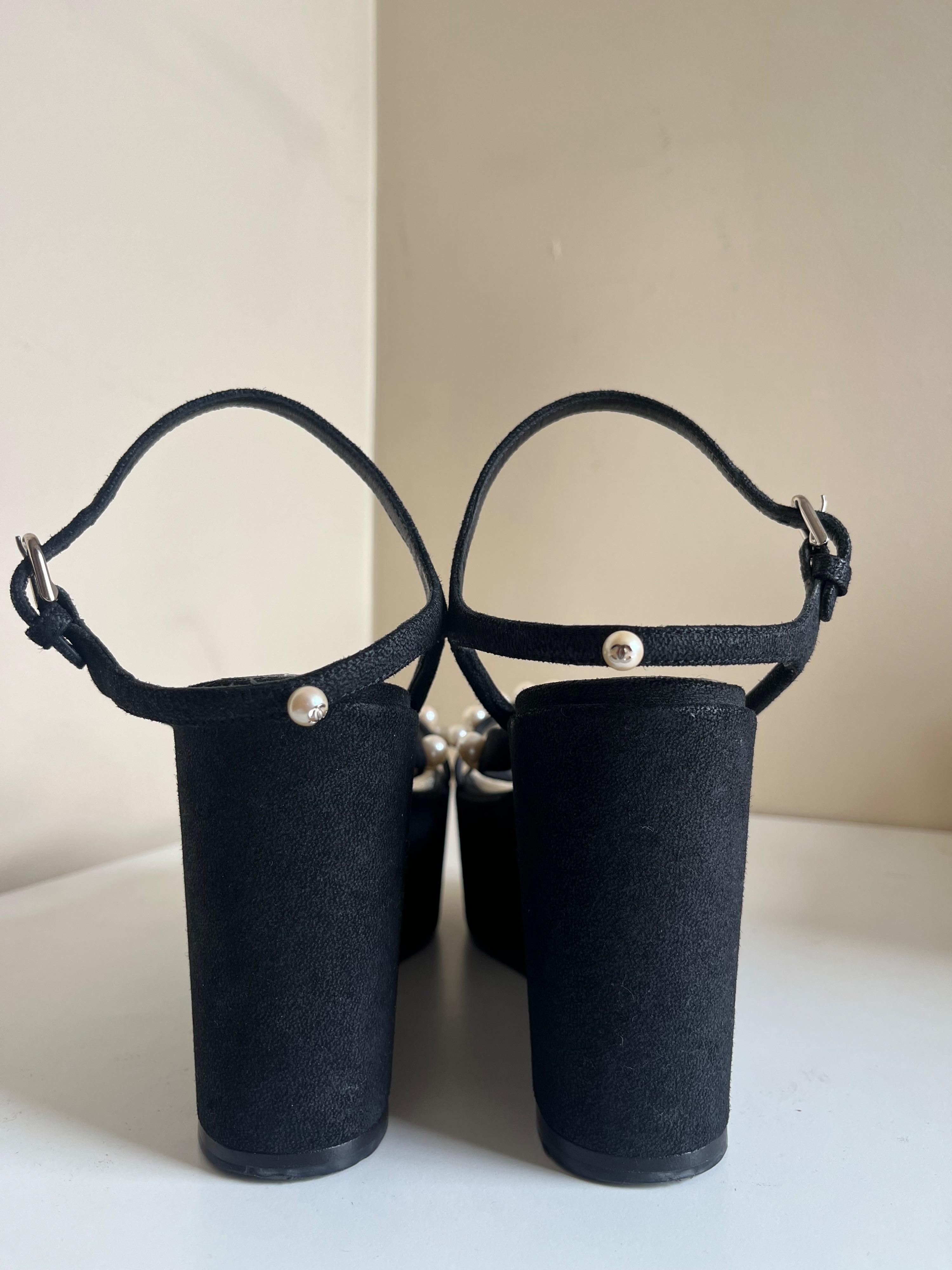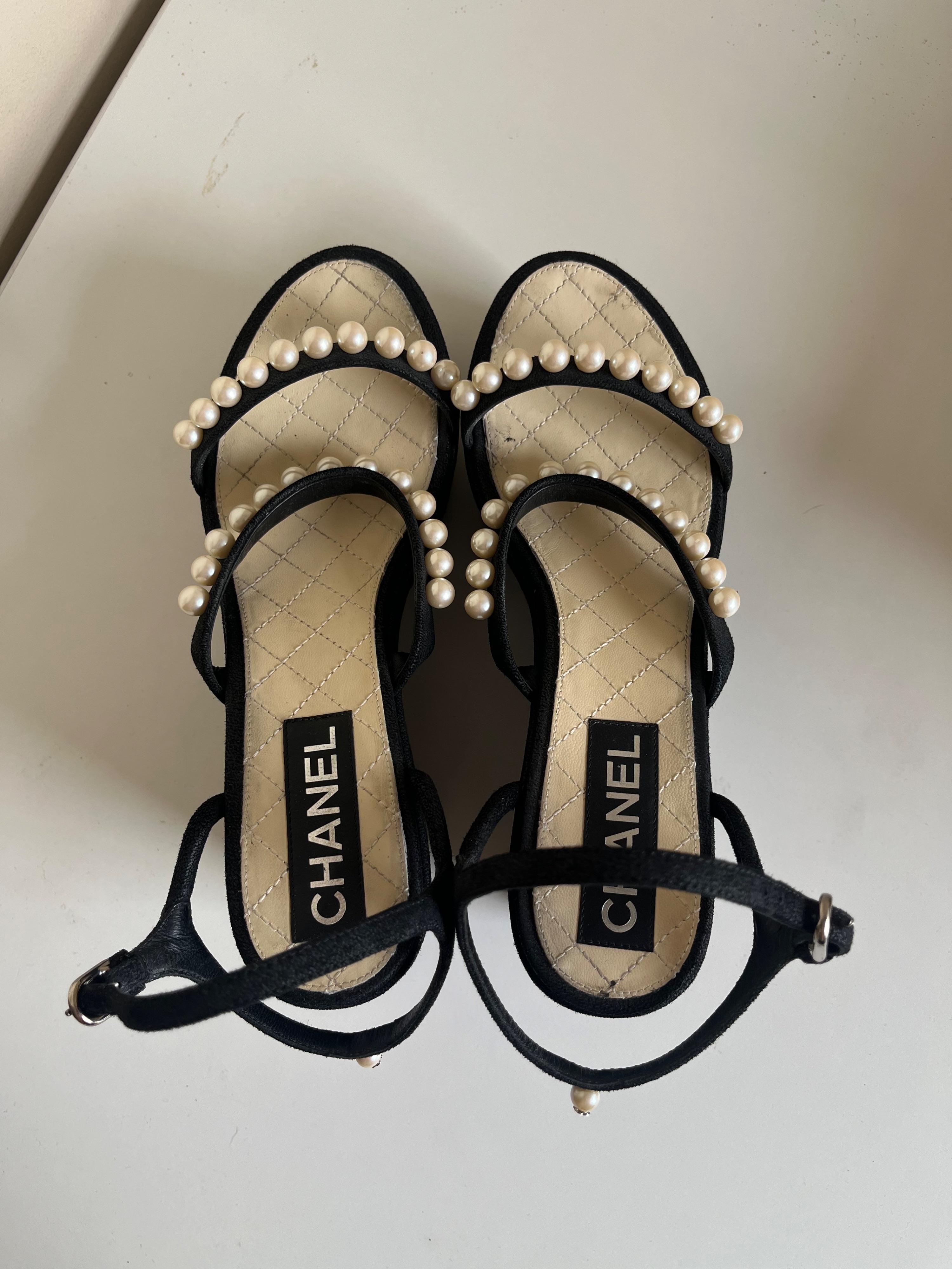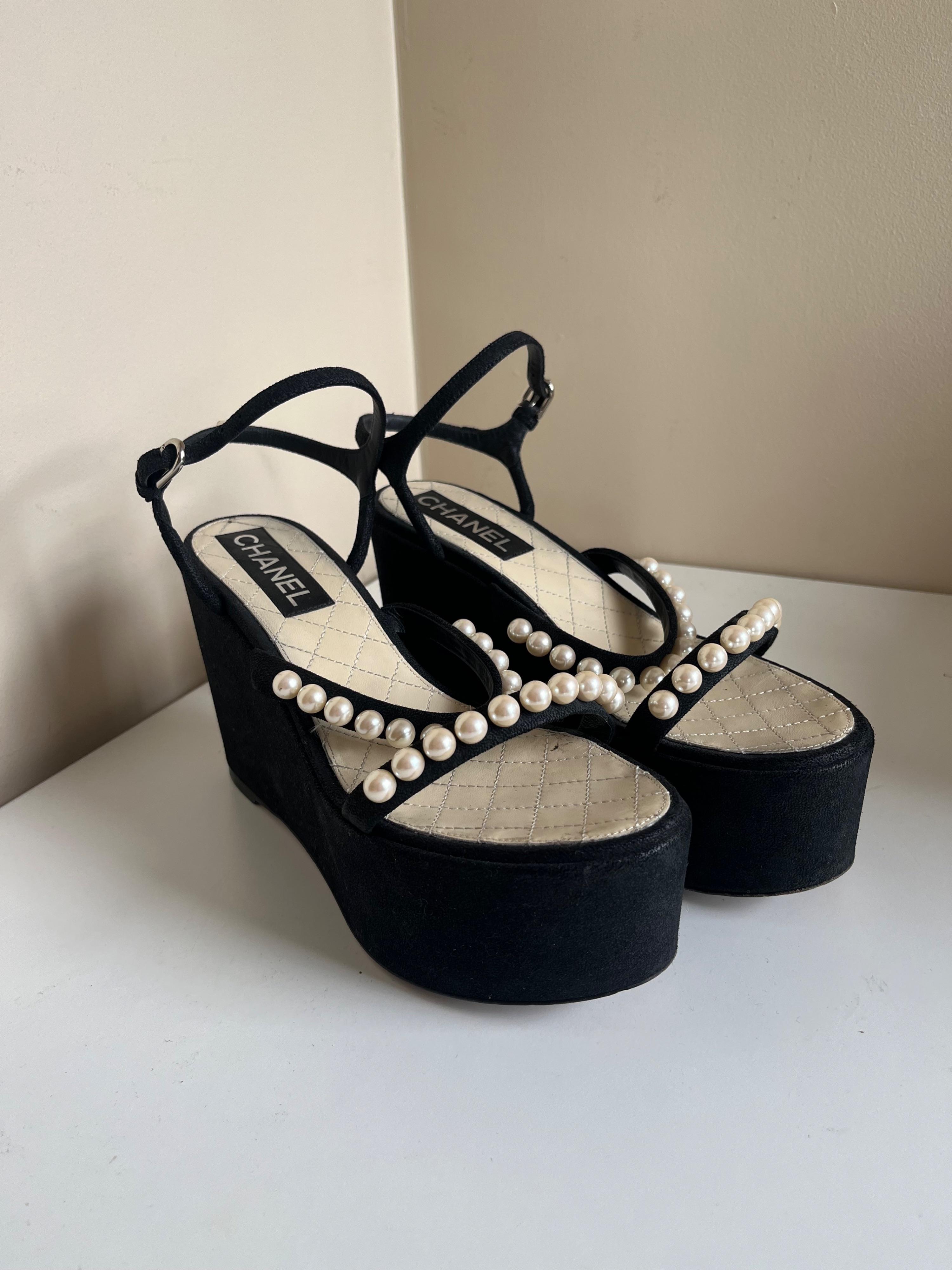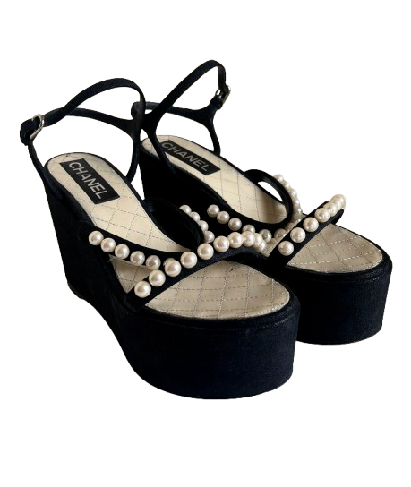 Chanel Faux Pearl Detail Platform Wedges