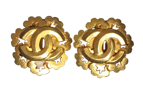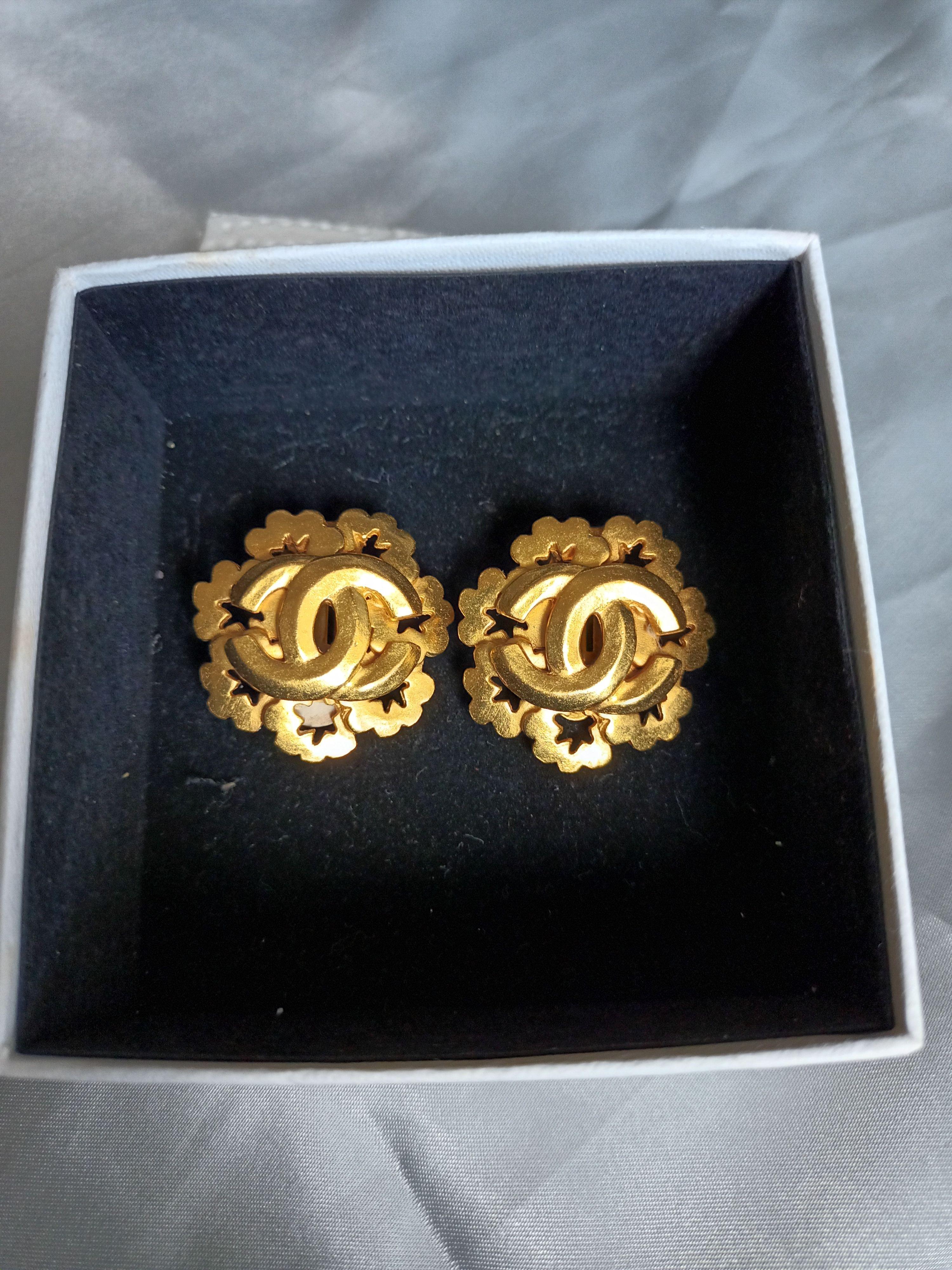 Chanel Gold Plated CC Flower Earrings