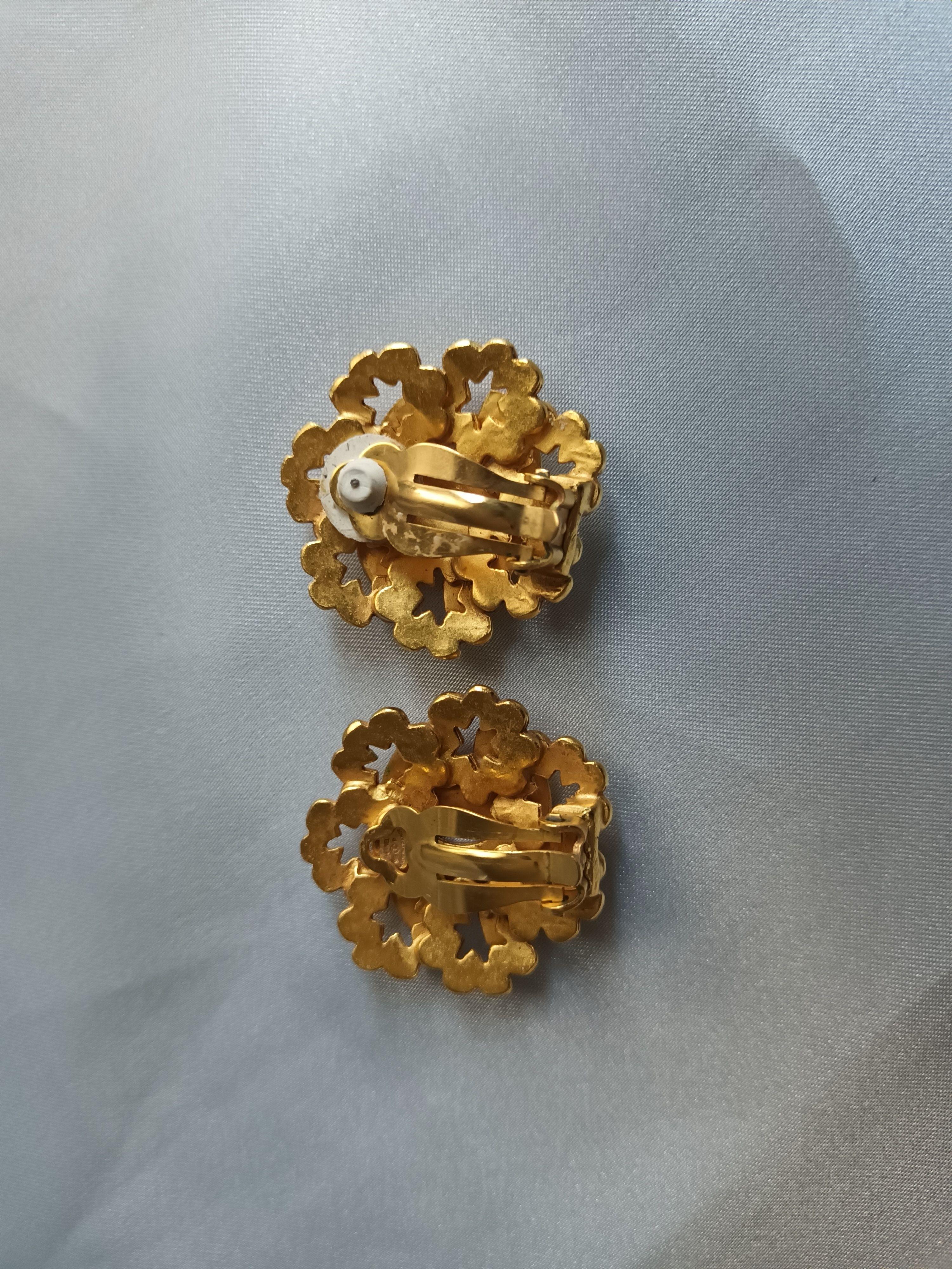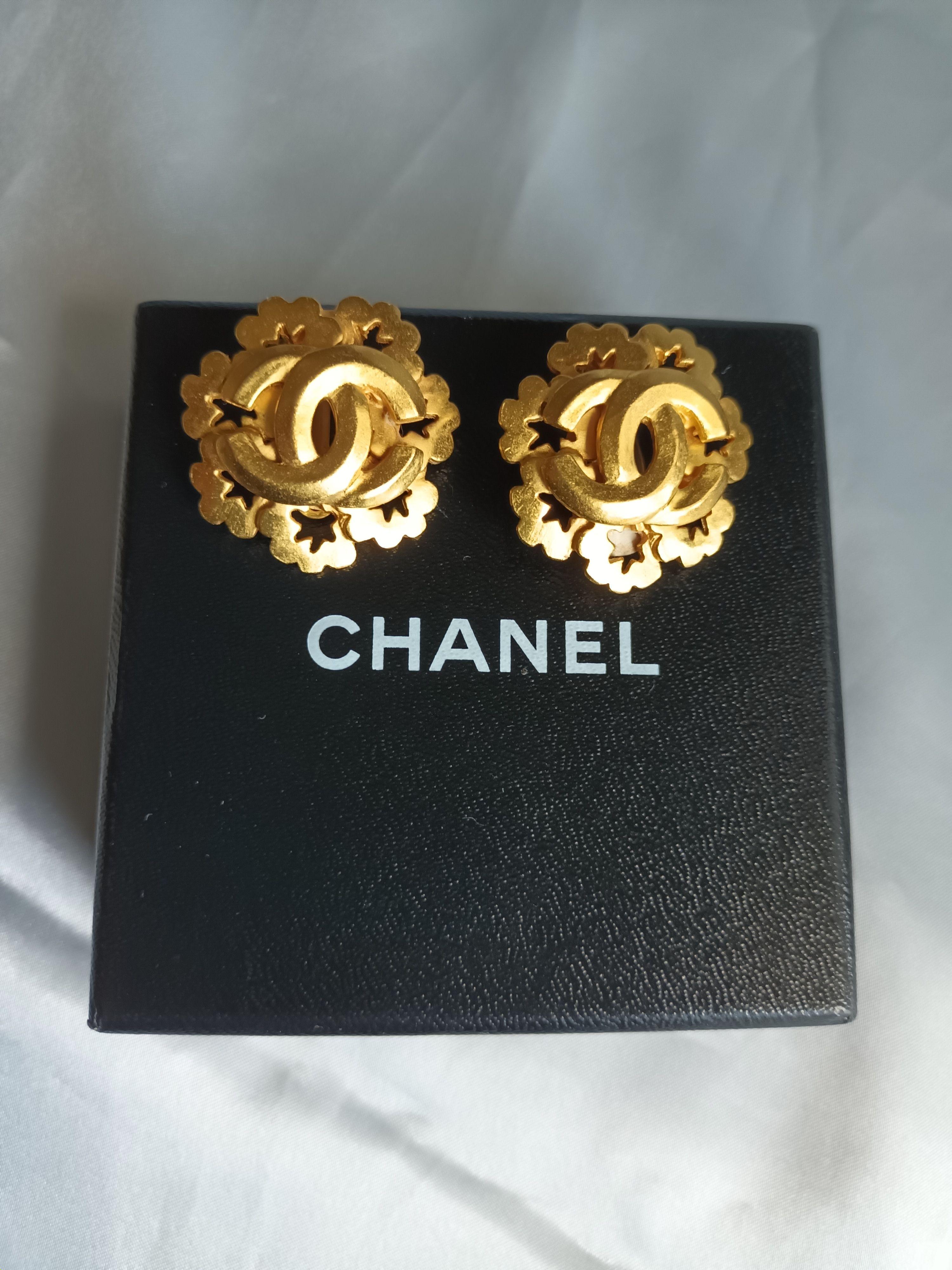 Ladies Chanel Gold plated CC Flower clip-on Earrings. Gold plated metal, clip-on closures. Pre-owned, in a very good vintage condition. No scratches on both sides.