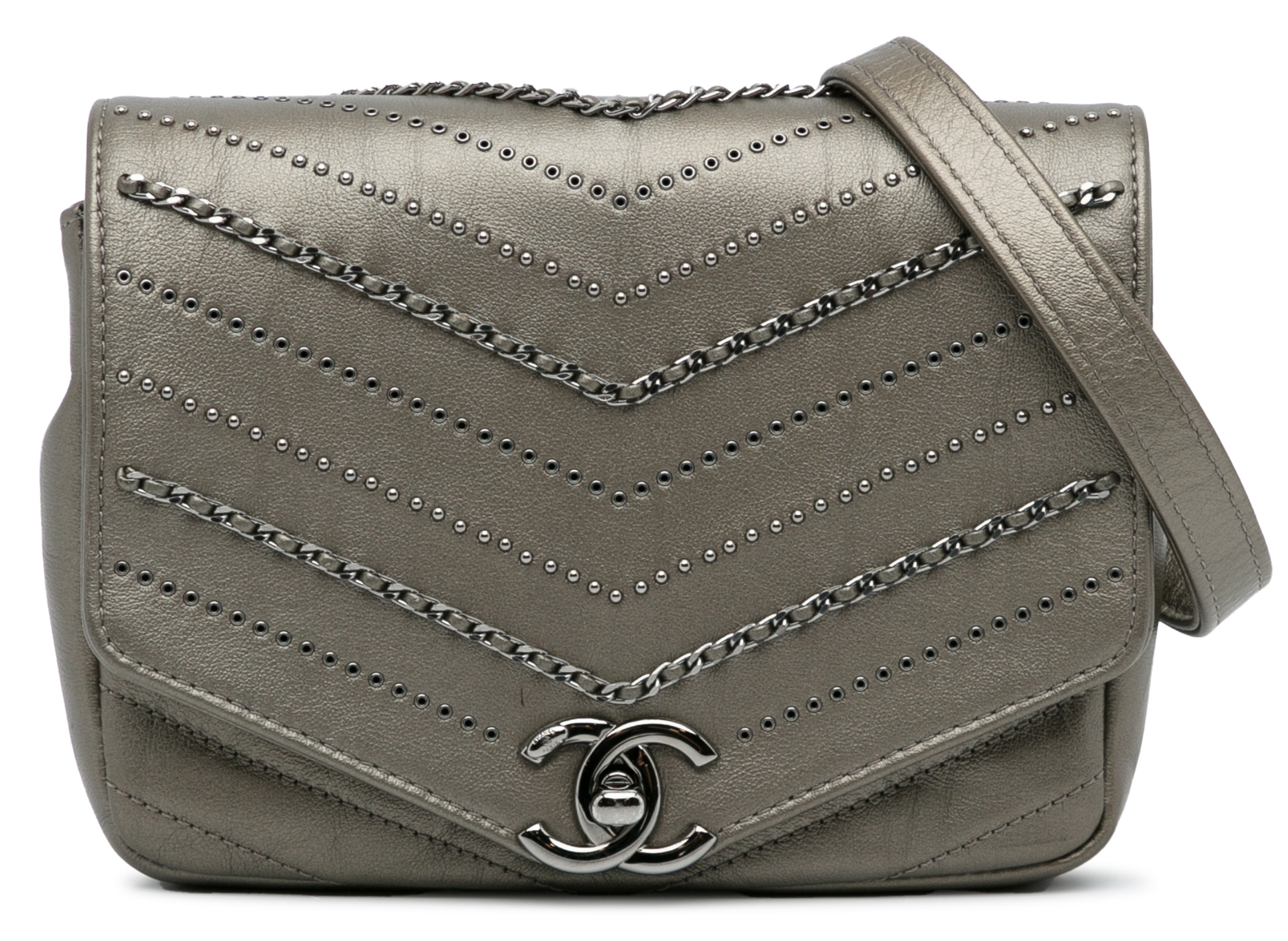 Chanel Grey Mini Embellished Chevron Envelope Flap Bag