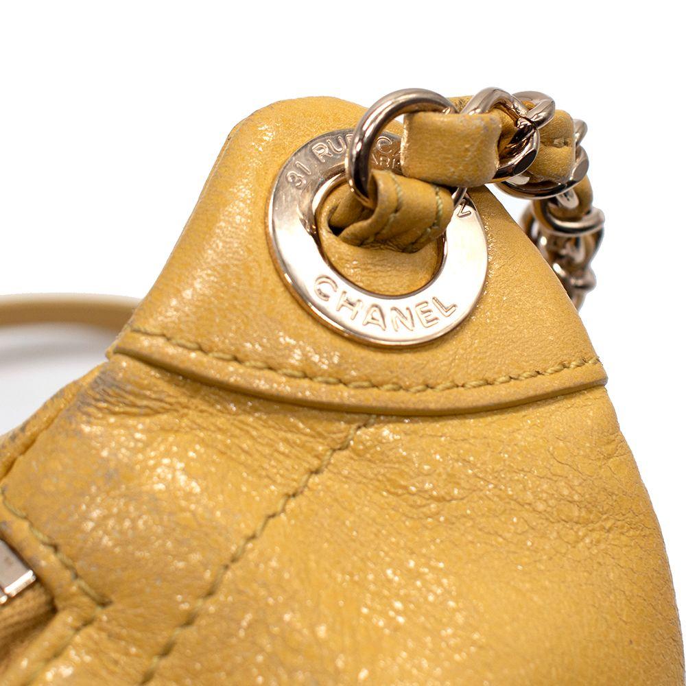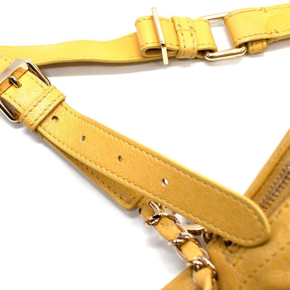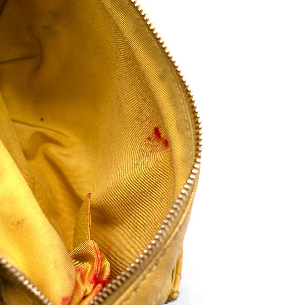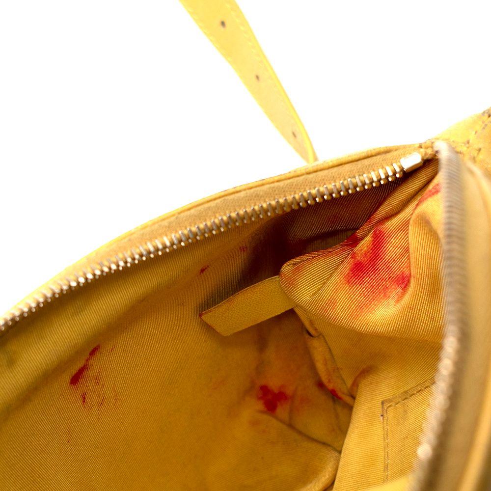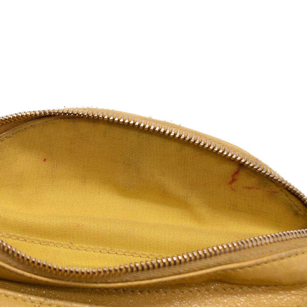 Made of lambskin leather, bright yellow fabric interior lining, and gold hardware