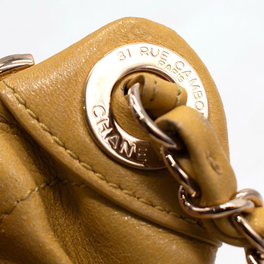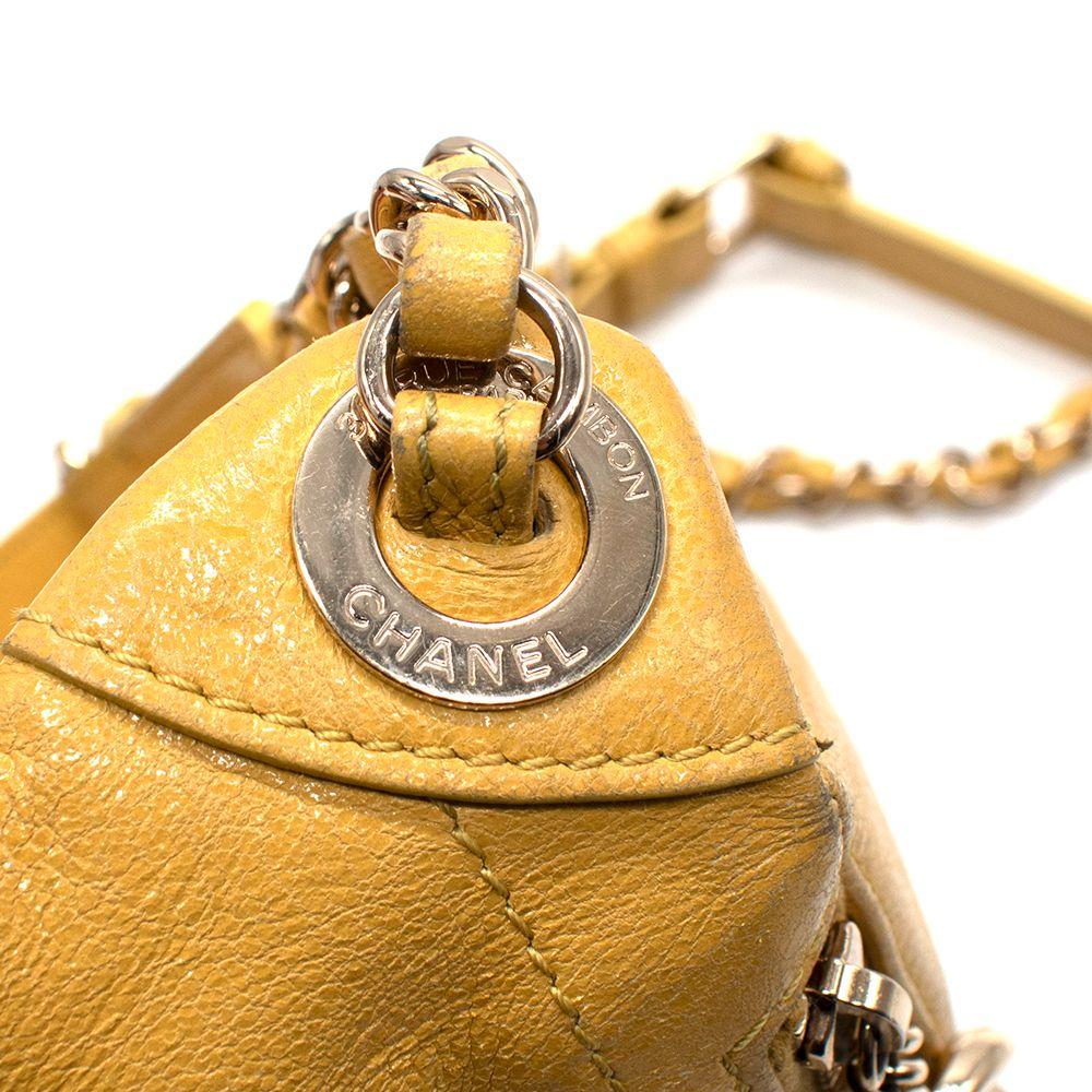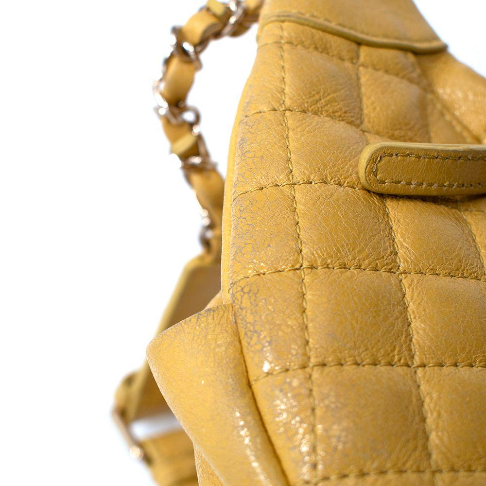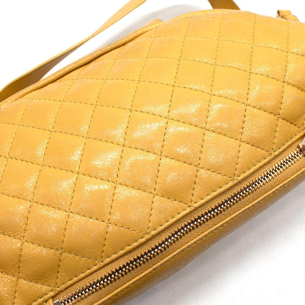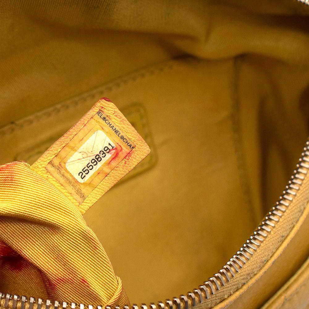 Made of lambskin leather, bright yellow fabric interior lining, and gold hardware