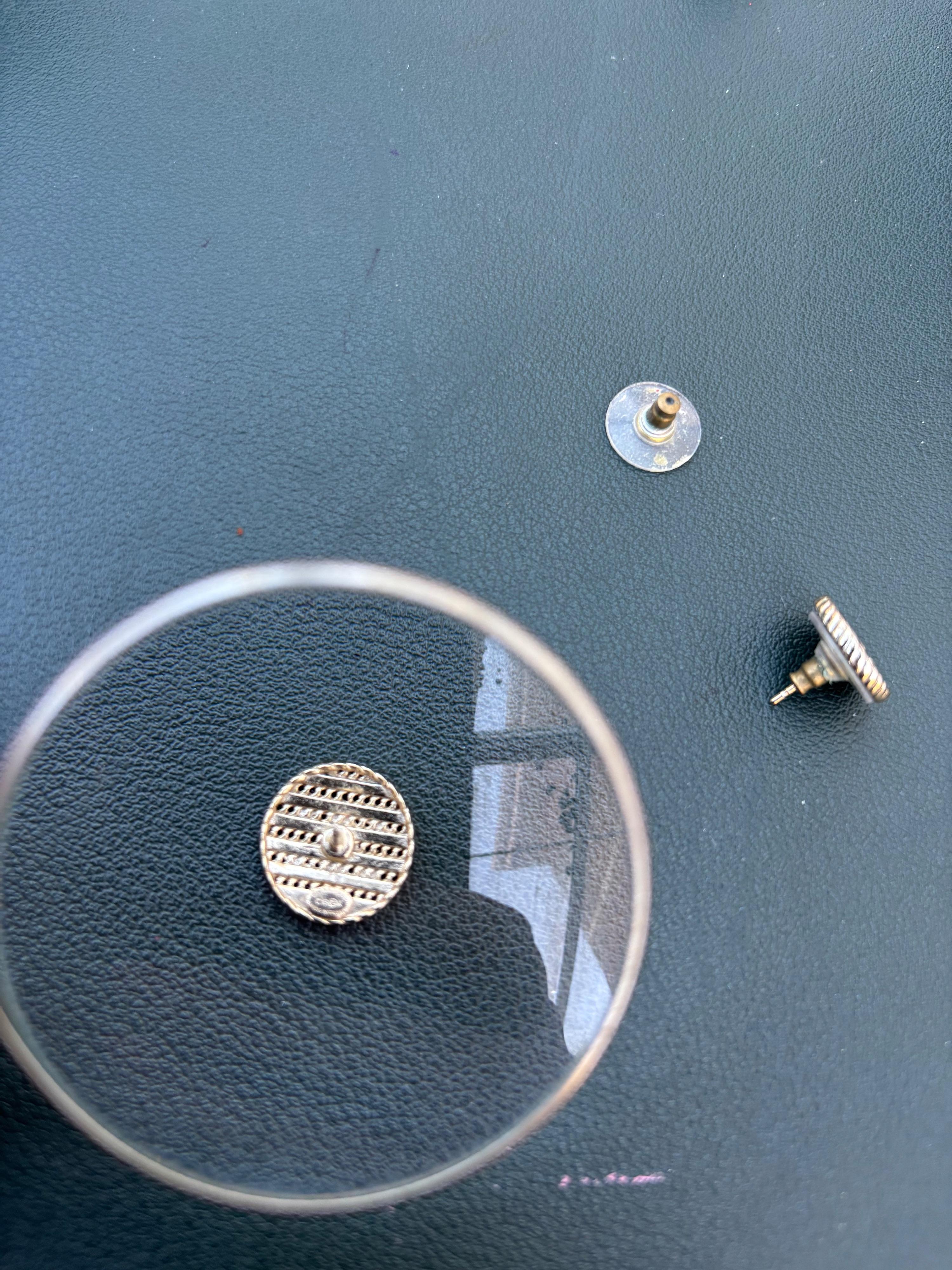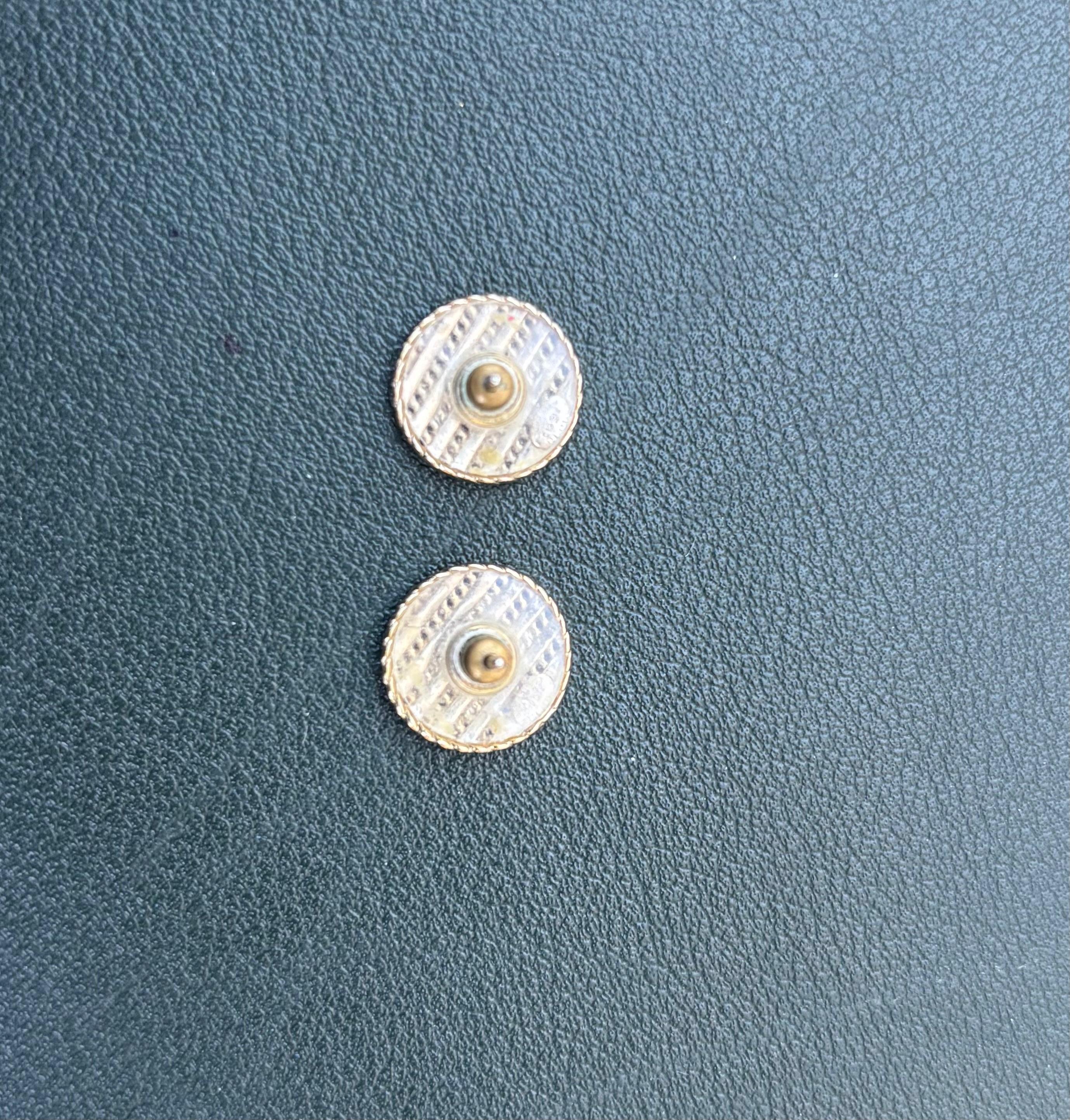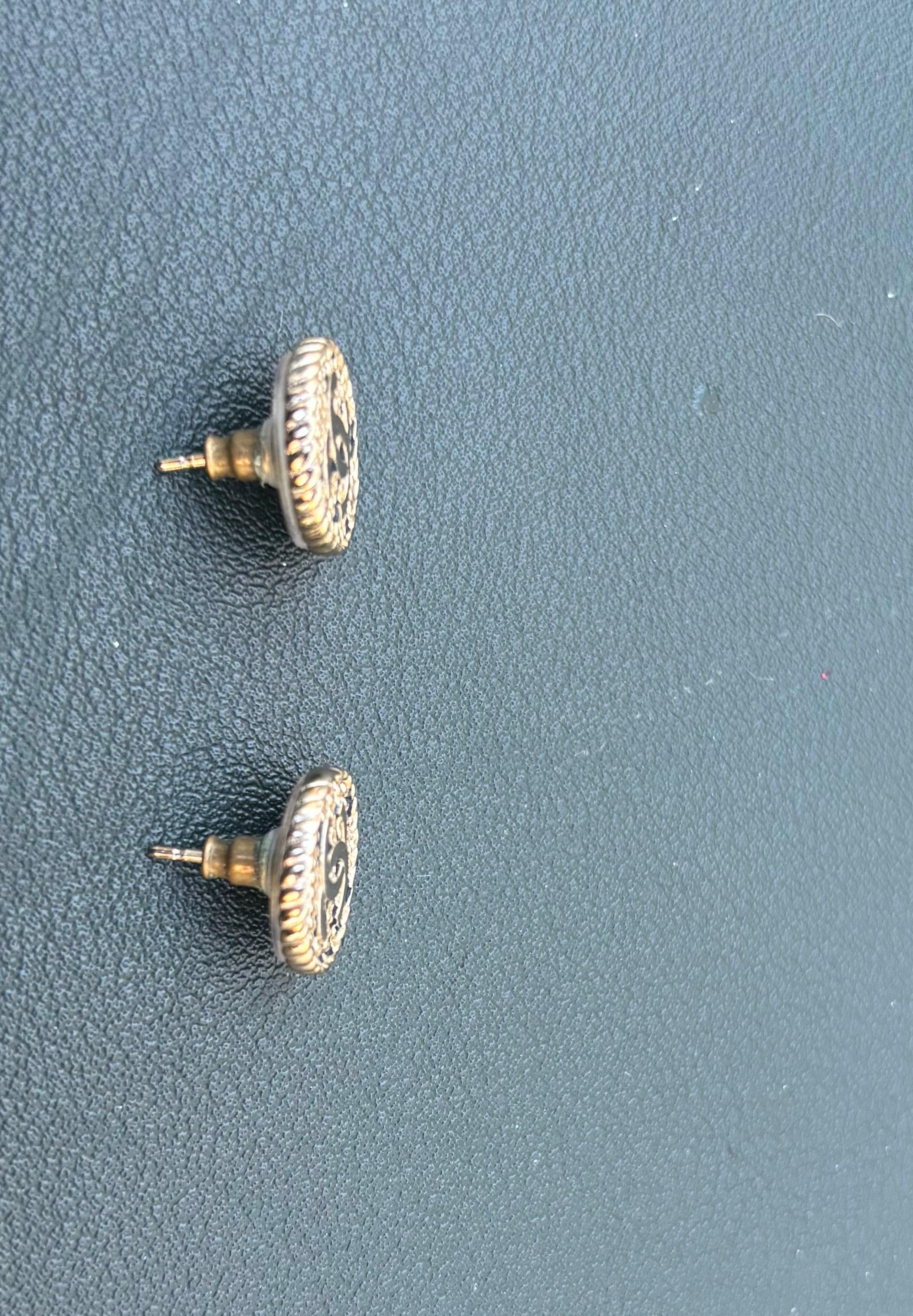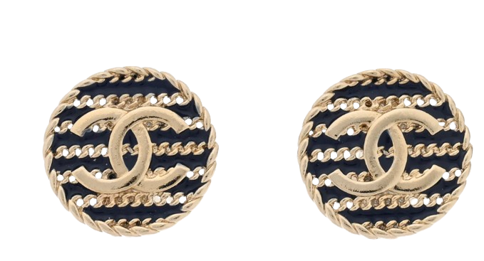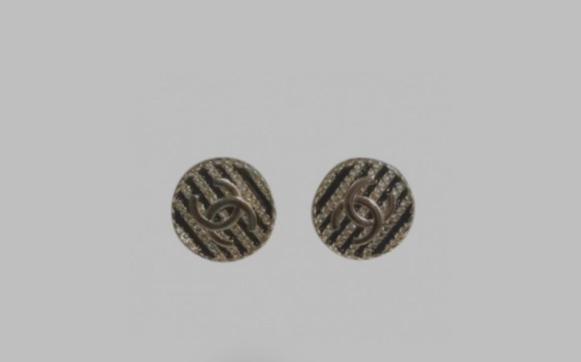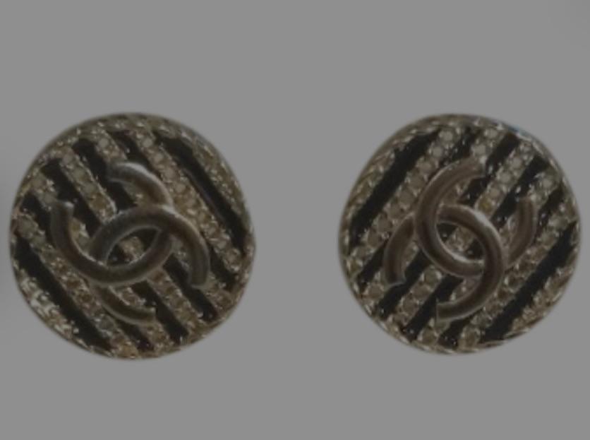 Chanel round CC black and chain stripe earrings.