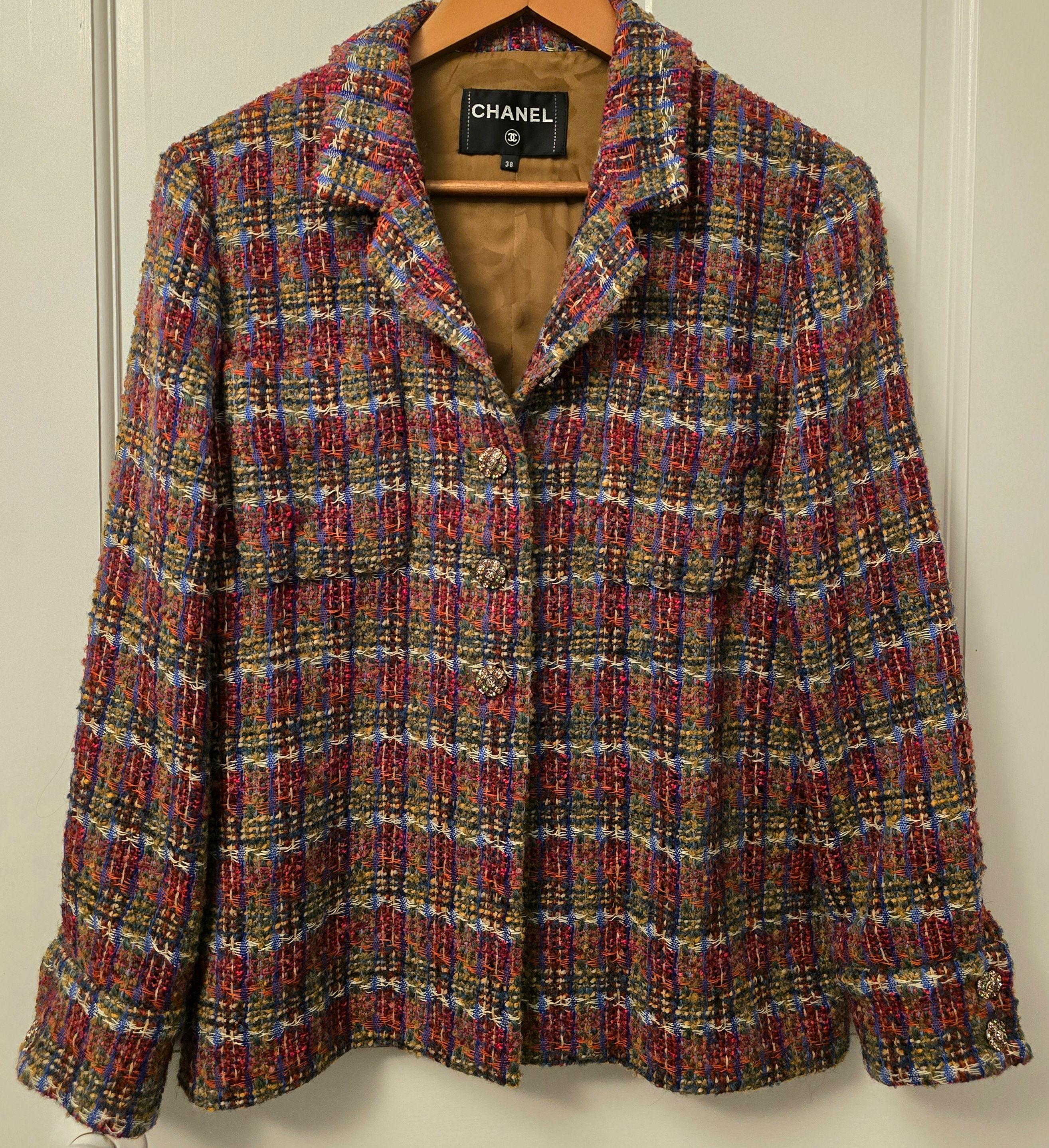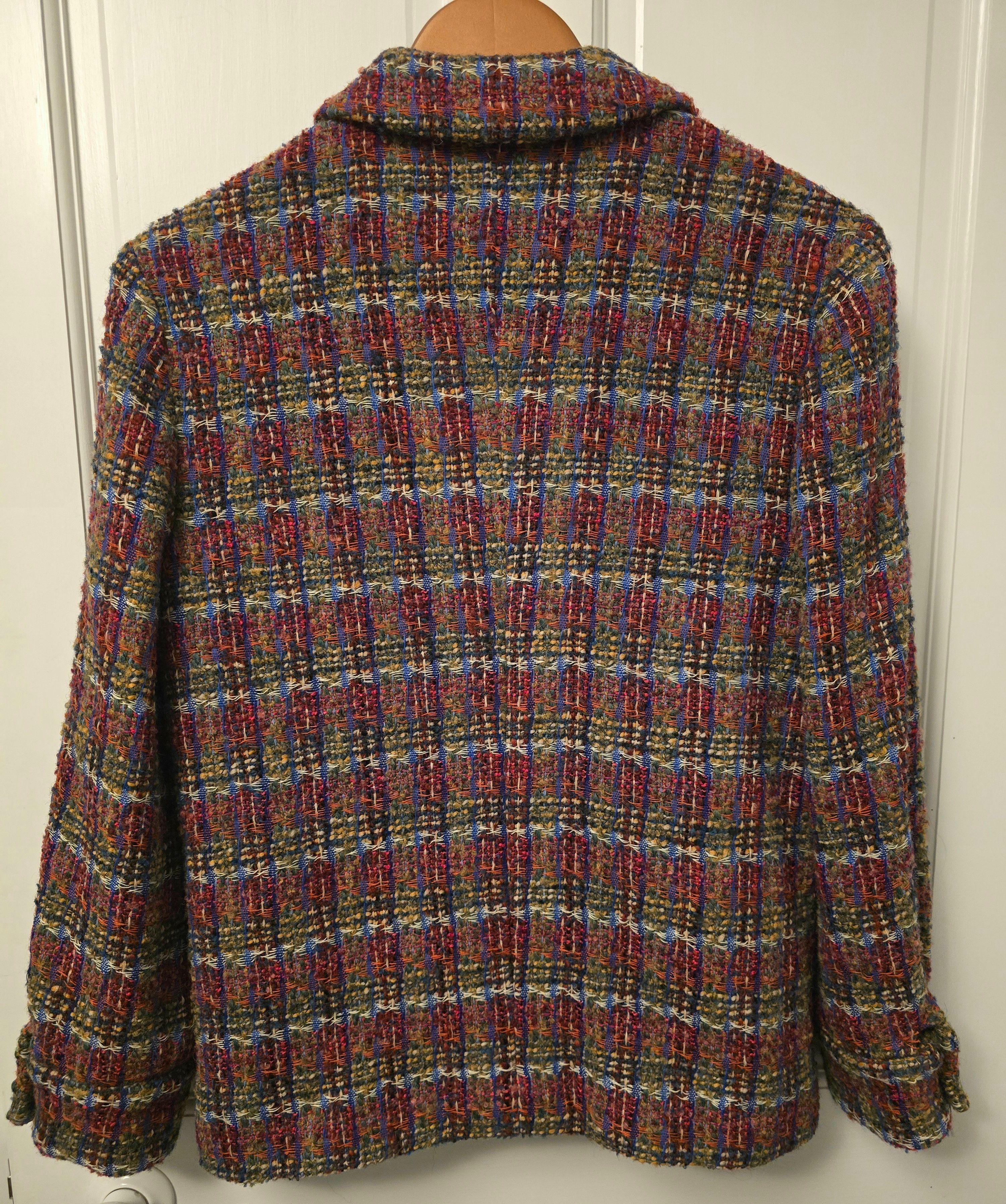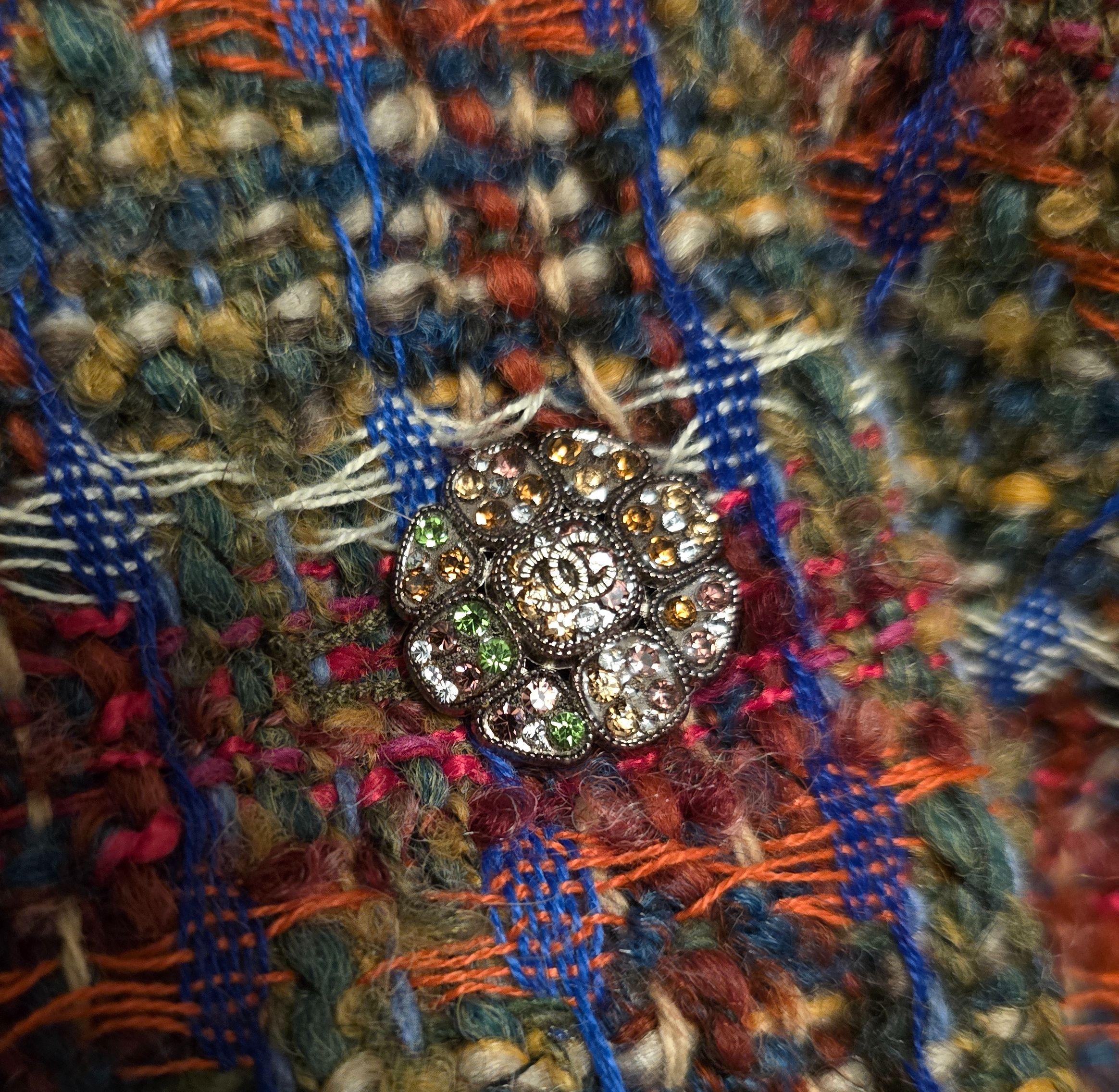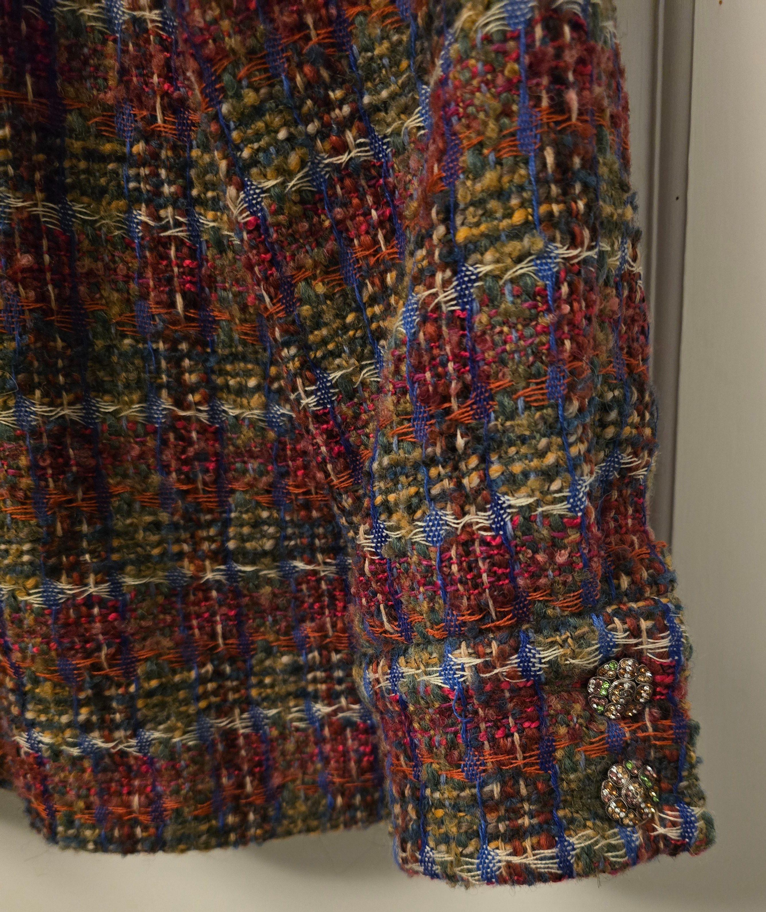 Chanel 2022 Autumn/Winter (22K) collection. Vibrant multi-coloured tweed in shades of red, blue, yellow, and earthy tones