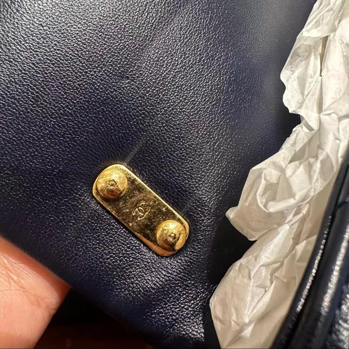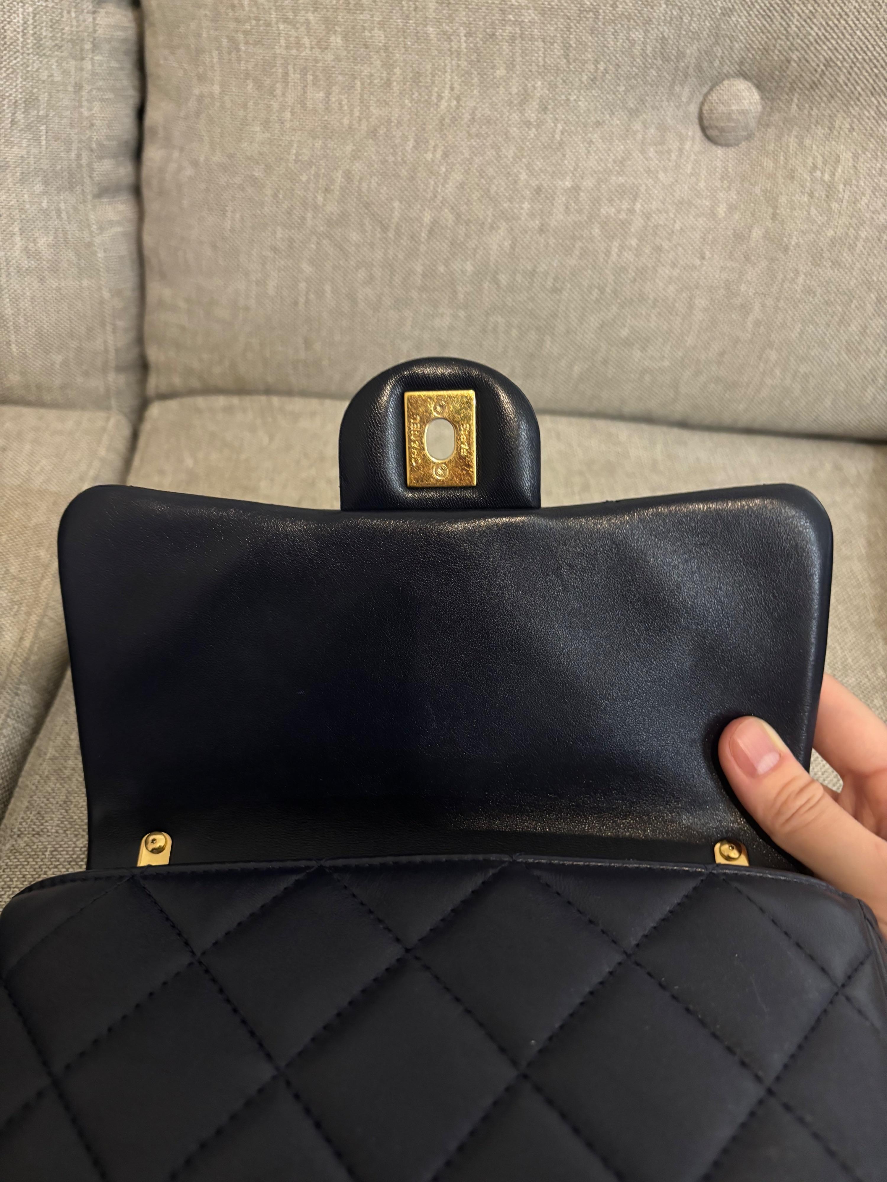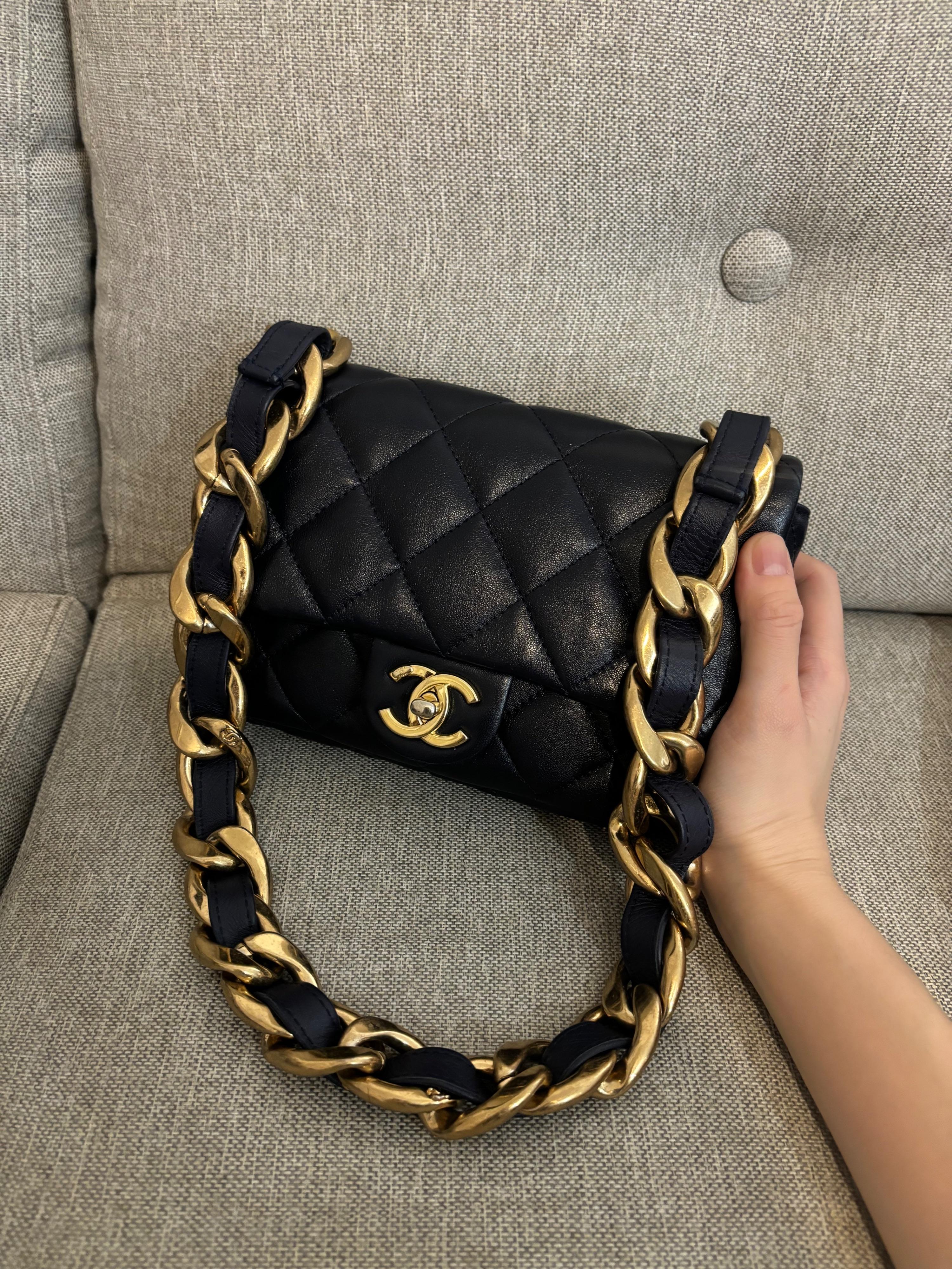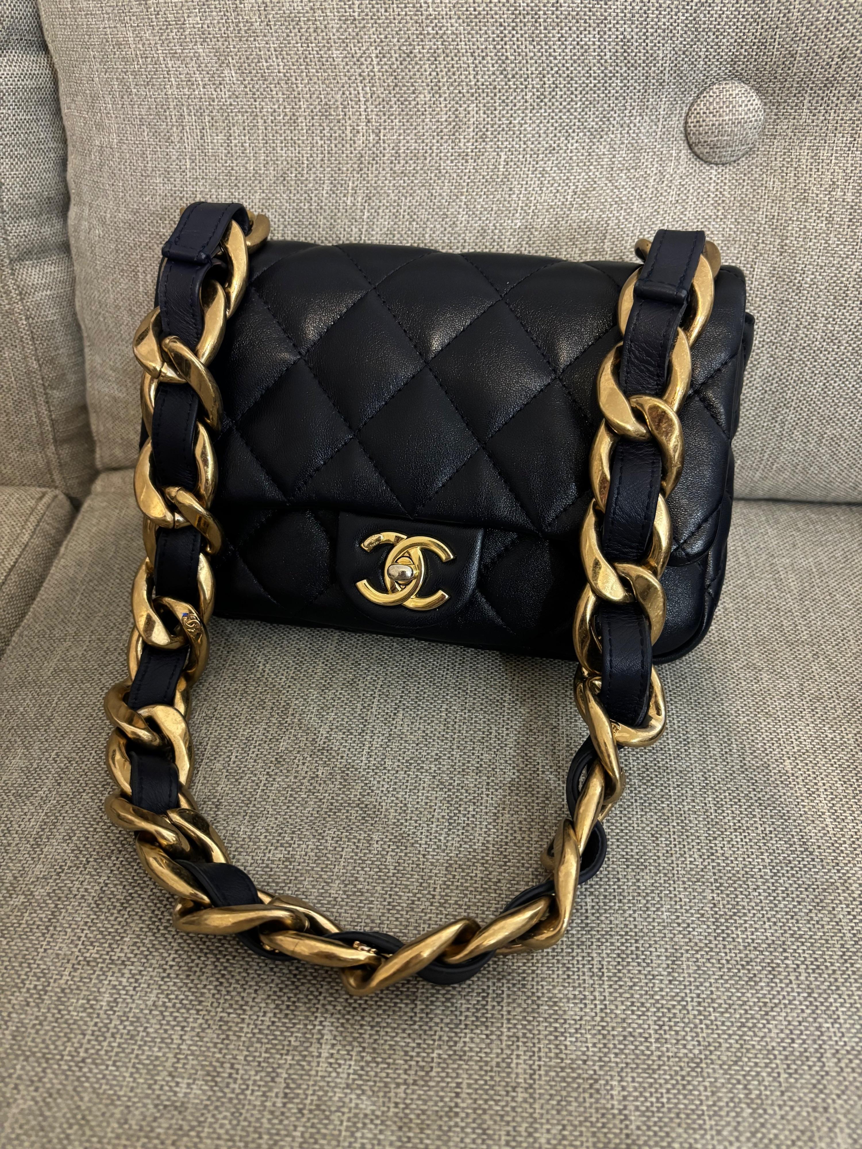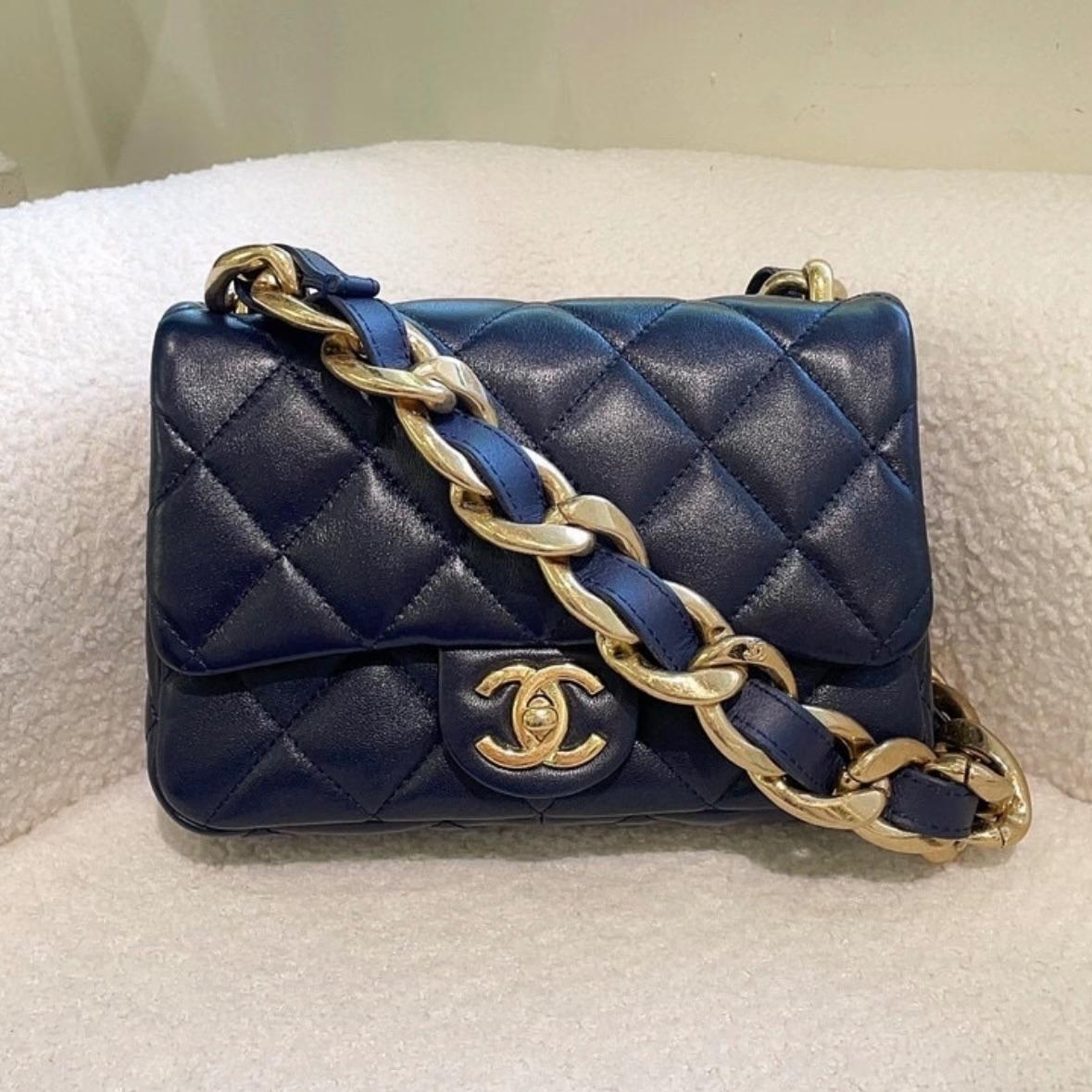 Chanel 23p funky town navy blue lambskin leather classic flap bag with gold chunky gold chain strap shoulder bag RRP:£4000