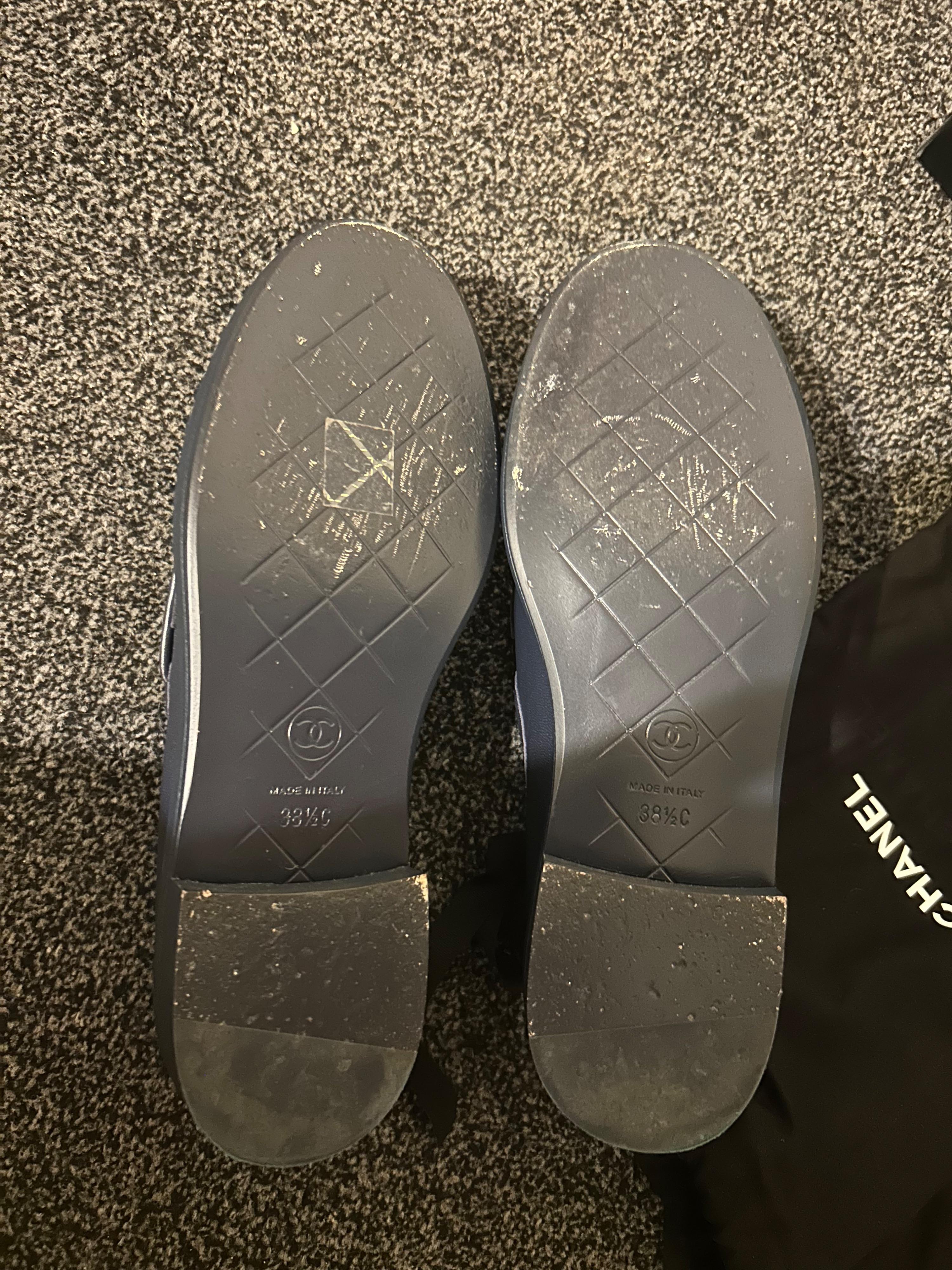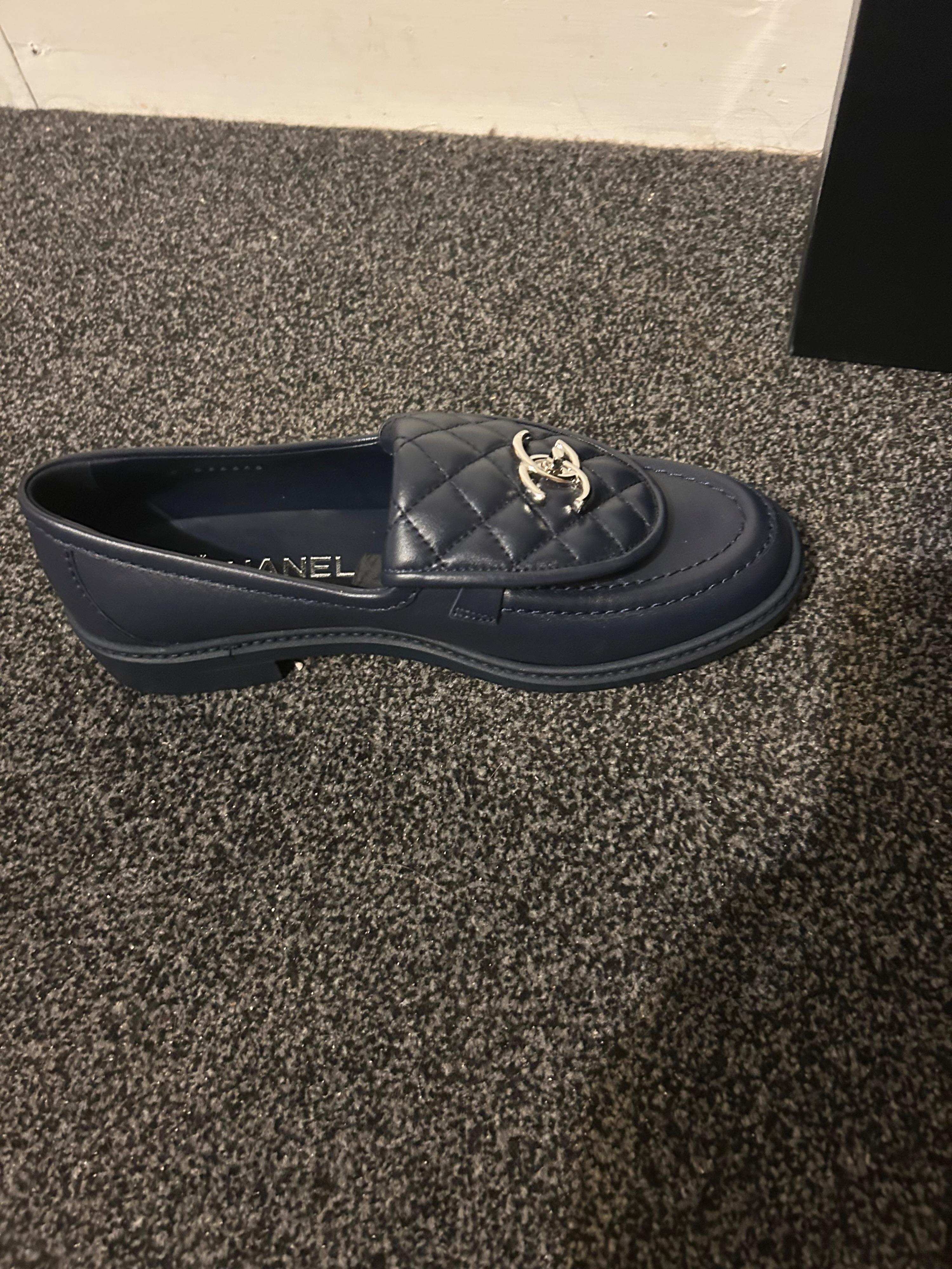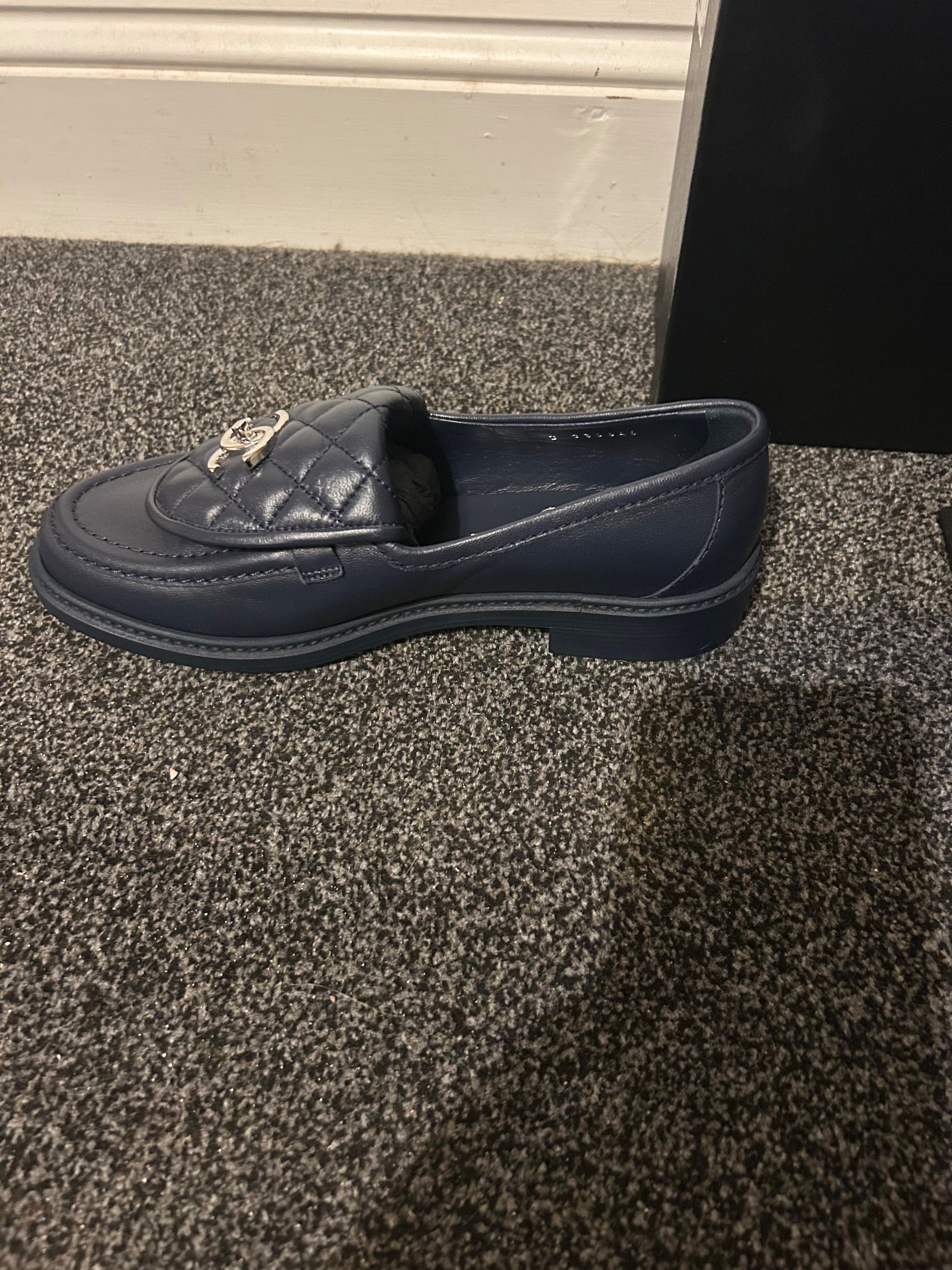 Chanel Navy quilted turn lock loafers in navy blue worn only once excellent condition with dust bags and box size 38.5