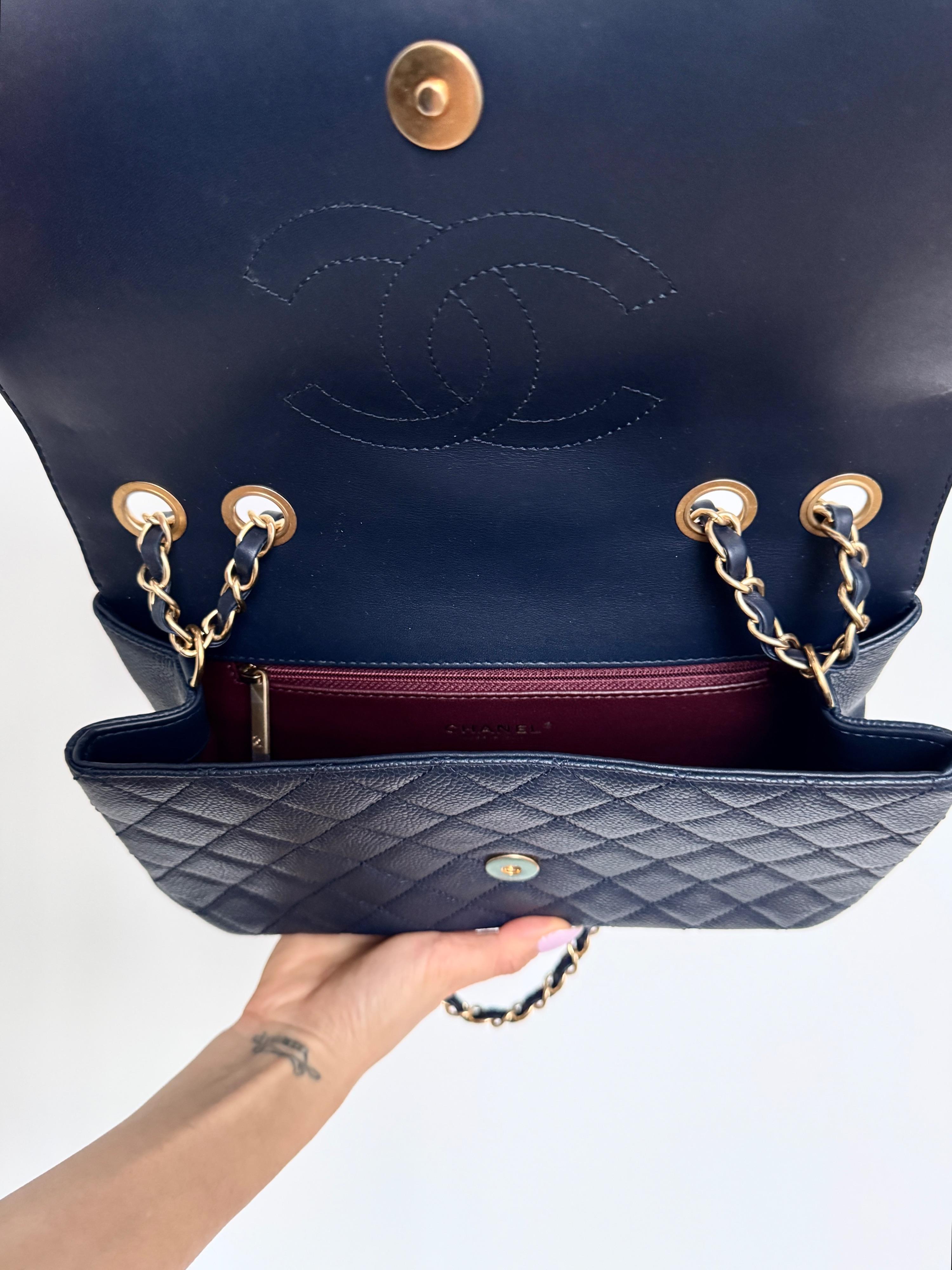 Chanel Navy Blue Medium Flap Quilted Caviar Bag