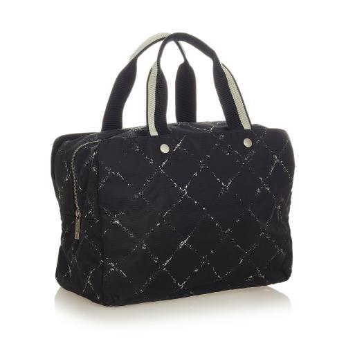 The Old Travel Line handbag features a nylon body, flat straps, a top zip closure, and interior zip pockets.