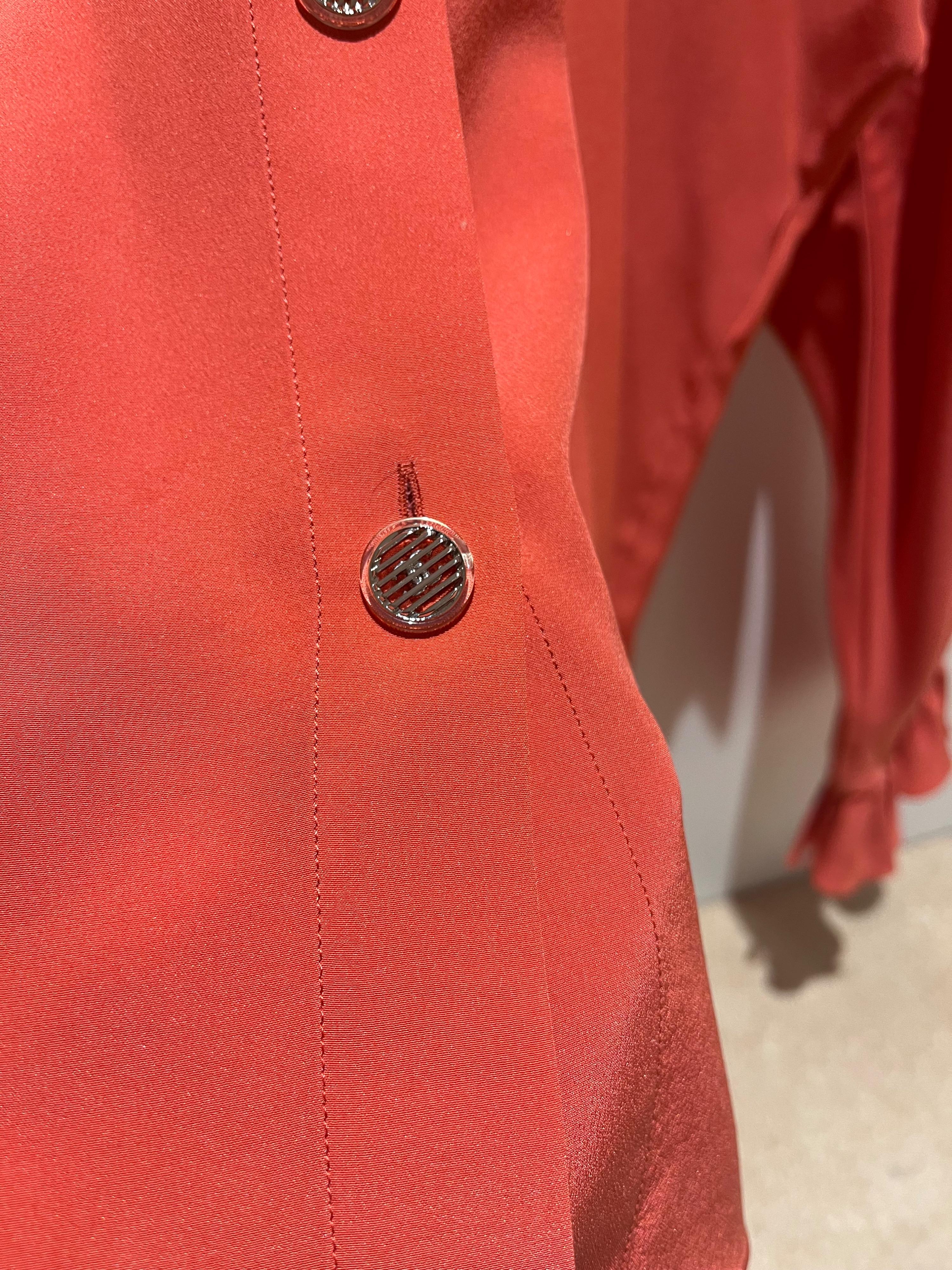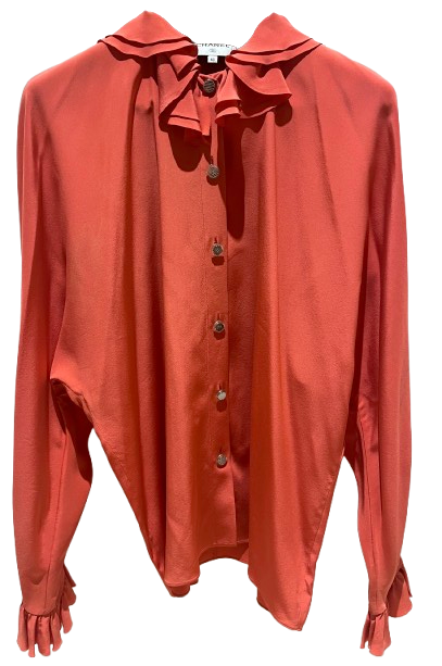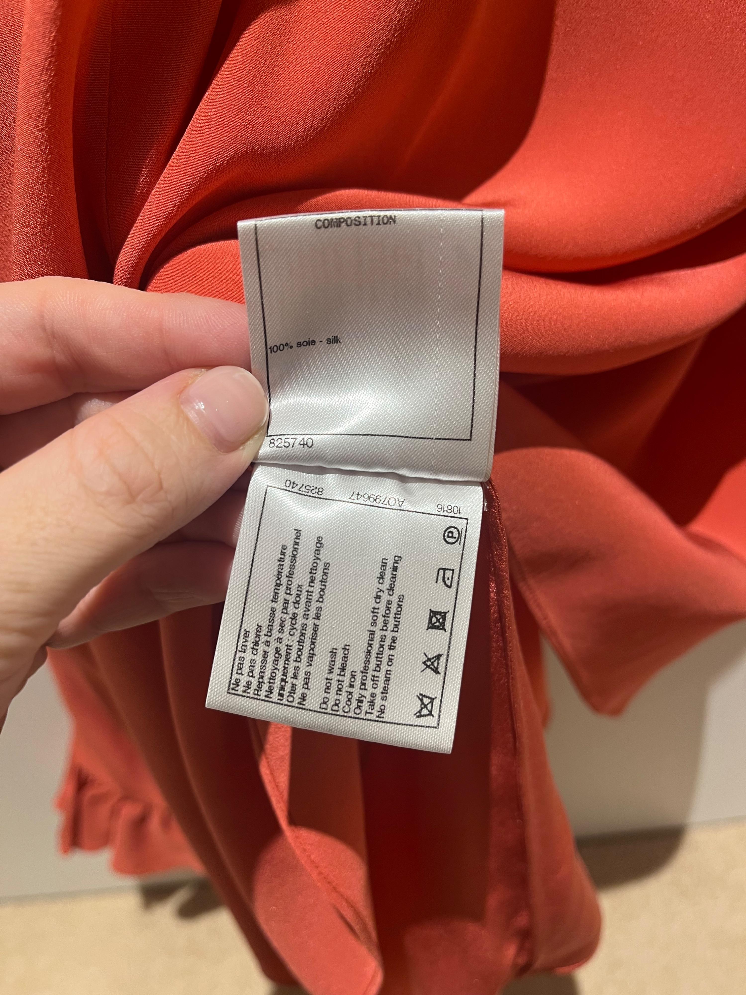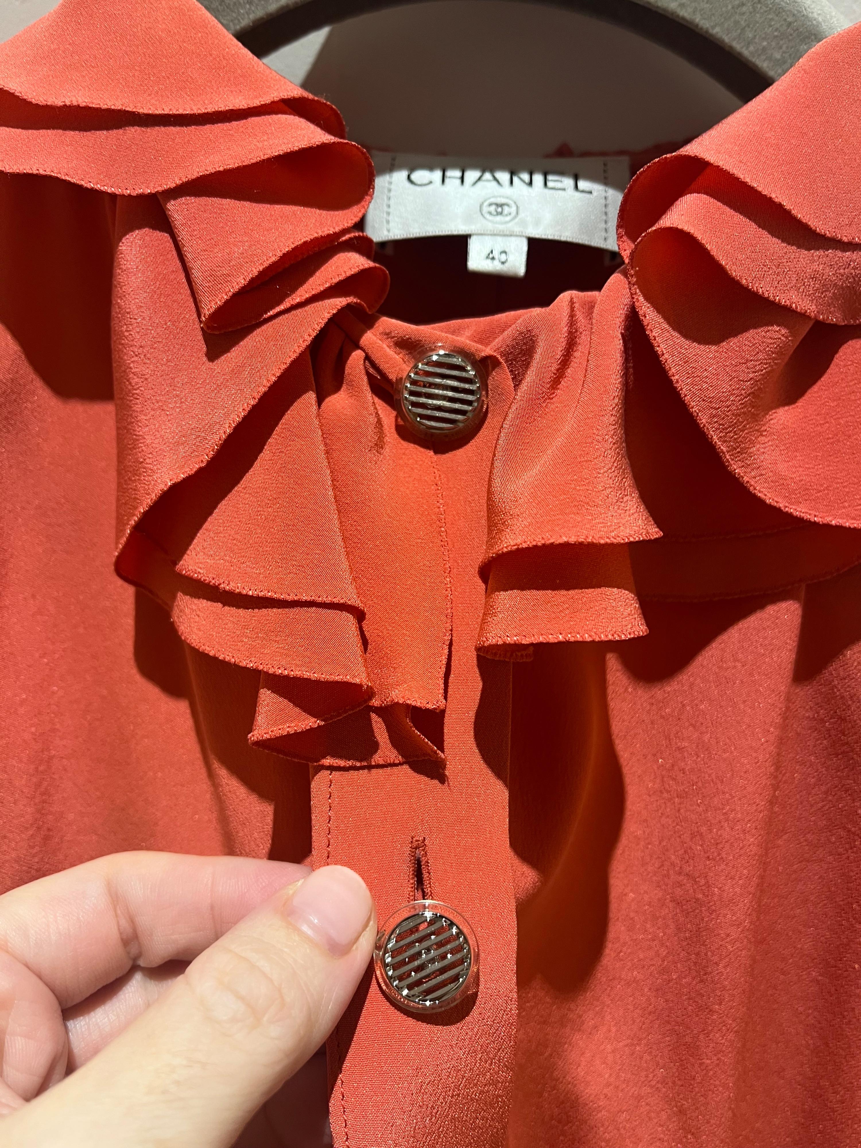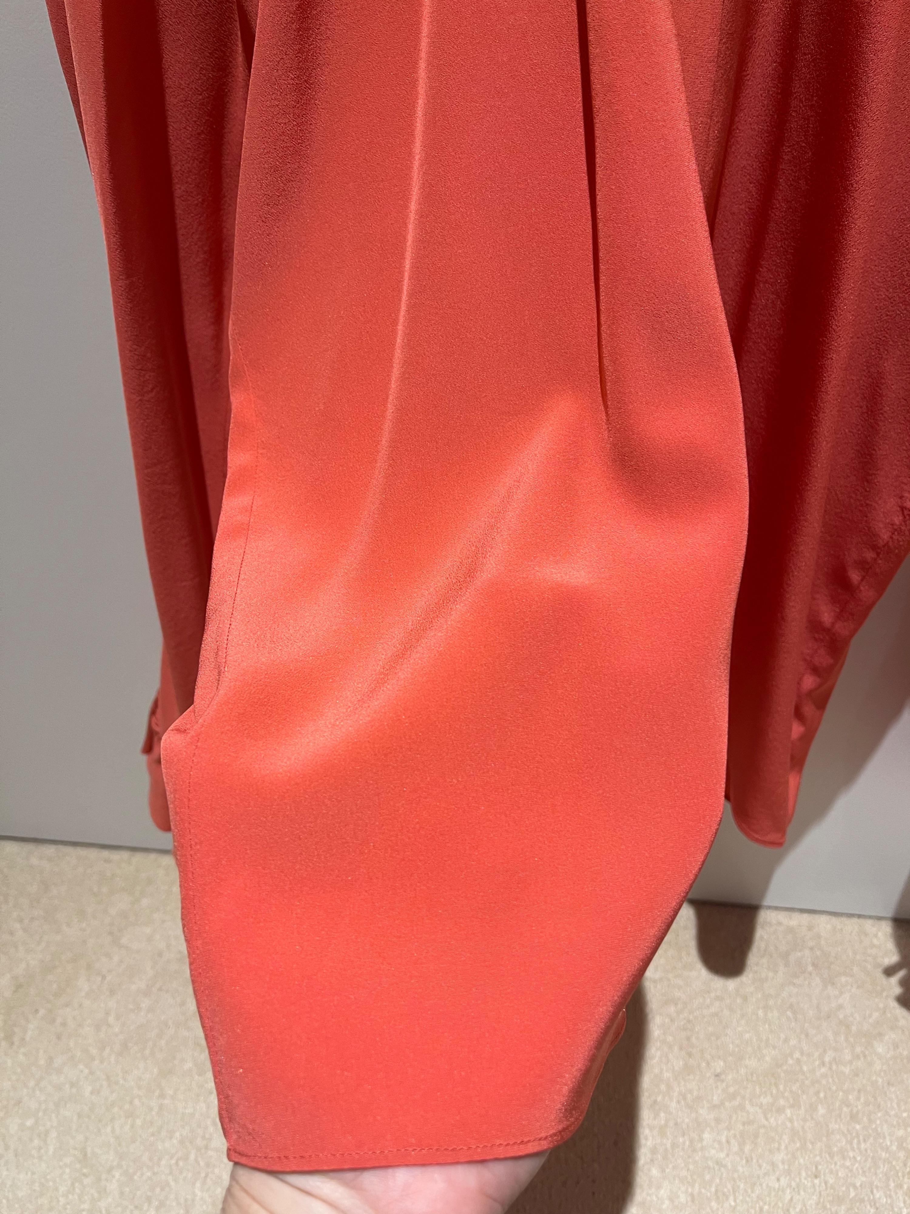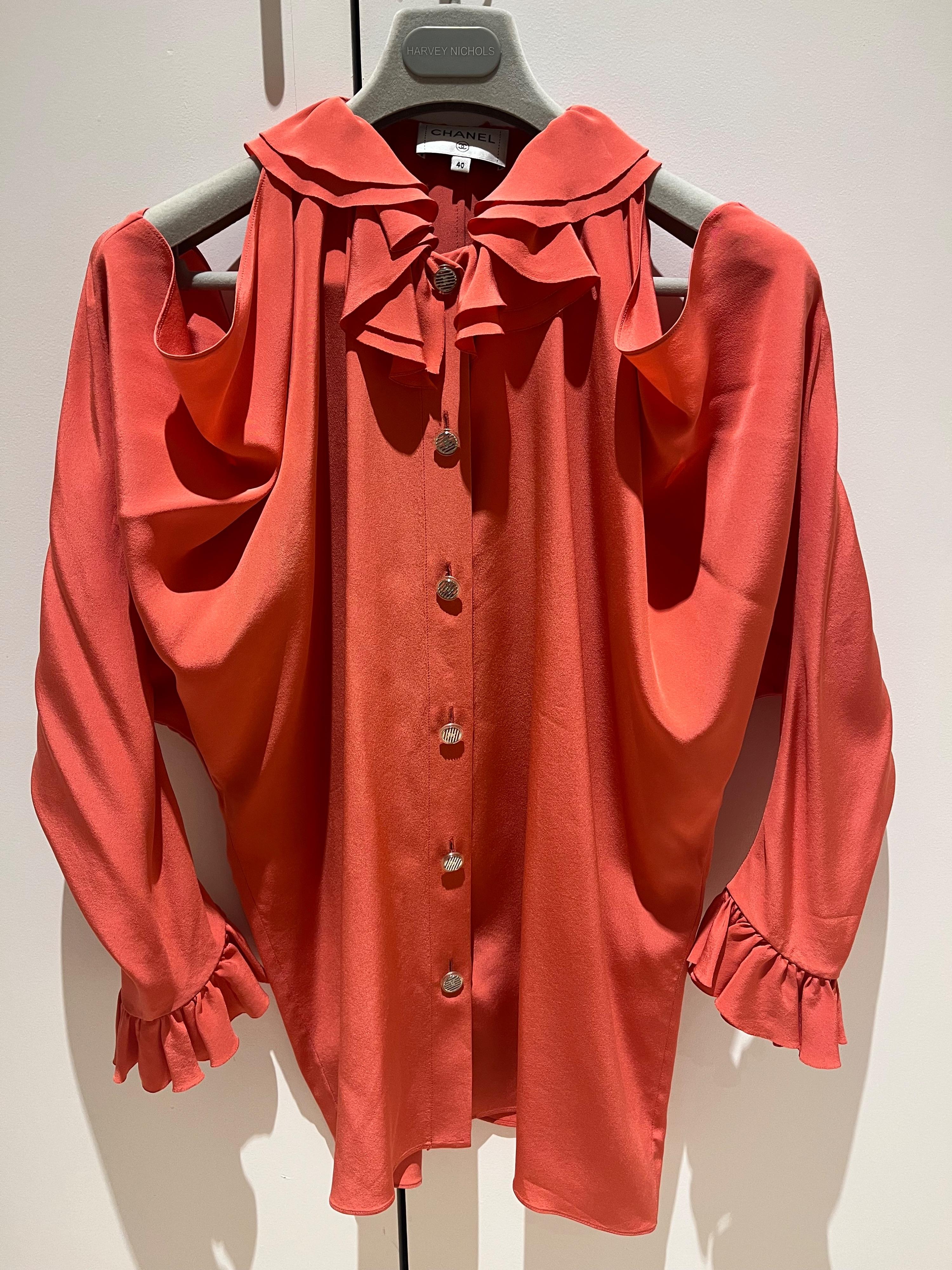 Chanel ladies coral coloured 100% silk blouse in excellent like new condition, UK size 12