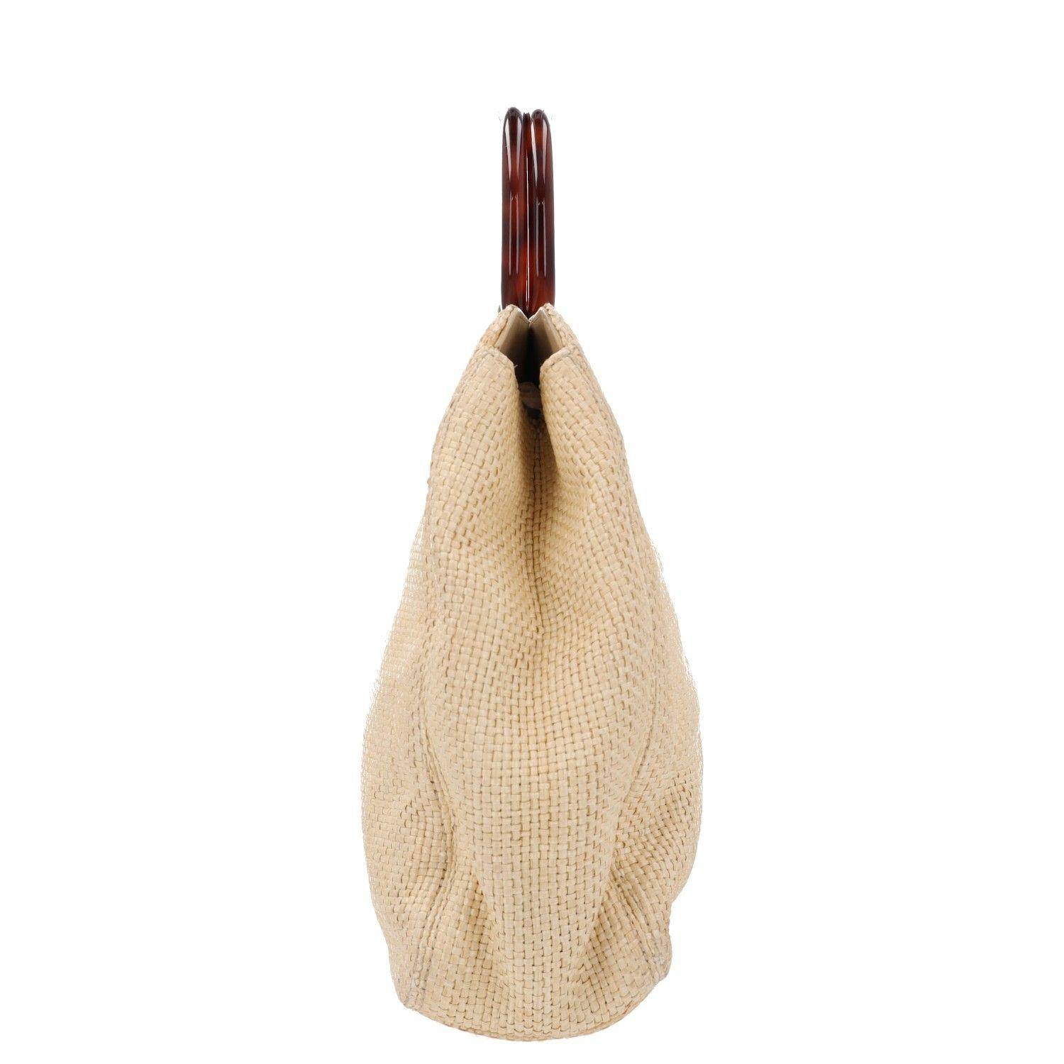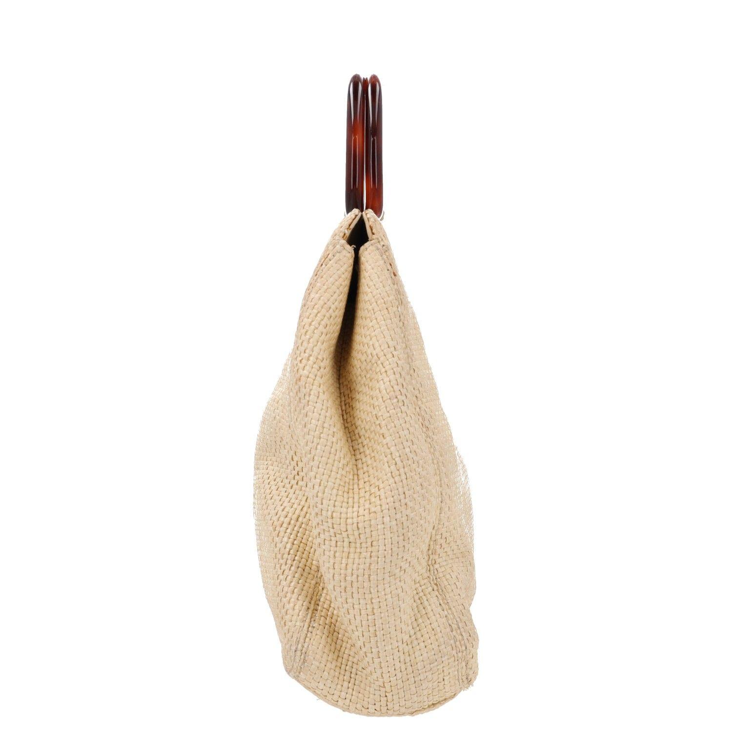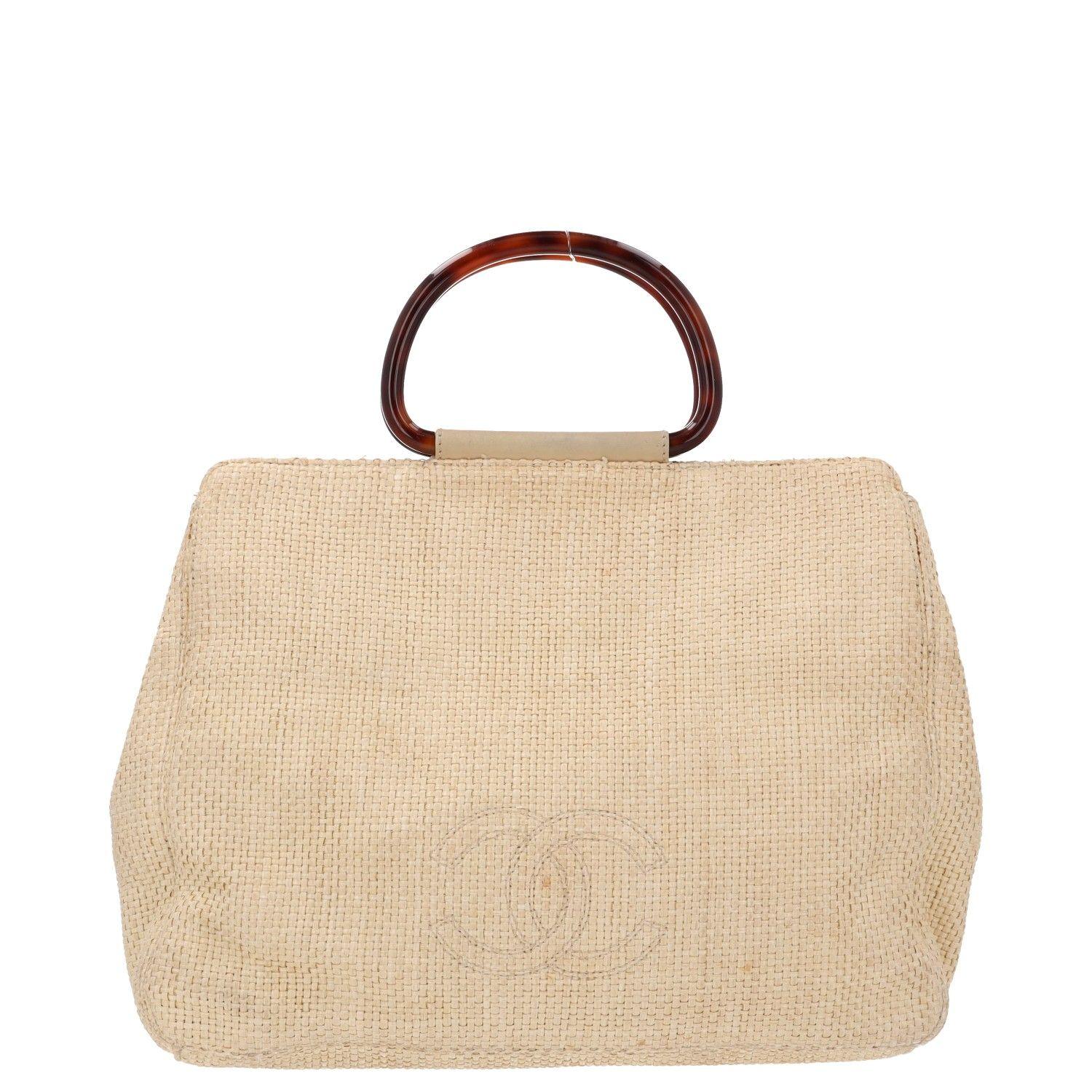The selected region shows a Chanel Raffia CC Top Handle Bag, a vintage piece typically from the early 2000s. This style features a woven straw or raffia exterior with the iconic interlocking CC logo stitched or embossed on the front.
