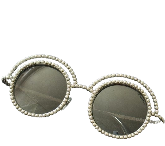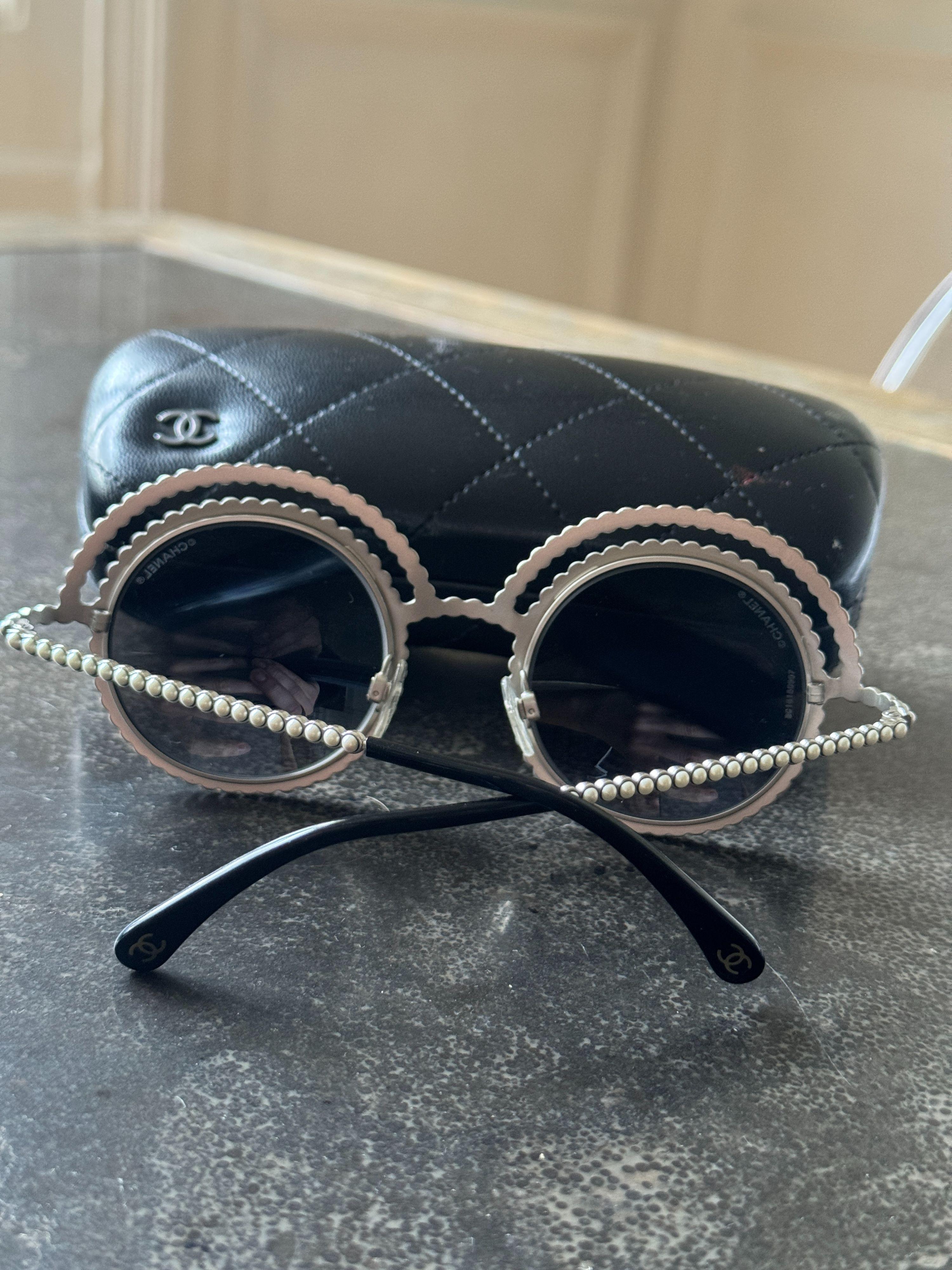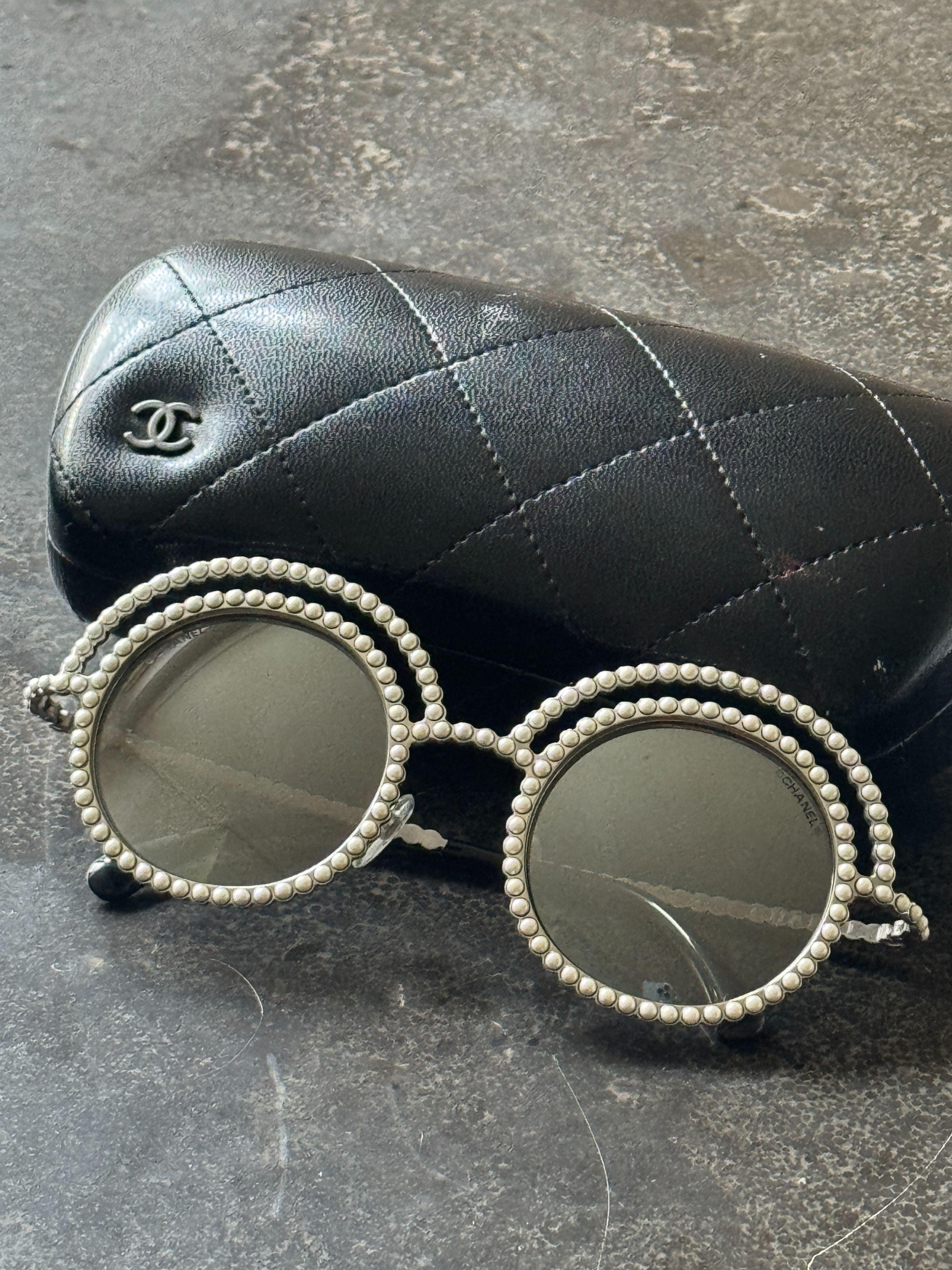 Pearl sunglasses with Chanel. Runway collection, as worn by Lily Depp in the campaign. With original box.