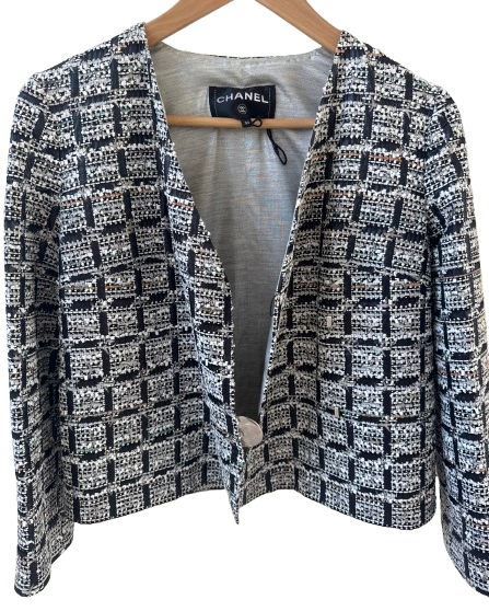 Chanel Short Black And Cream Tweed Jacket