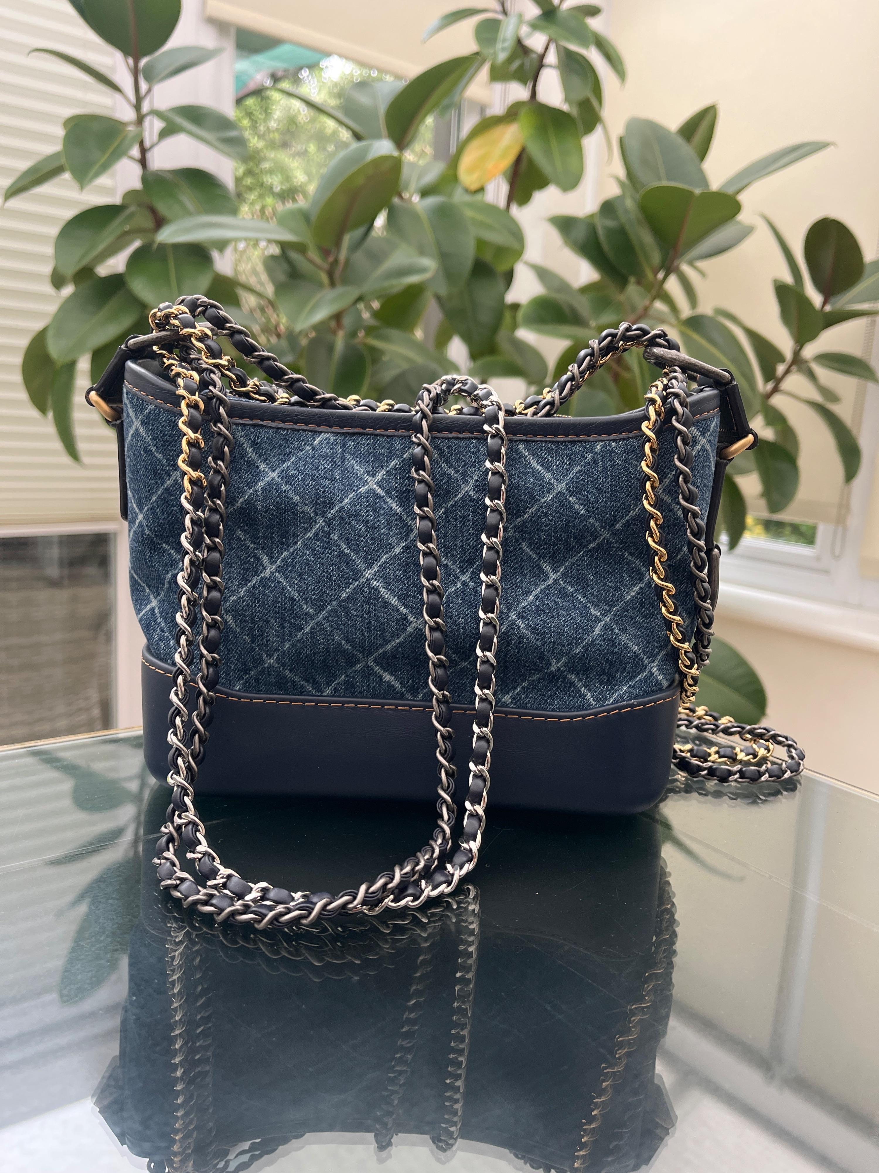 Chanel Blue Denim and Calfskin Gabrielle Hobo Small Tricolor Hardware, 2018