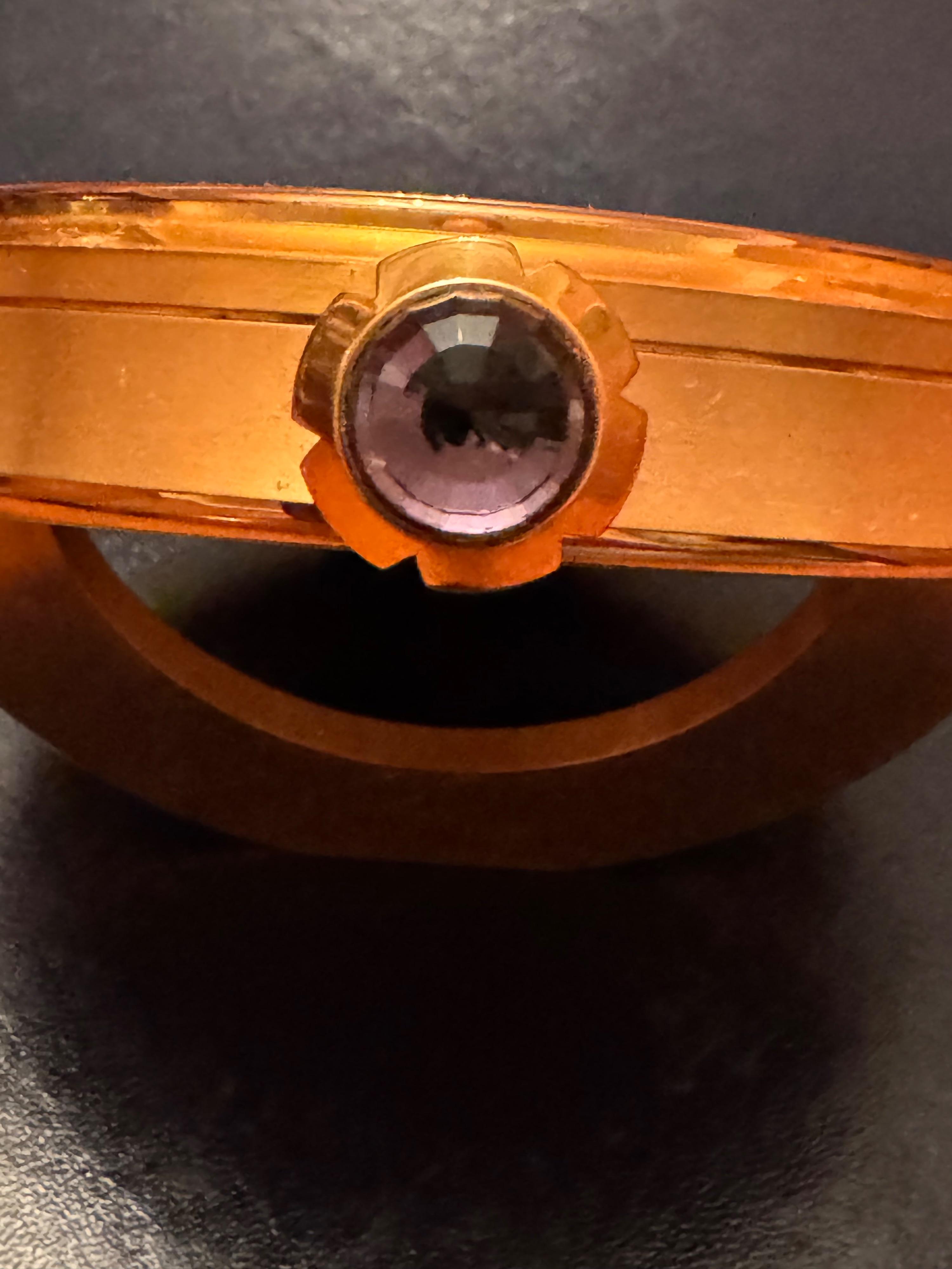 The clock is made of 18kt rose gold plated steel with silvered dial and Roman numerals alongside Superluminova-coated baton hands with three violet amethyst cabochons and a fold out stand. This beautiful Swiss made clock will make a memorable gift to suit any occasion.