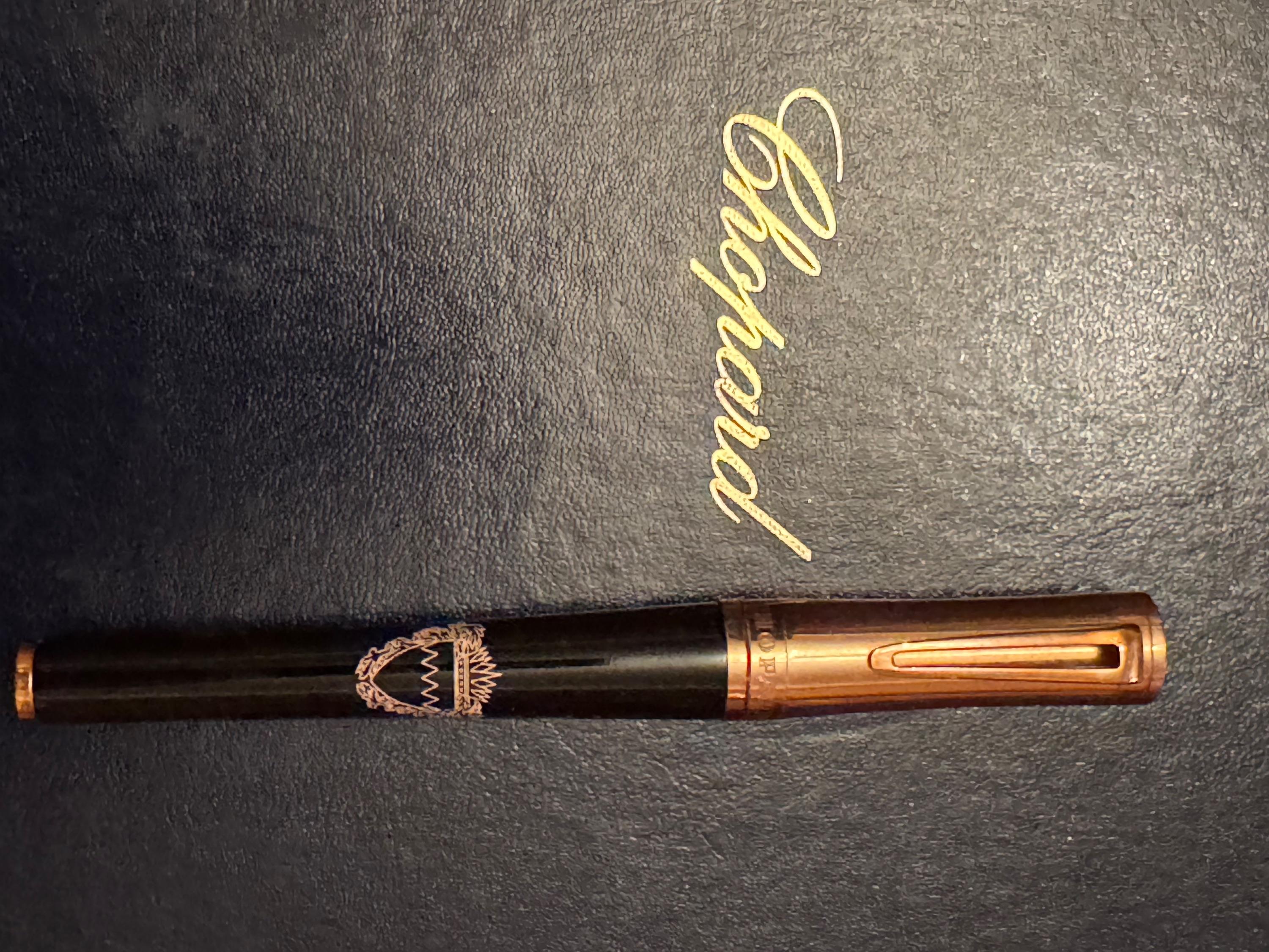 Complete with a Chopard ballpoint pen with gilt screw cap and Chopard signature all housed in the maker’s presentation fitted case with original instructions.