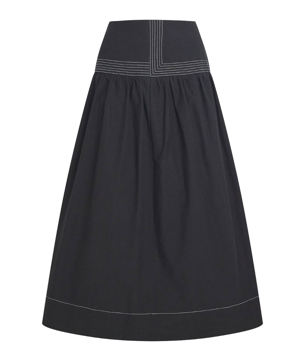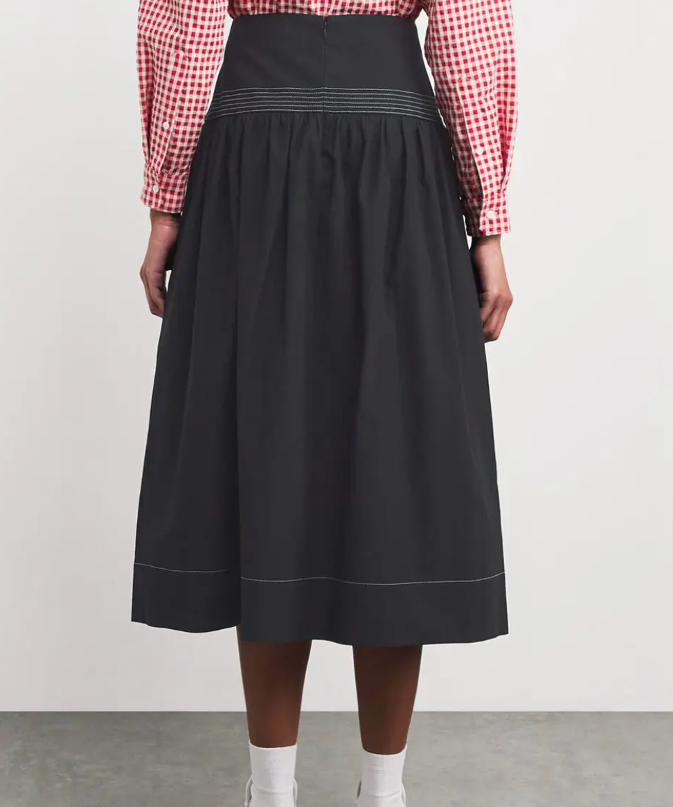 This Claudie Pierlot midi skirt features peplum detailing, side pockets, and flared gathers.