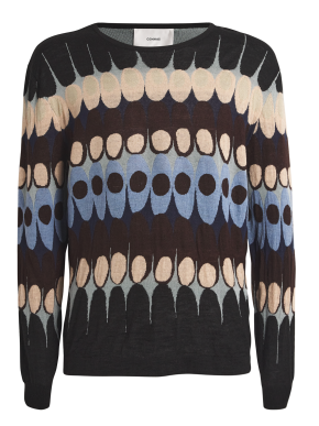 Design: Patterned jacquard knit with long sleeves, a crew neck, and a straight hem.