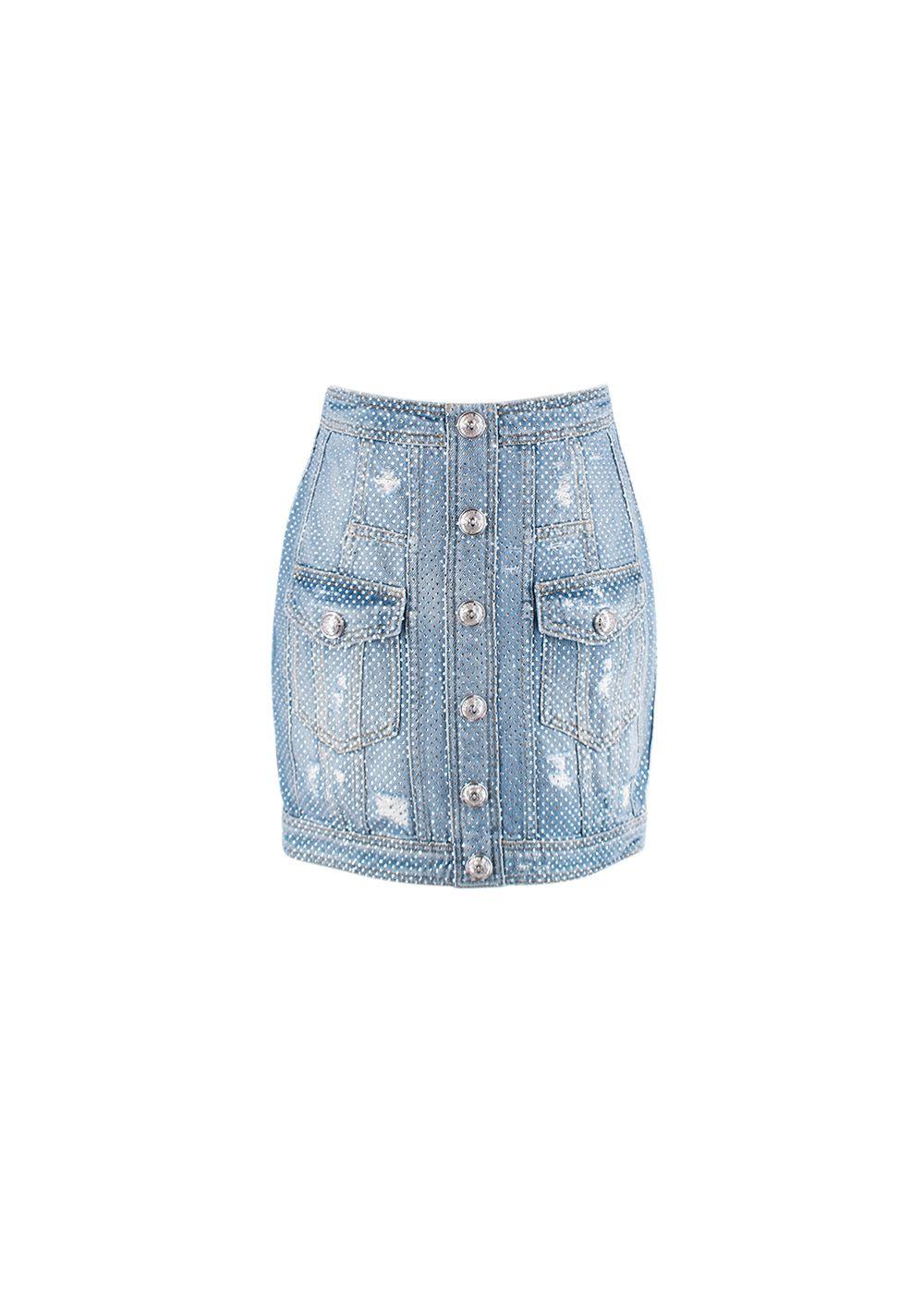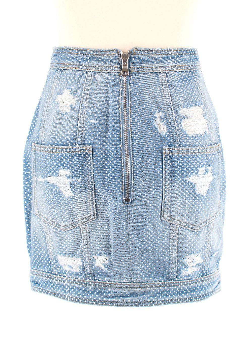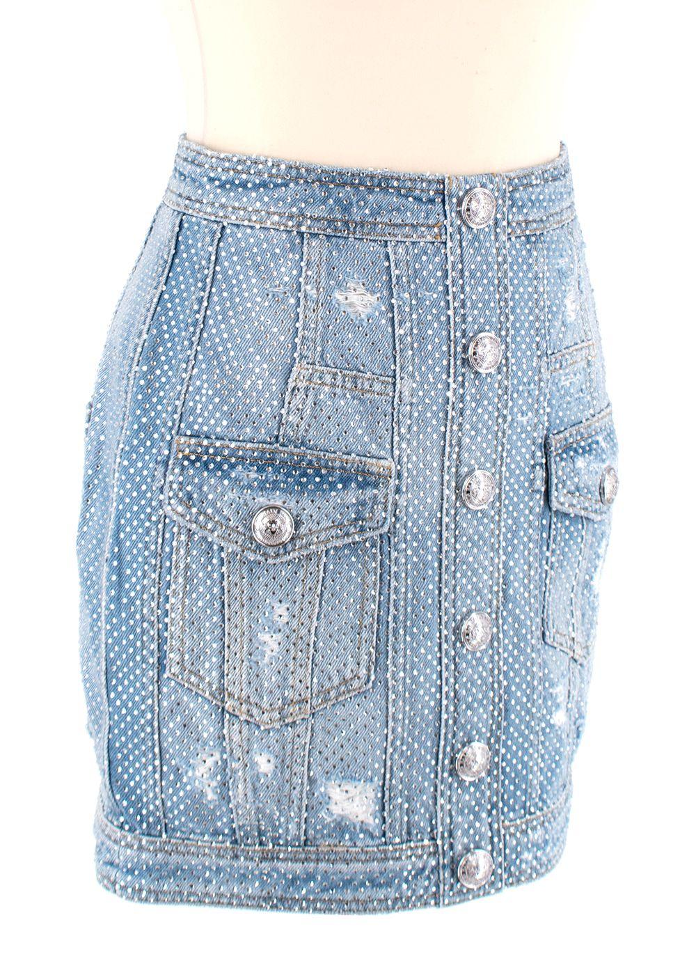 Balmain Crystal embellished denim mini skirt