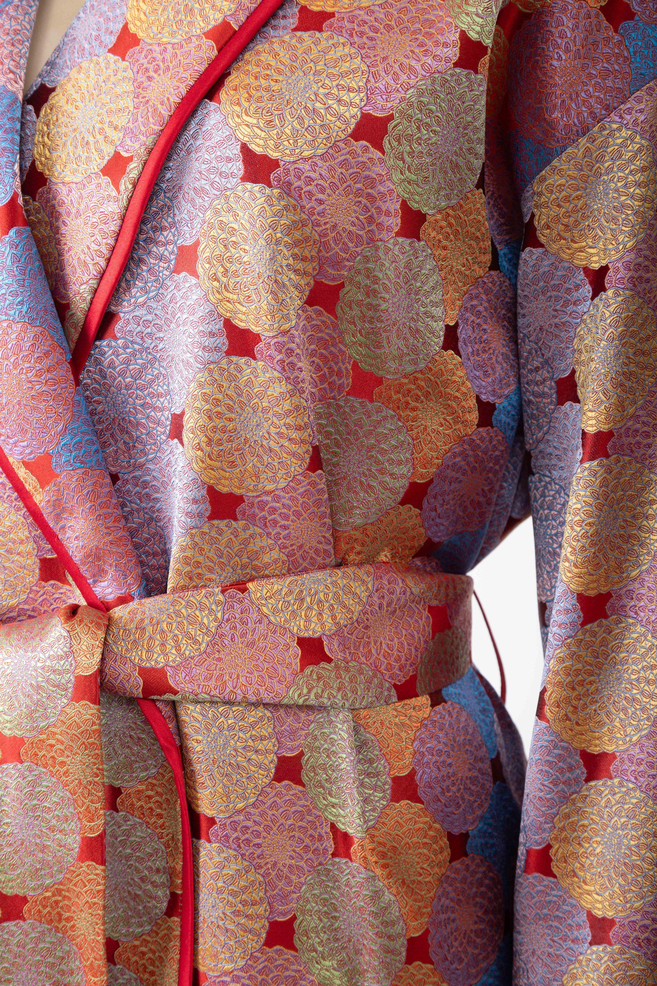 Daniel Hanson Red Dahlia Silk Jacquard Robe