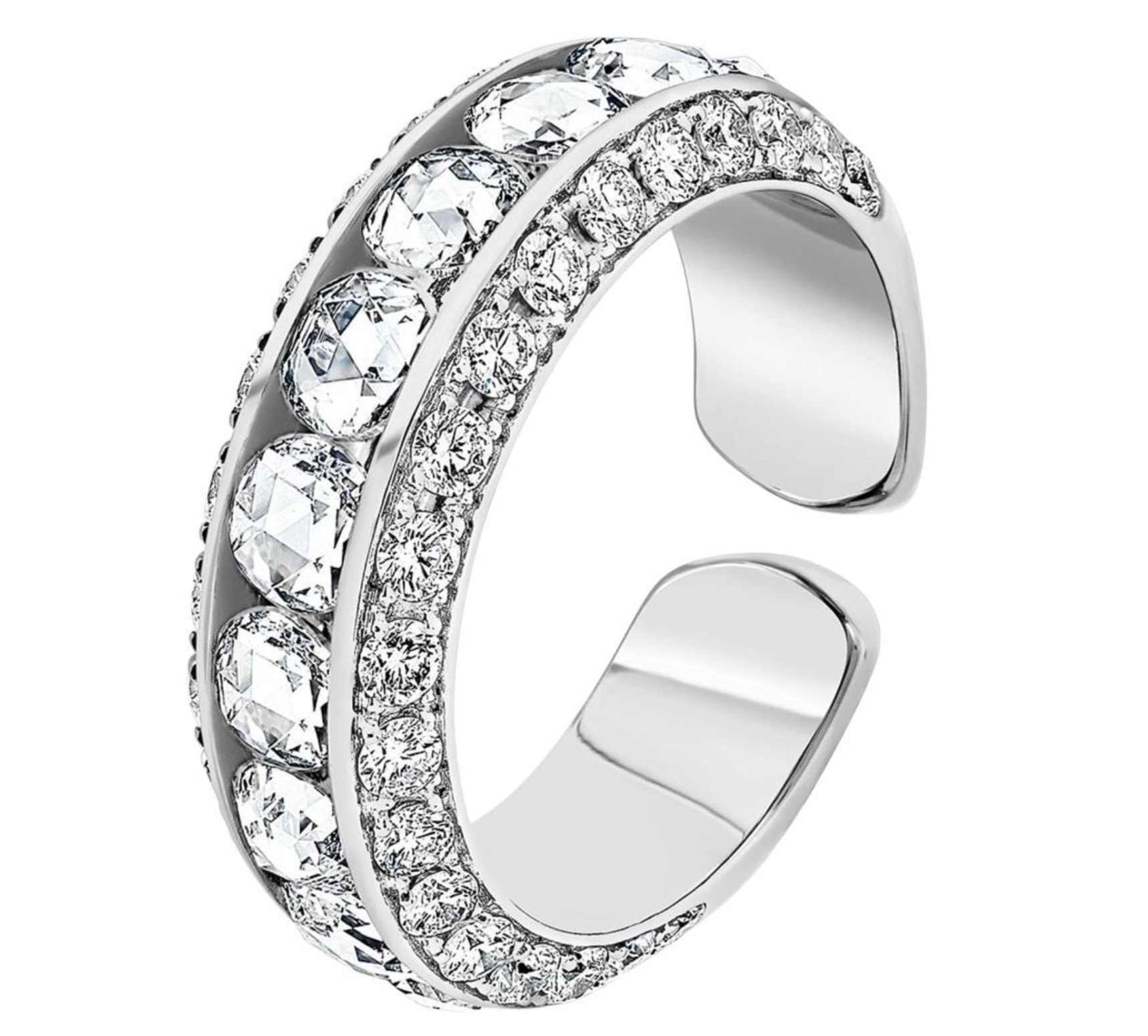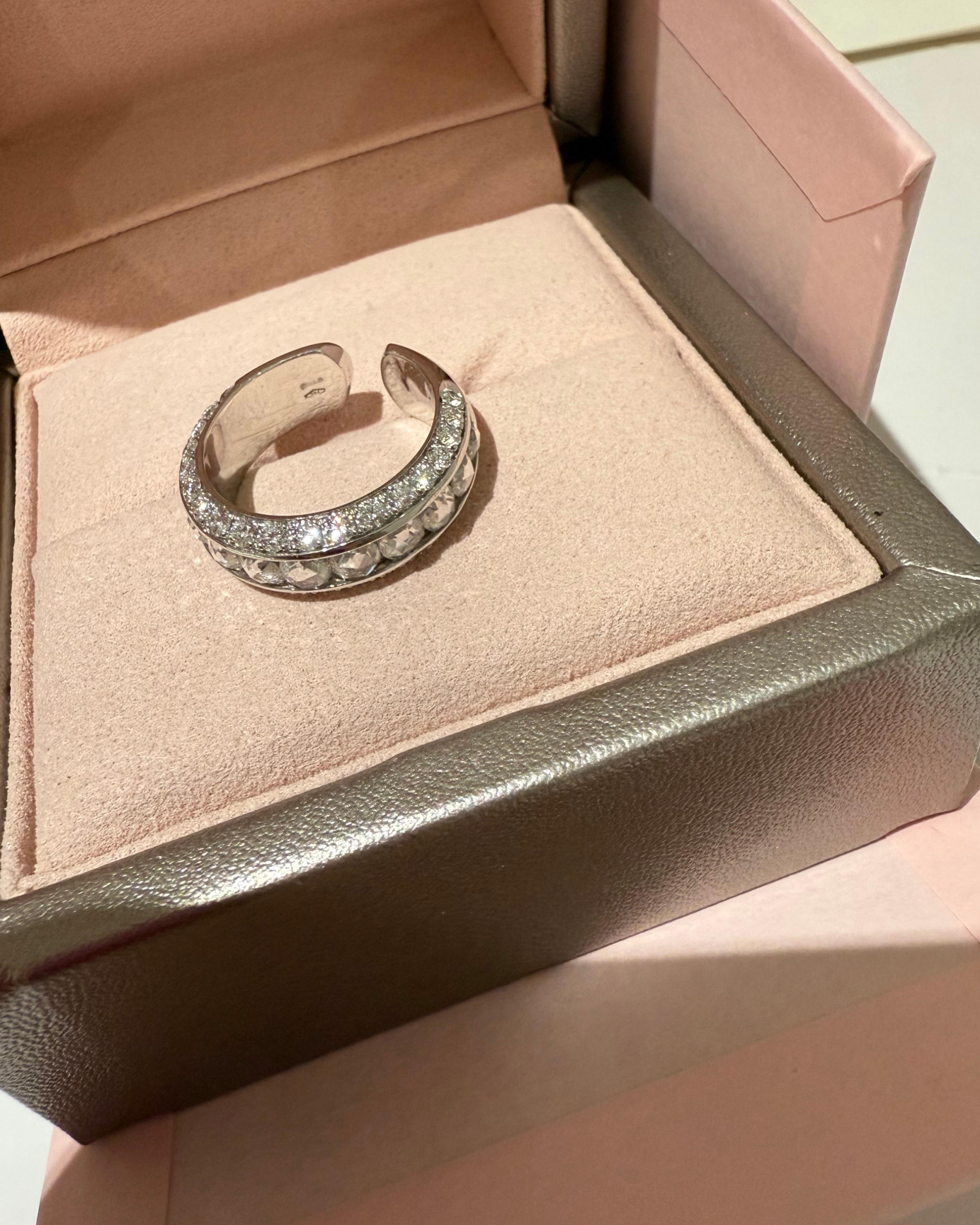 David Morris 18kt white gold Rose Cut ring is adorned with diamonds for extra brightness. Let your hand stand out. One of the most successful collection of David Morris the Pearl Rose cut collection. Size M