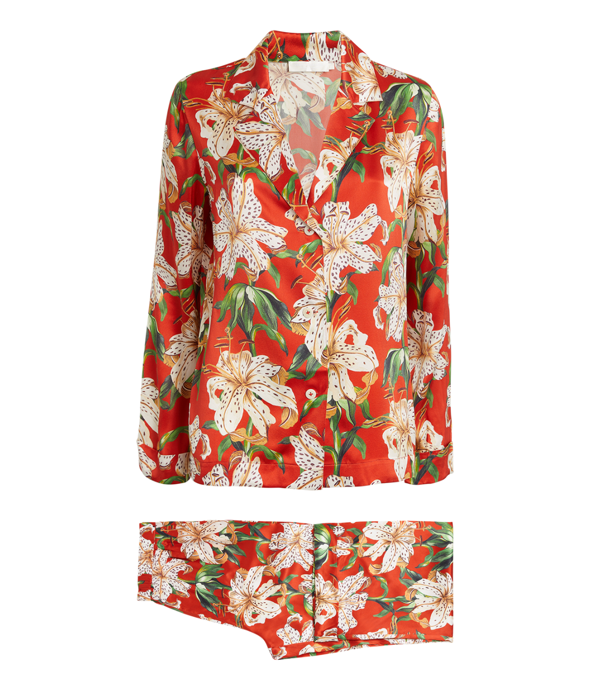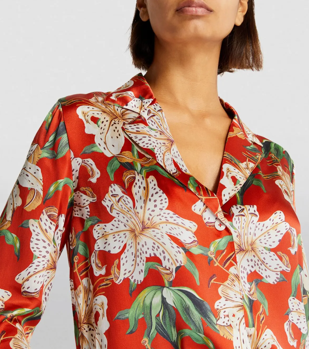 This season, Desmond & Dempsey takes inspiration from the humble yet majestic lily - otherwise known as the botanical lilium. Here it's expressed on this pair of silk pyjamas for an elegant and feminine ensemble to send you to sleep.