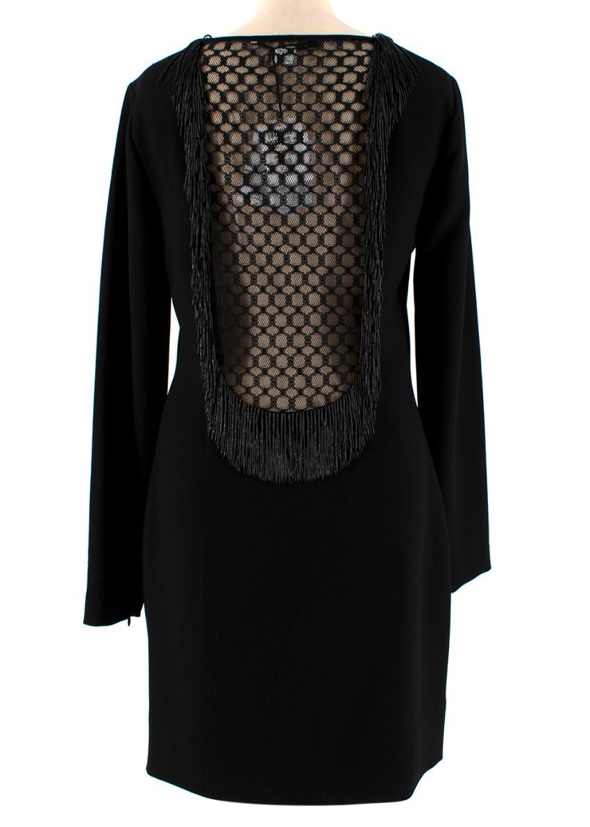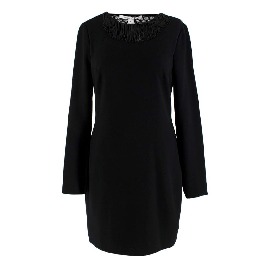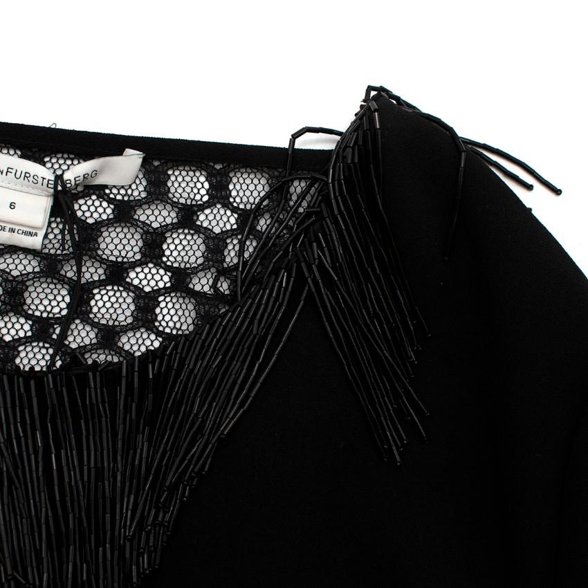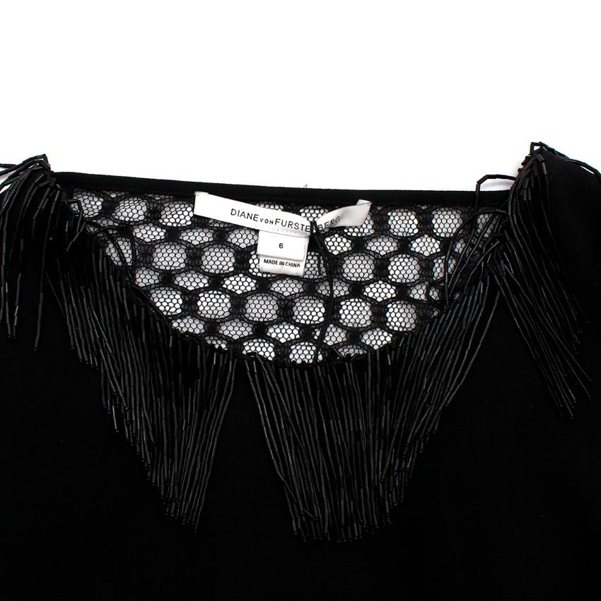 Diane von Furstenberg Black Fringed Embellished Lace Back Dress