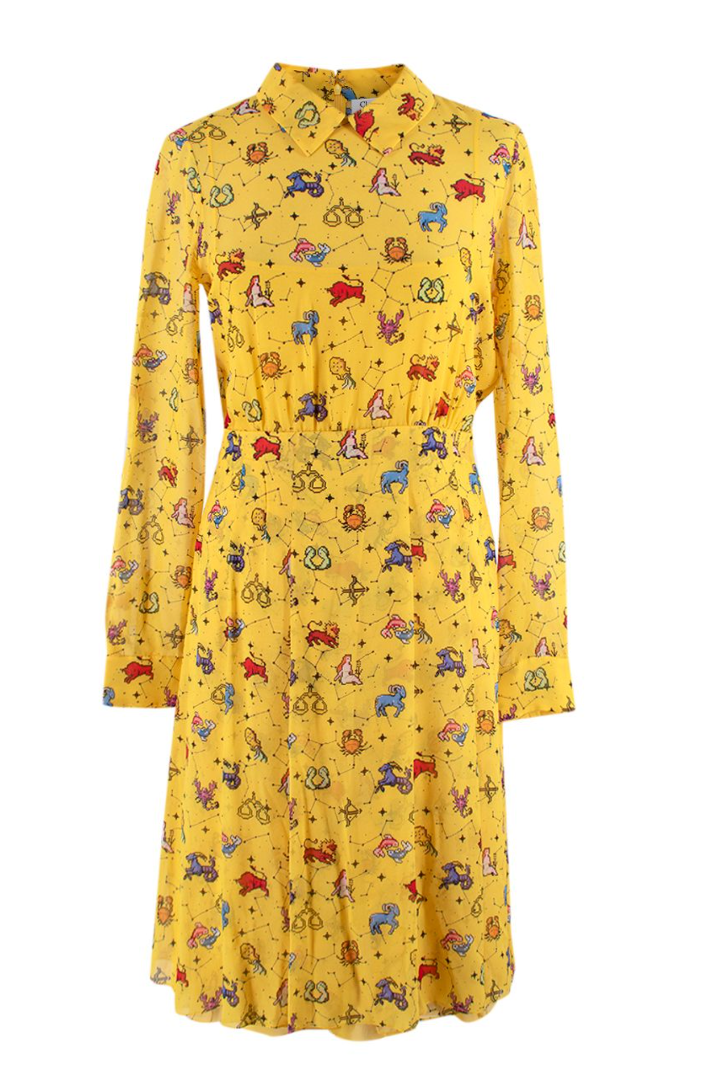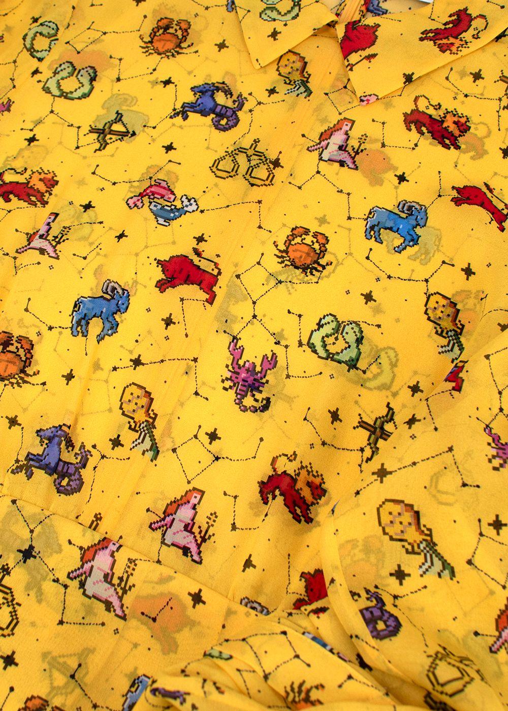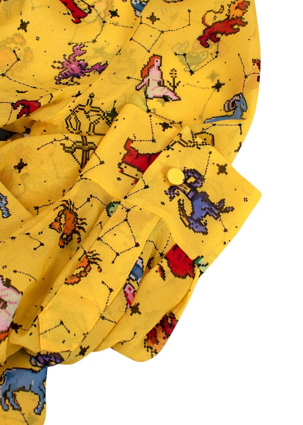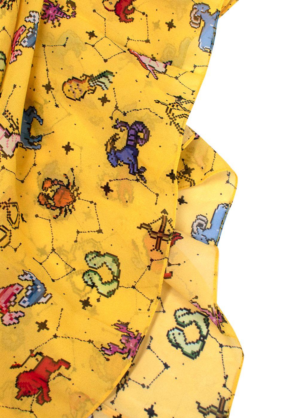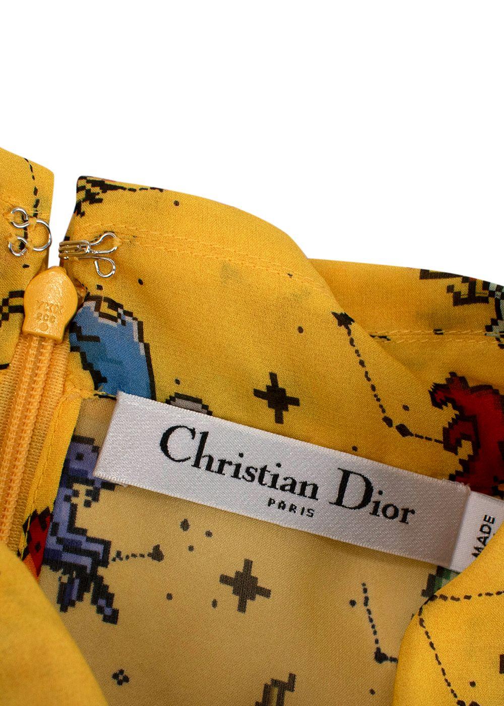Dior Yellow Pixel Zodiac Pattern Silk Midi Dress