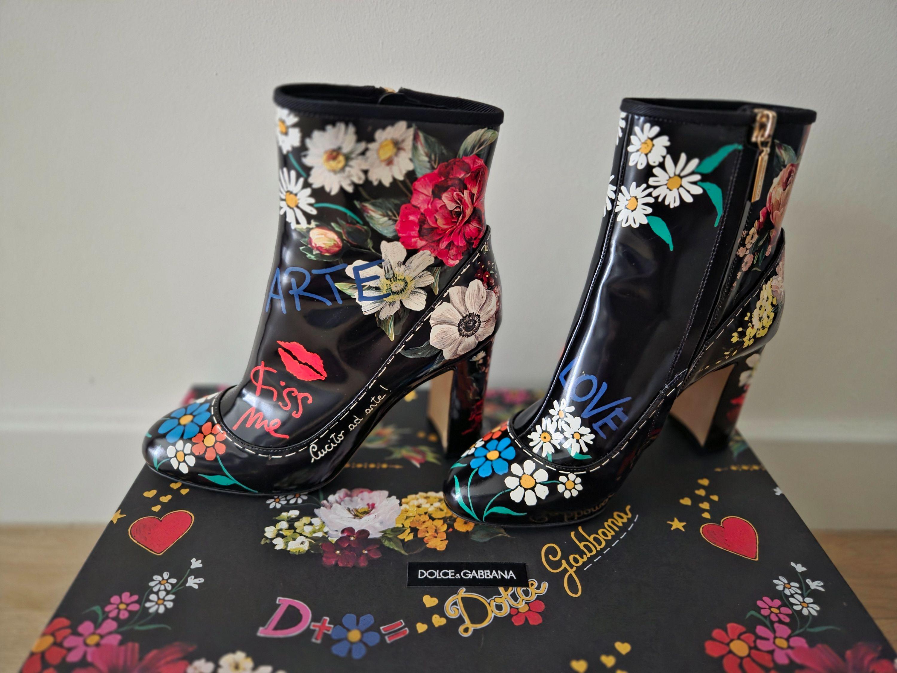 Dolce & Gabbana Floral Ankle Boots