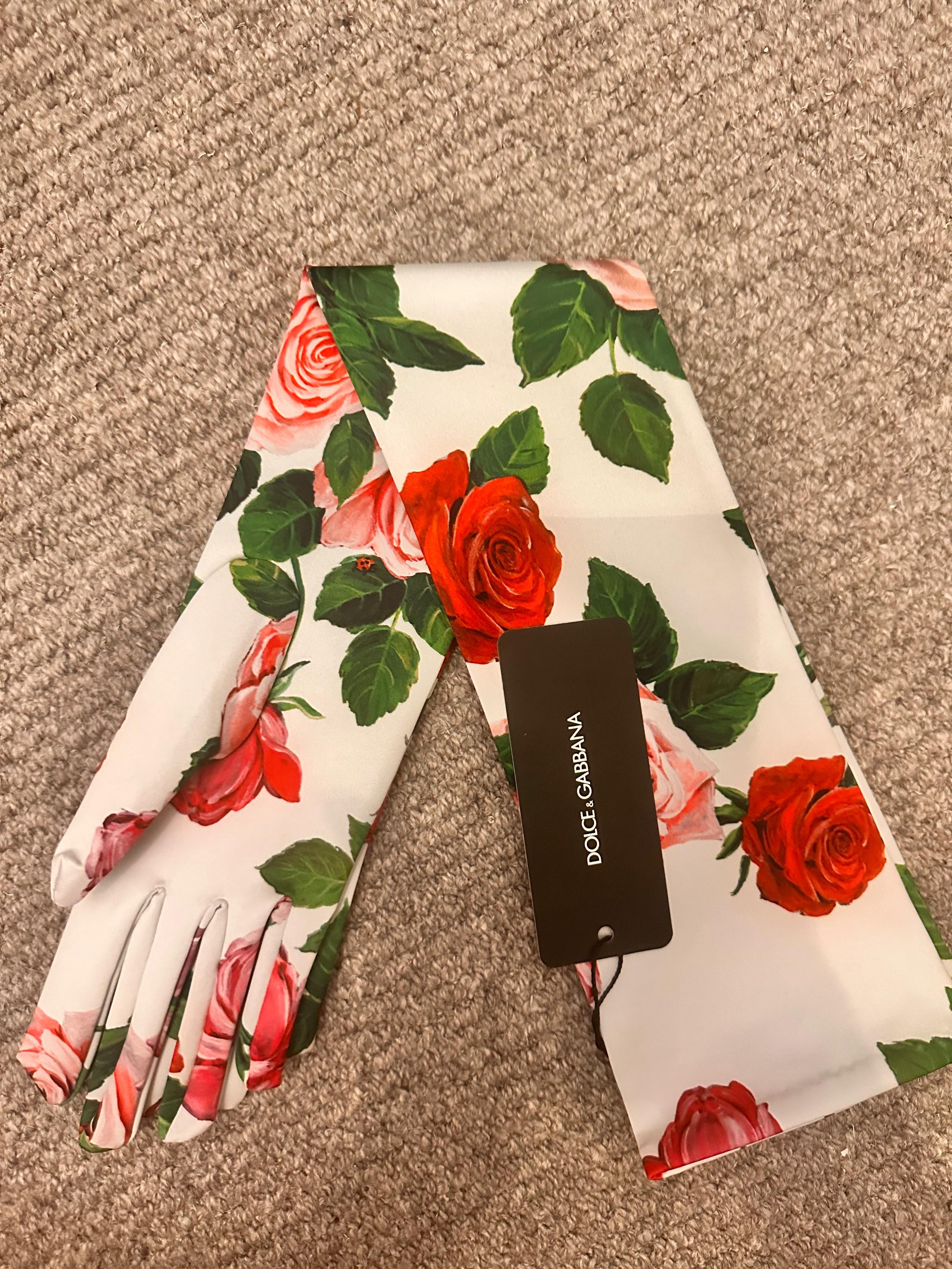 Dolce & Gabbana Floral Roses Elbow Gloves