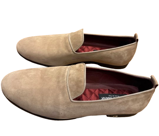 Elegant and timeless; these Milano slippers come in suede with fabric piping.