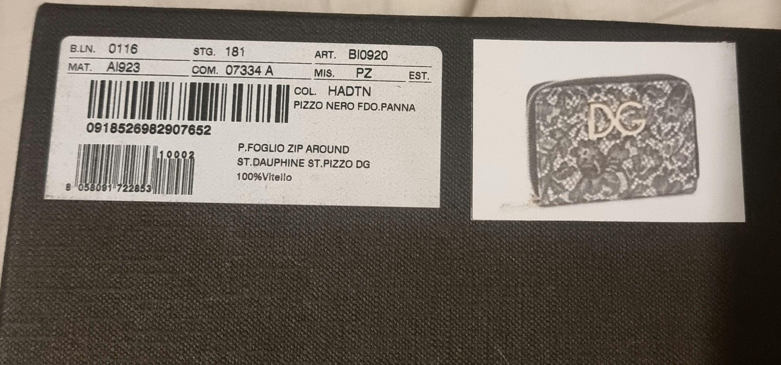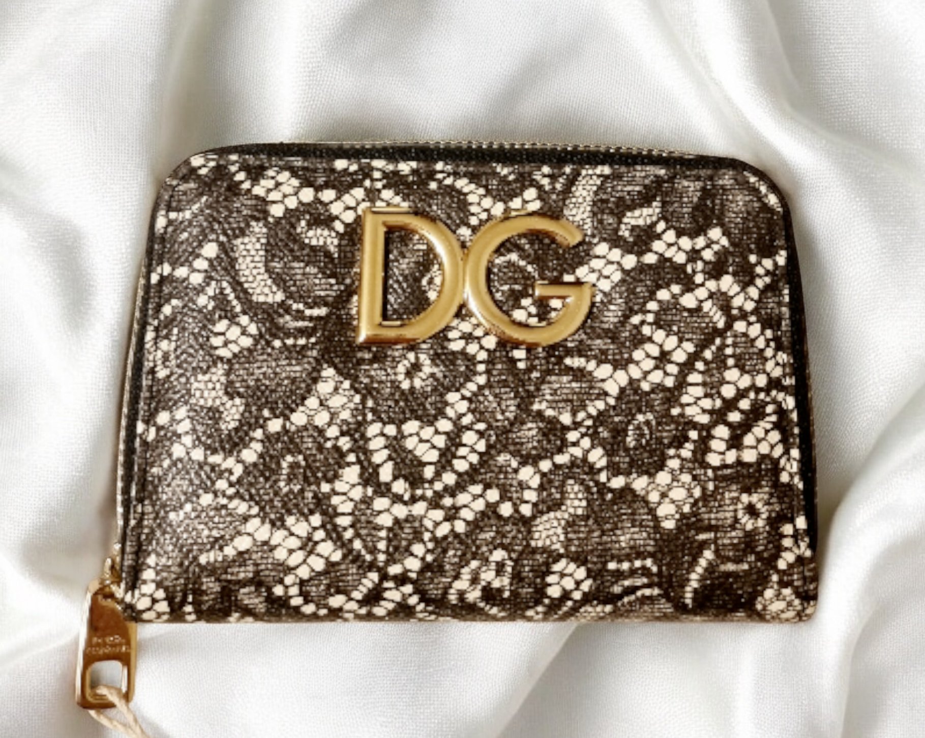 Dolce & Gabbana Dauphine leather zip around small lace design wallet detailed with rear pocket, cash slot and four inner compartments.