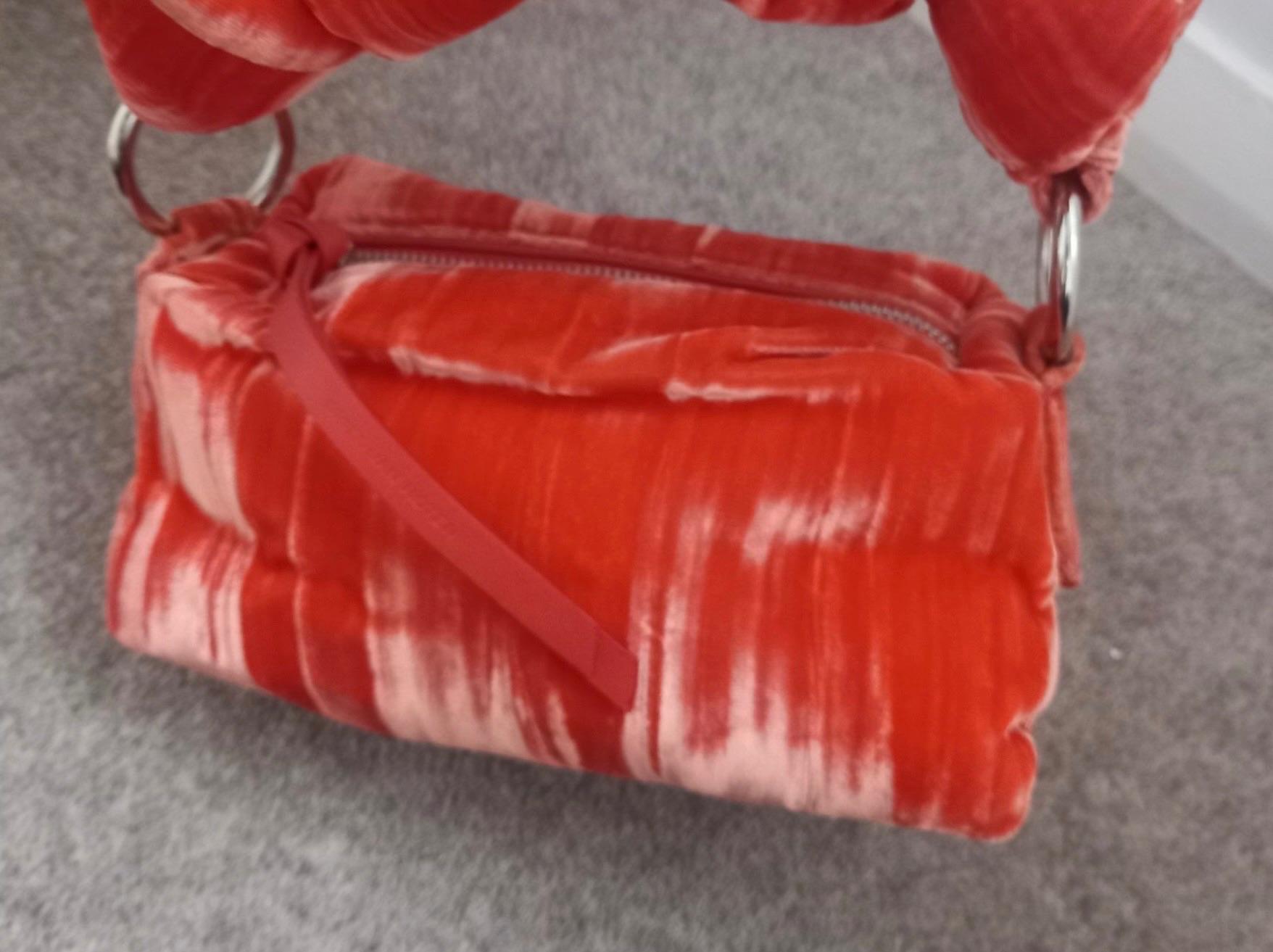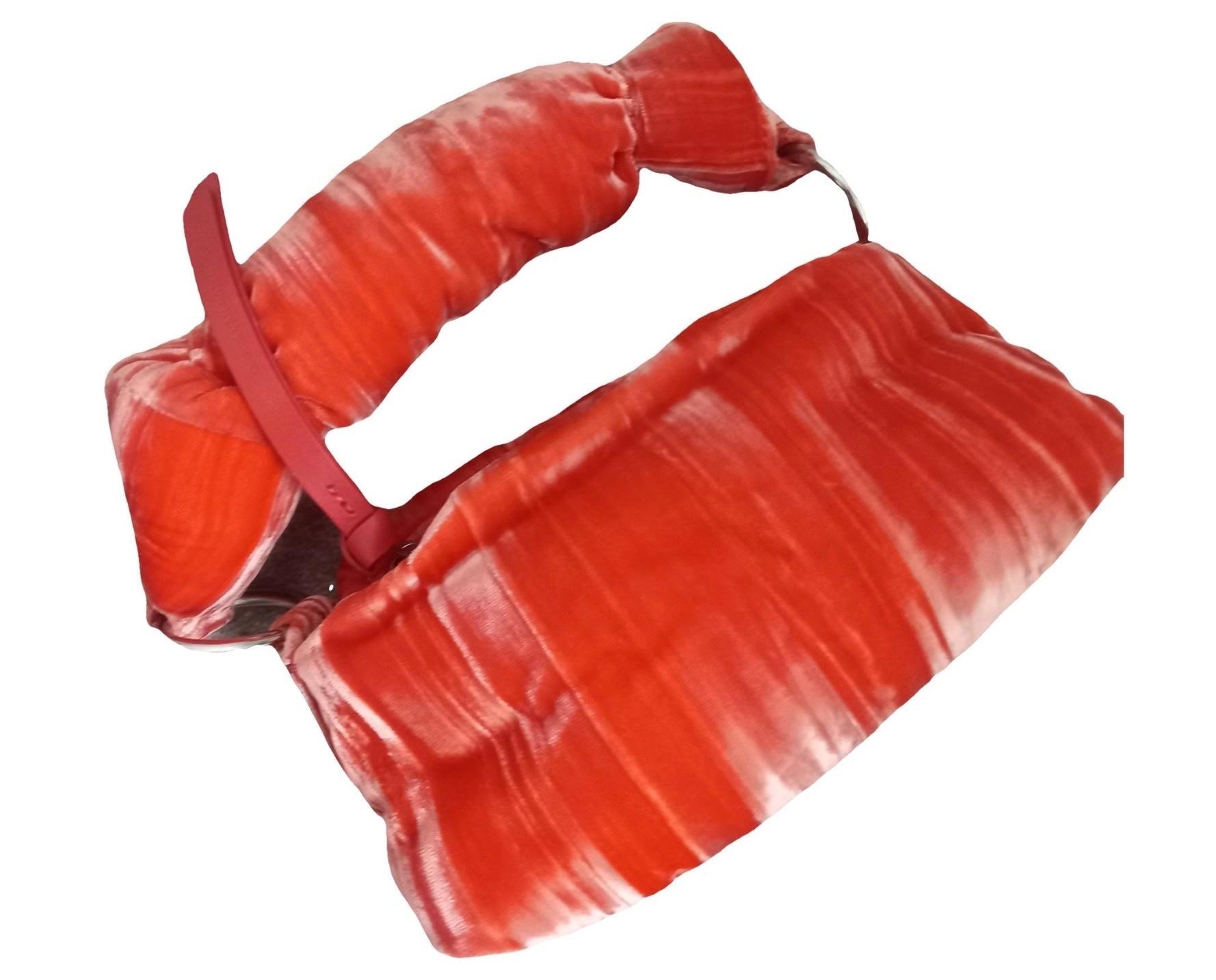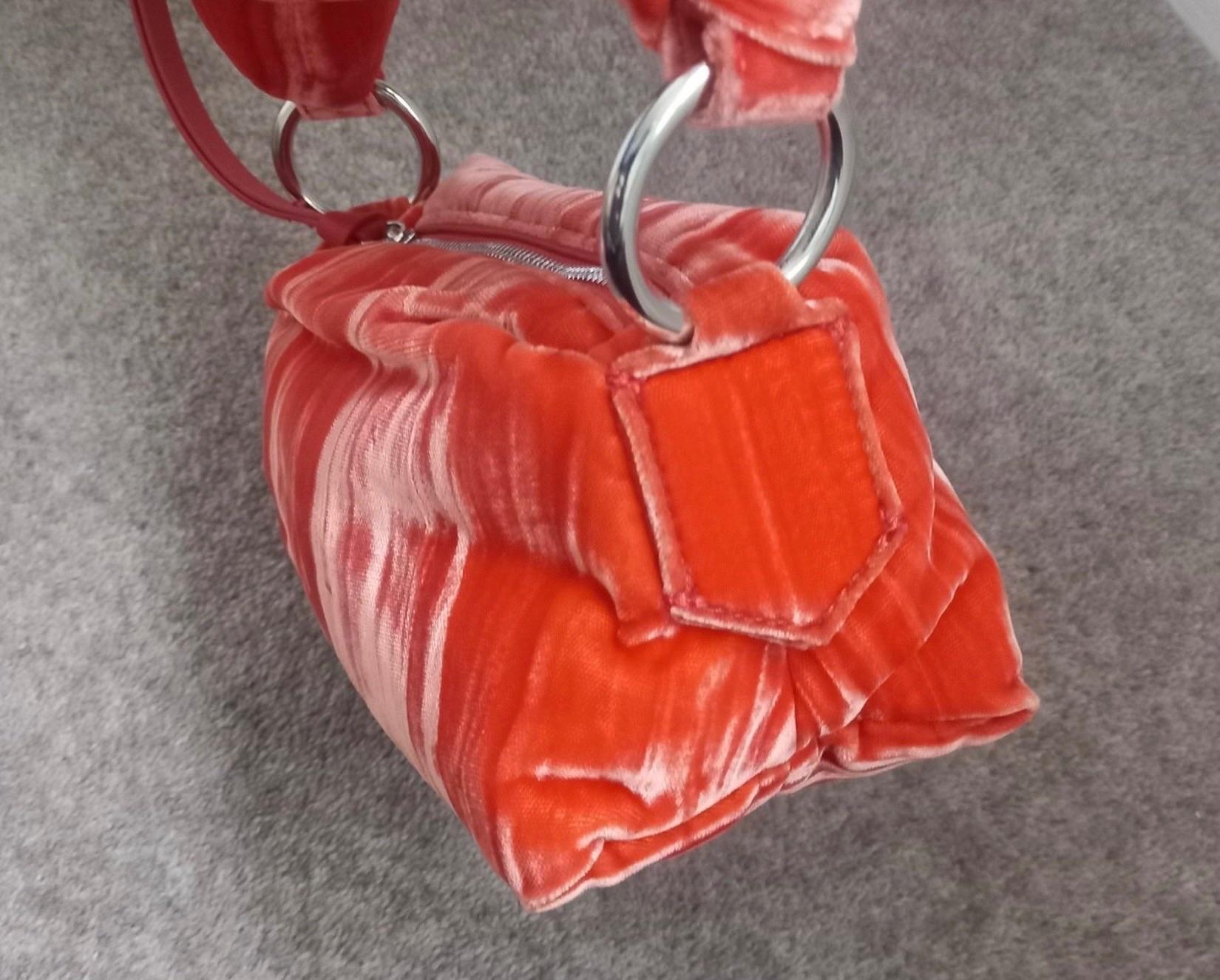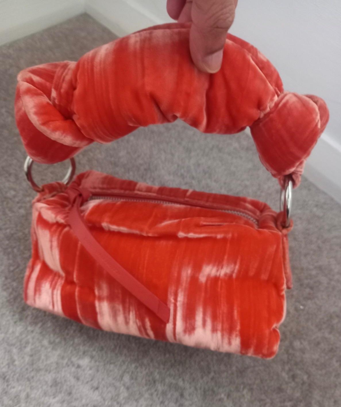 New Dries Van Noten Orange Velvet Knot Handle Pillow Bag. Pristine condition fabric and leather lining.
