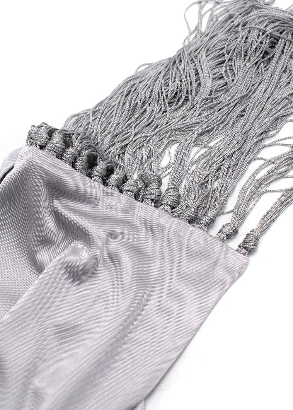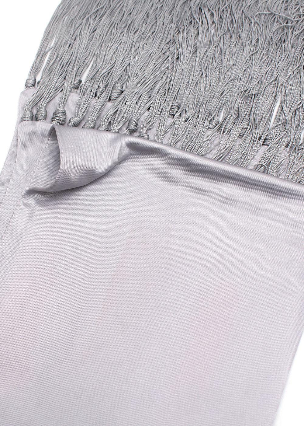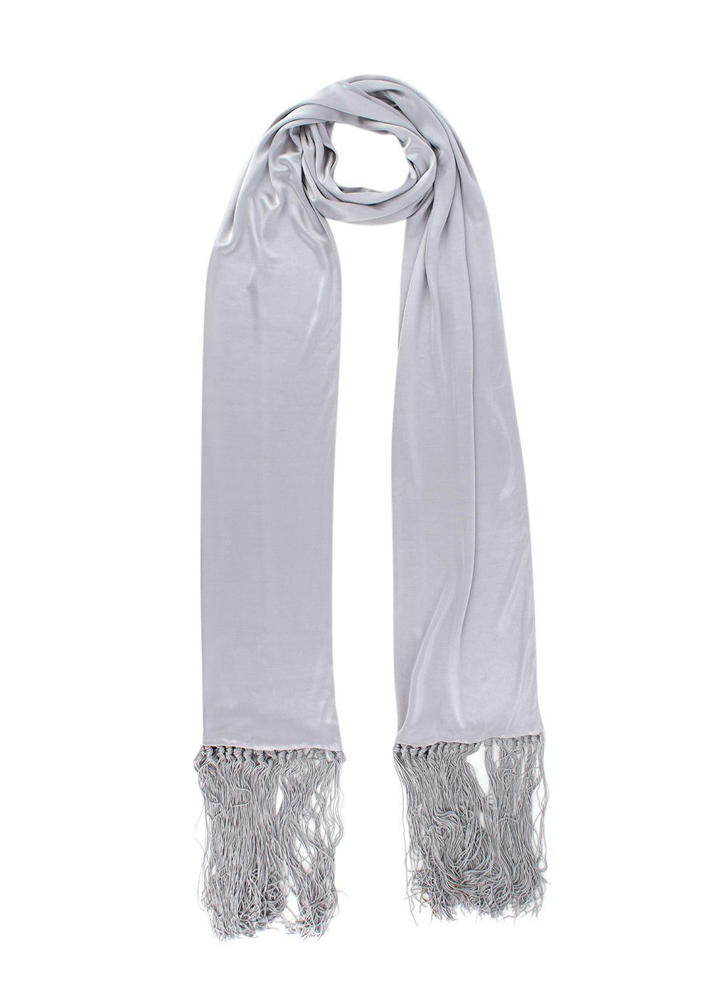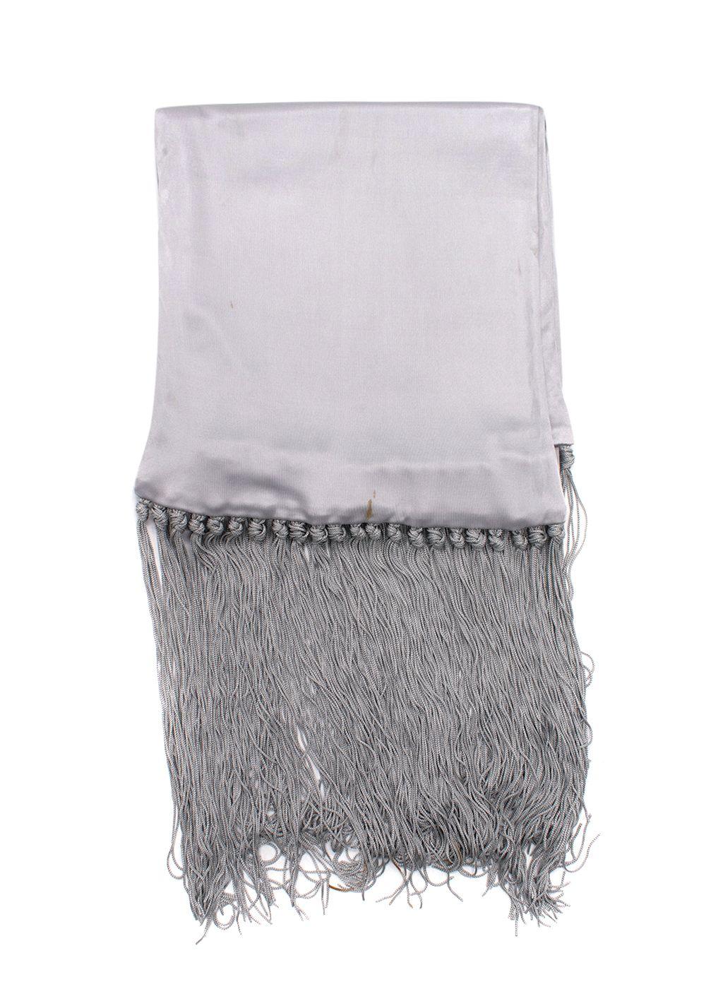 Celine Grey Satin Fringed Scarf