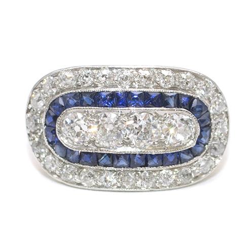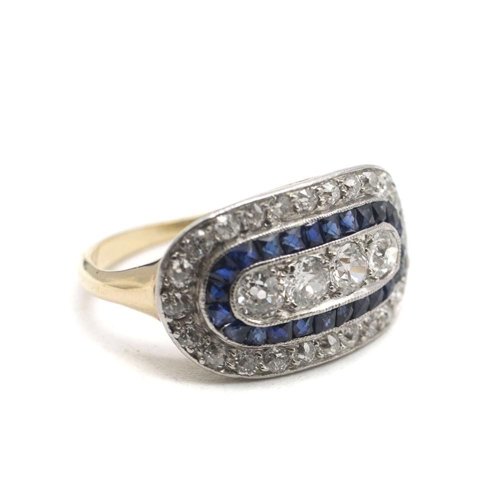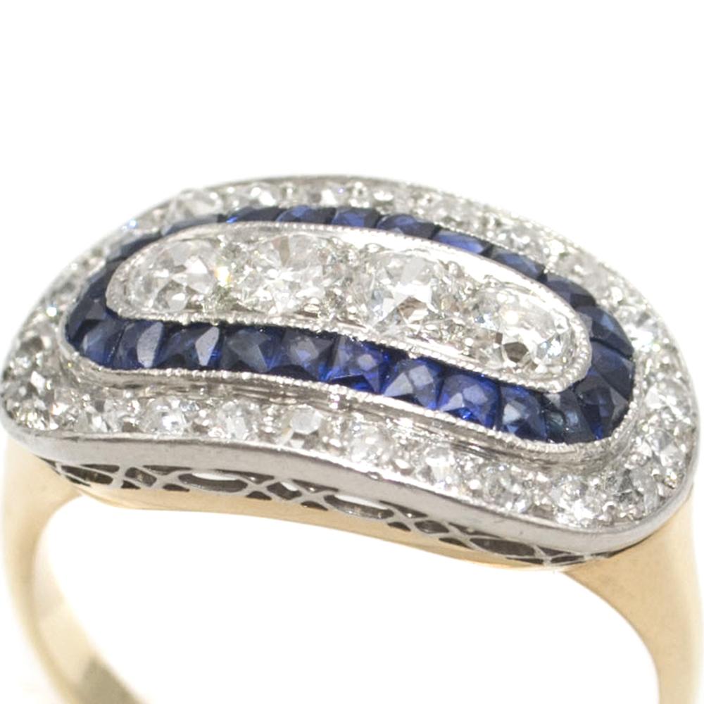 Bespoke Edwardian 1910 French Cut Sapphire & Diamond Ring