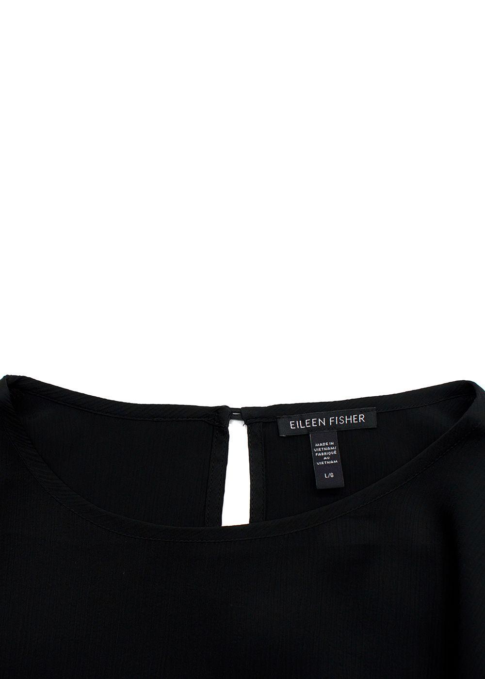Eileen Fisher Black Textured Cupro Round Neck Top