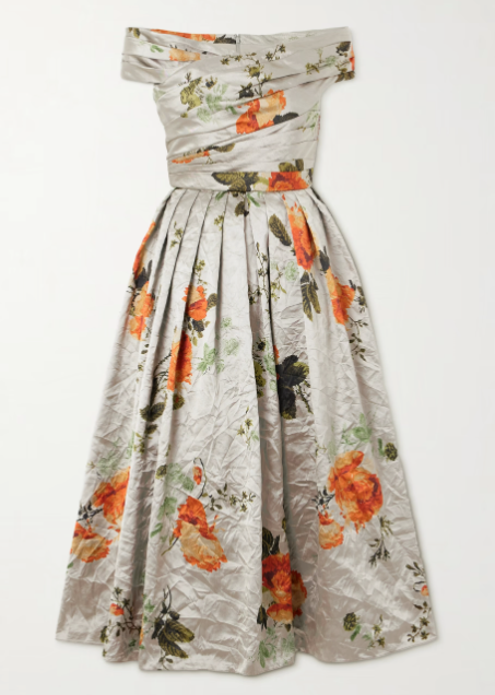 Erdem Off-The-Shoulder Floral-print Metallic Crinkled-satin Midi Dress