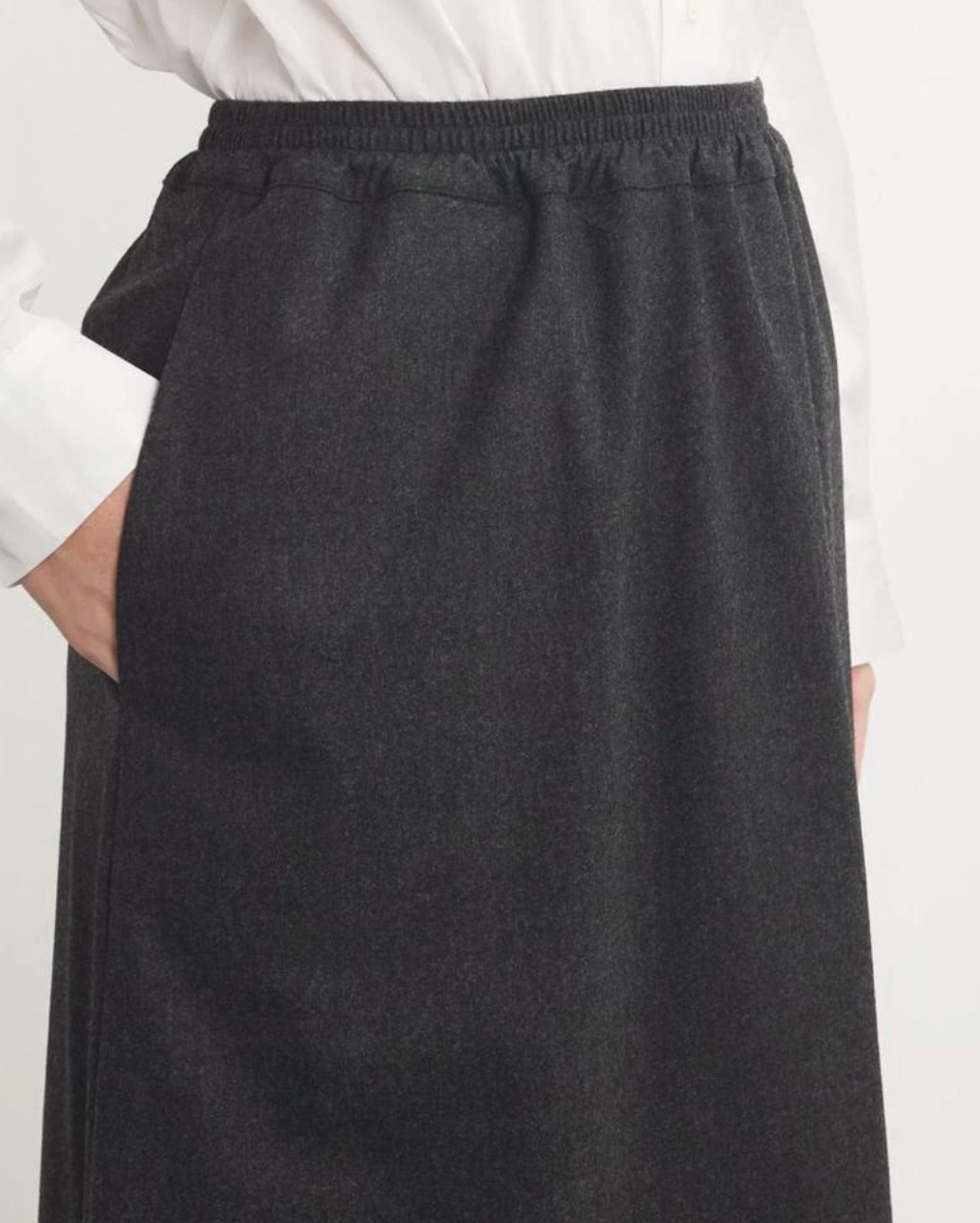 Casting its spotlight on fabrication and structure, this midi skirt from Eskandar combines a classic A-line silhouette with a contemporary, comfortable elasticated waistband. Whether you layer it for a voluminous look or with a simple T-shirt, its timeless elegance will easily make it your new favourite piece.