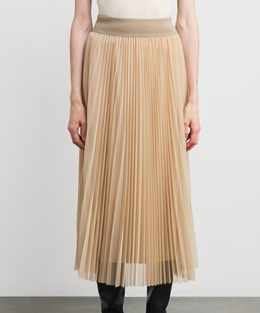 Midi skirt in pleated tulle, elastic waistband, underskirt