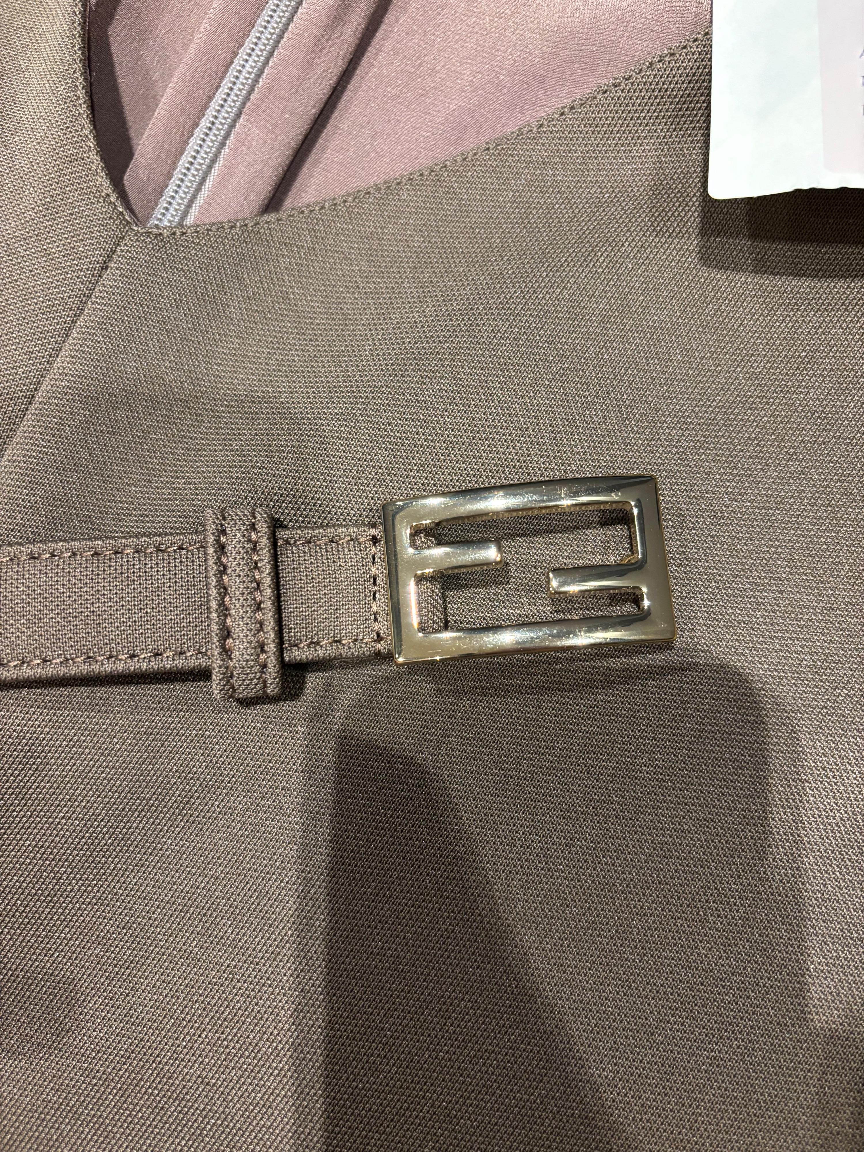 Fendi Cocoa Brown Silk Belted Dress