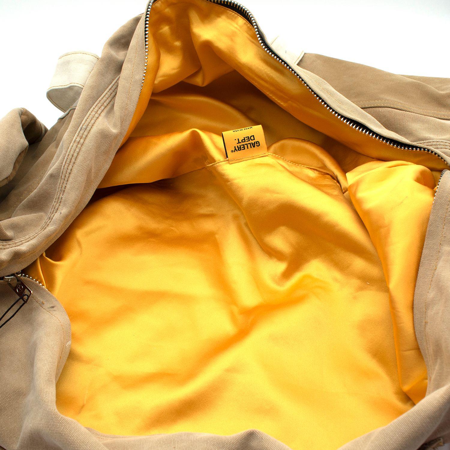 GALLERY DEPT. travel bag crafted from cotton. Featuring a top zip fastening, two top handles, an adjustable shoulder strap, paint splatter detail, a front patch pocket, a mini logo tag, a rear patch pocket, a main compartment, and an internal logo patch. The bag can be carried on the shoulder or worn crossbody.