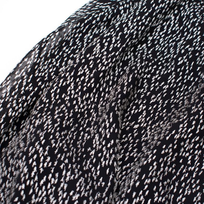 - Black sheer dress with white feathered pattern